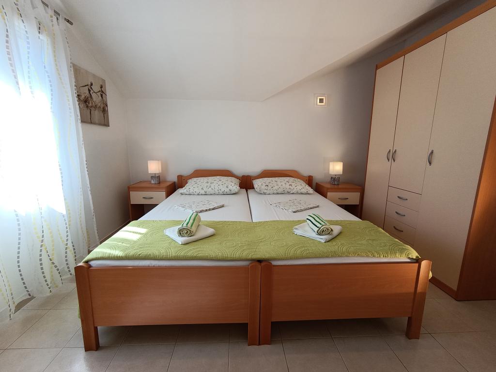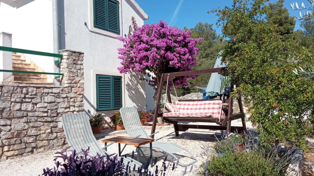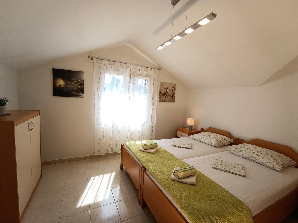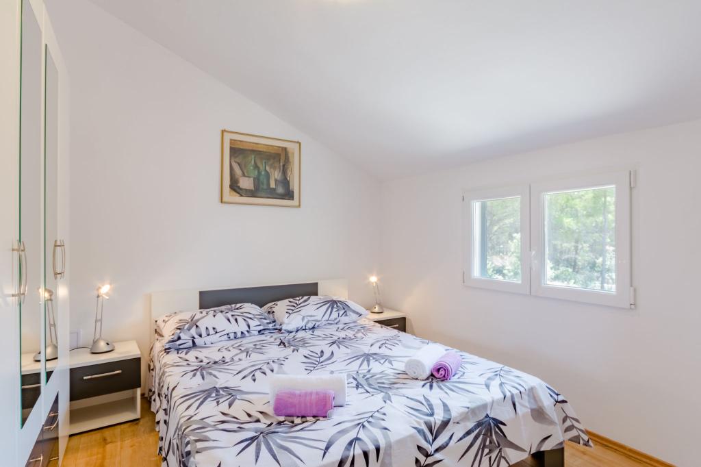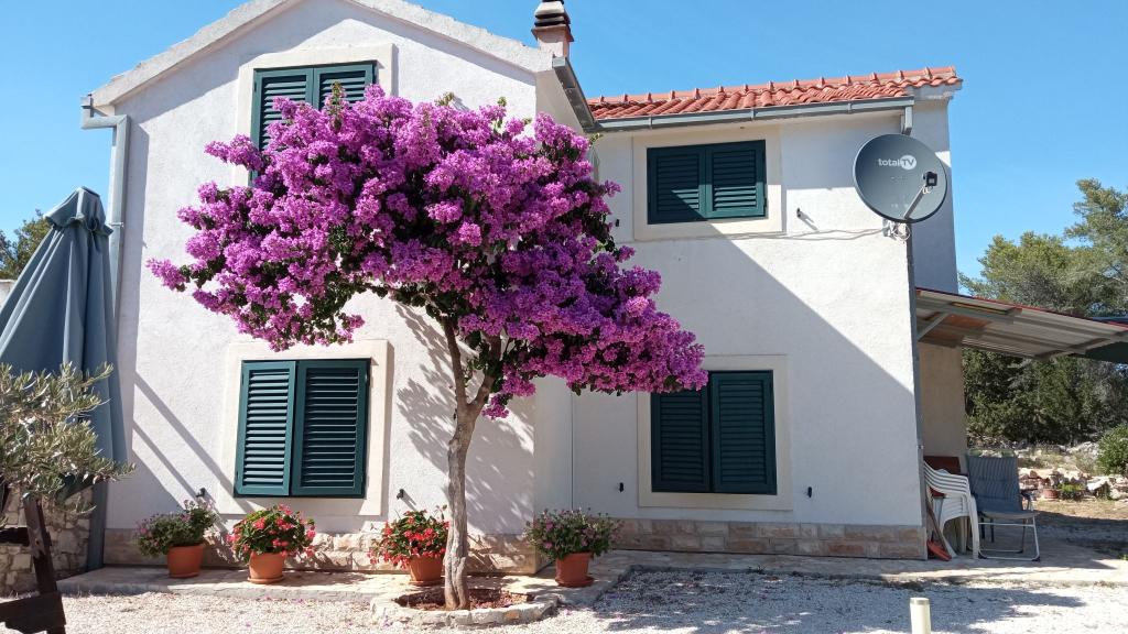 Lejlighed Maja ligger på første sal i et hus, der ligger i smukke middelhavsomgivelser, i et roligt område af Osibova-bugten på den sydlige kyst af øen Brač. Huset ligger 200 meter fra havet. Lejligheden er 58 m2 stor, og der er adgang via en udvendig trappe. Lejligheden består af to soveværelser. I det ene værelse er der en dobbeltseng, der er 160 cm bred, og i det andet værelse er der to separate senge, der er 90 cm brede, som normalt er forbundet og dermed giver en dobbeltseng, der er 180 cm bred. Disse senge kan adskilles, hvis det ønskes. Lejligheden har aircondition med to klimaanlæg, et i soveværelset og det andet i stuen. Gæsterne har adgang til satellit-tv, gratis Wi-Fi og parkering. Lejligheden har også en have med gårdhave og en overdækket veranda (pavillon) med spiseplads, grill, udendørs vask og tilhørende udstyr. Gæsterne kan også benytte en udendørs bruser med varmt og koldt vand, hvis de ønsker det. Der ligger butikker og restauranter i byen Milna, cirka 2 km fra lejlighederne.