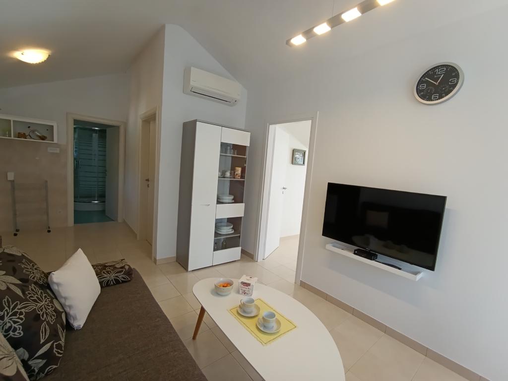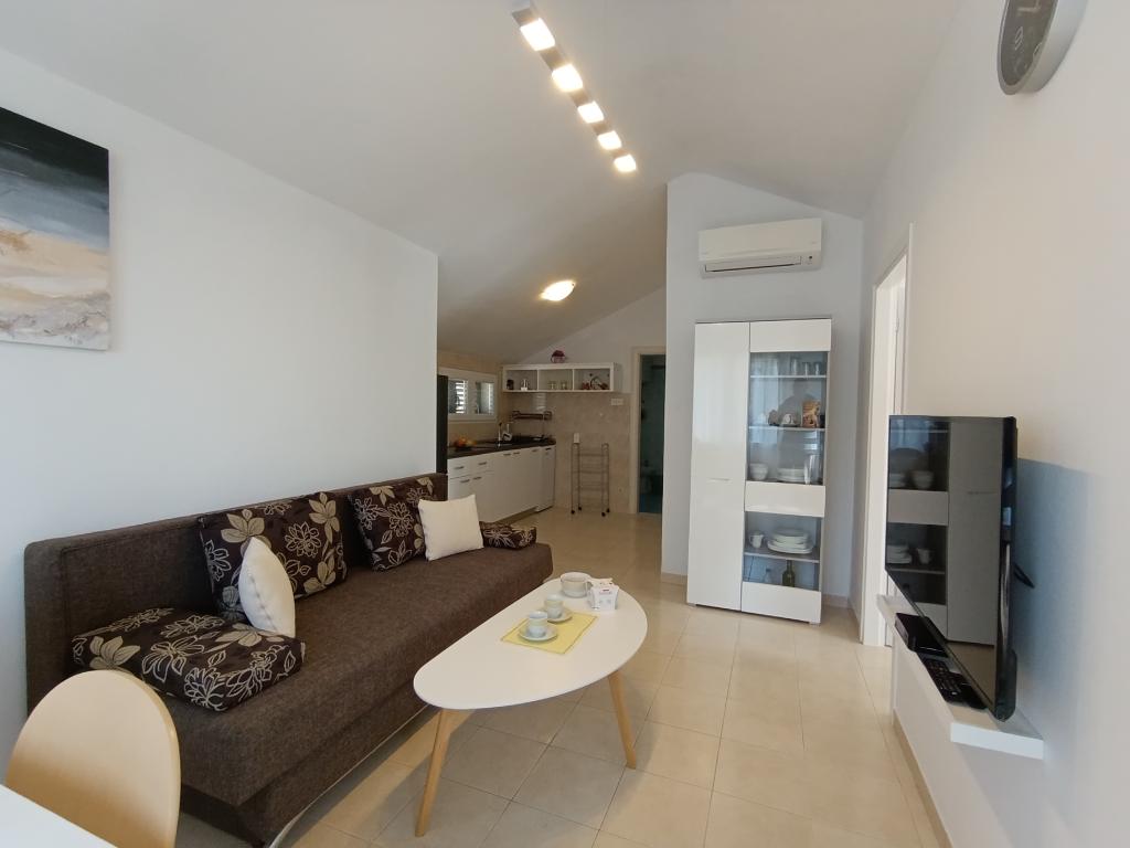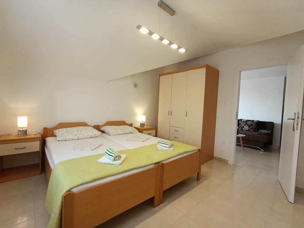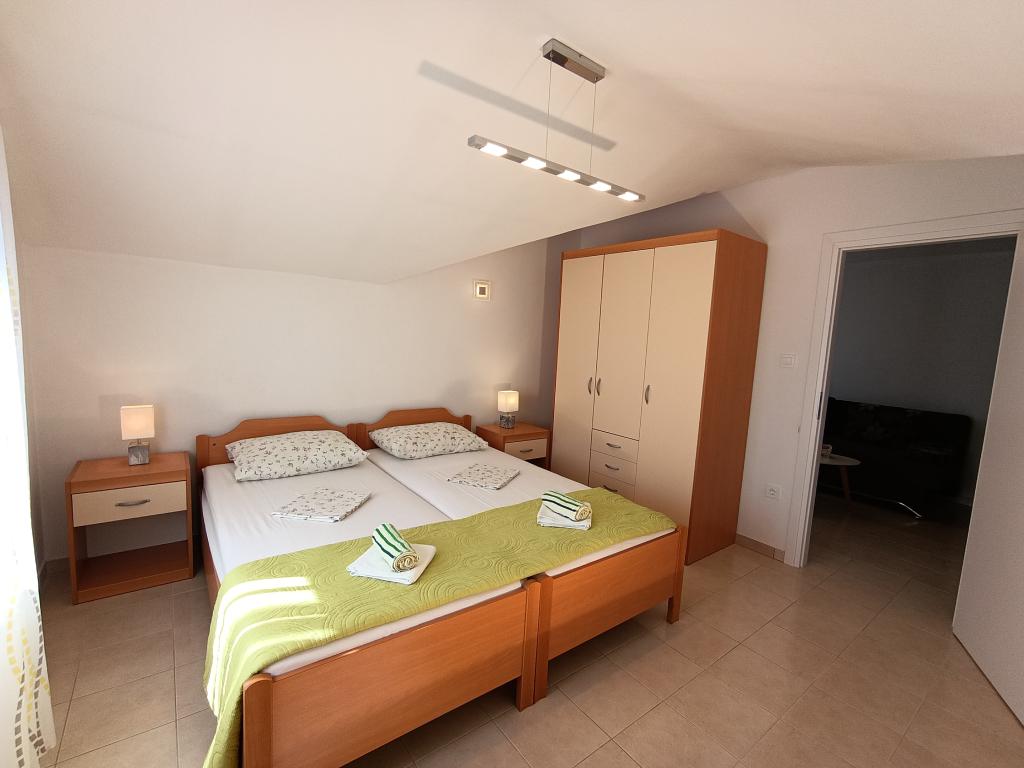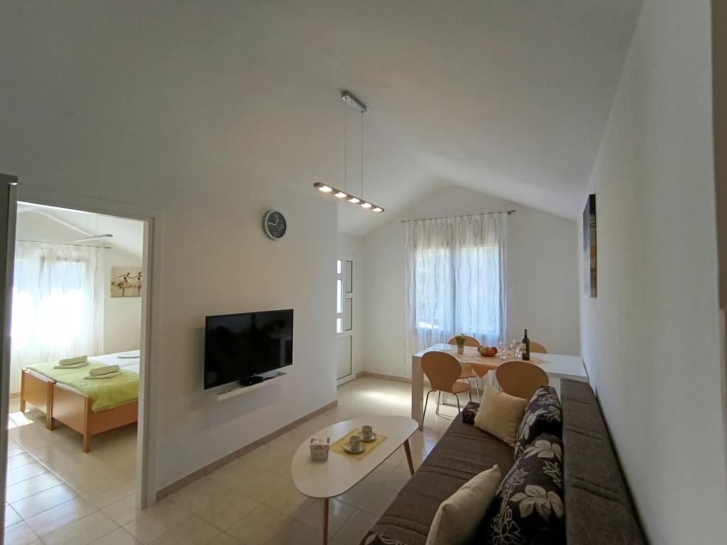 Lejlighed Maja ligger på første sal i et hus, der ligger i smukke middelhavsomgivelser, i et roligt område af Osibova-bugten på den sydlige kyst af øen Brač. Huset ligger 200 meter fra havet. Lejligheden er 58 m2 stor, og der er adgang via en udvendig trappe. Lejligheden består af to soveværelser. I det ene værelse er der en dobbeltseng, der er 160 cm bred, og i det andet værelse er der to separate senge, der er 90 cm brede, som normalt er forbundet og dermed giver en dobbeltseng, der er 180 cm bred. Disse senge kan adskilles, hvis det ønskes. Lejligheden har aircondition med to klimaanlæg, et i soveværelset og det andet i stuen. Gæsterne har adgang til satellit-tv, gratis Wi-Fi og parkering. Lejligheden har også en have med gårdhave og en overdækket veranda (pavillon) med spiseplads, grill, udendørs vask og tilhørende udstyr. Gæsterne kan også benytte en udendørs bruser med varmt og koldt vand, hvis de ønsker det. Der ligger butikker og restauranter i byen Milna, cirka 2 km fra lejlighederne.