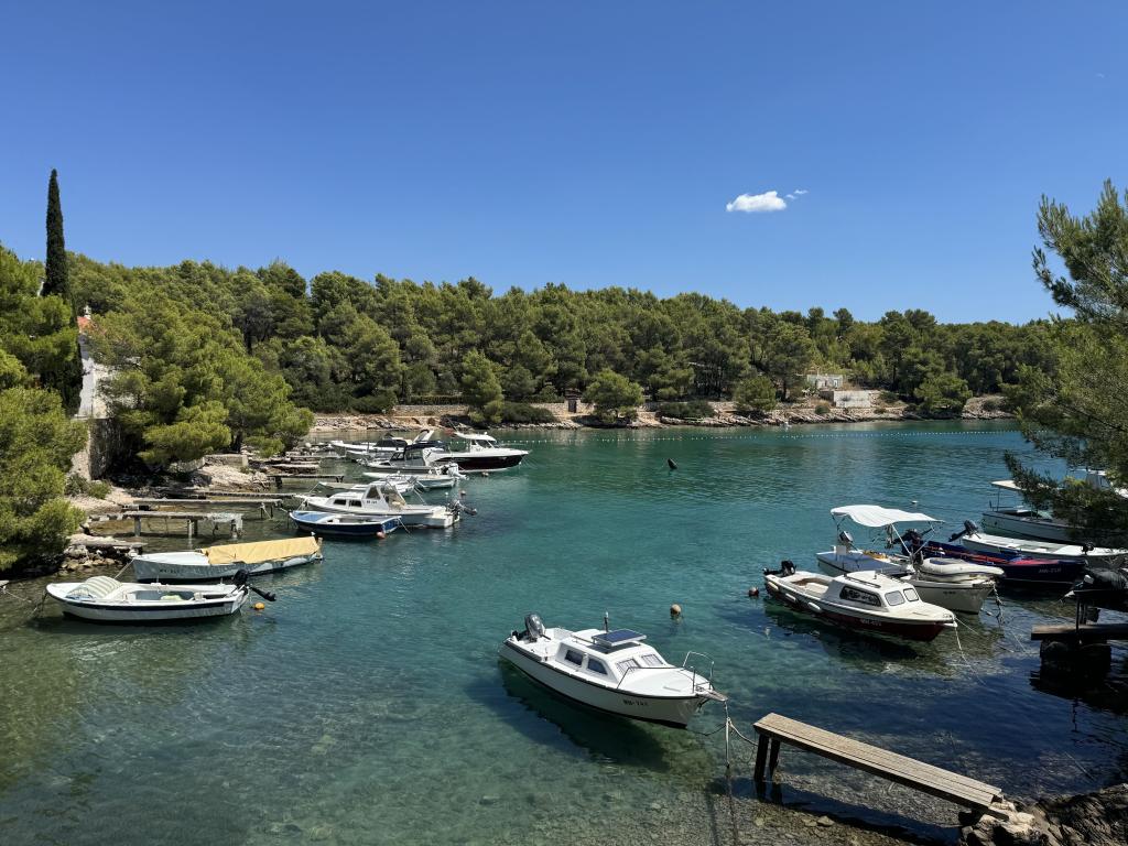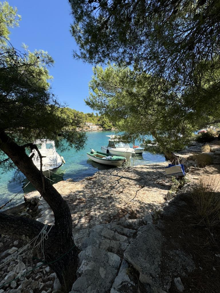 Vores lejligheder ligger i en fredelig, rolig bugt Osibova på øen, kun 2 km fra Milne. Boblerne er en bank, posthus, apotek, lystbådehavn, diverse restauranter og barer, og en fisk marked og et marked med lokale produkter. Nærliggende facilitet er det muligt at nyde gåture gennem cross-træer, dykning, snorkling, men også forskning forskellige historiske bygninger. Seafront, kan gæsterne slappe af på den store terrasse med en smuk udsigt, duften af fyrretræer og solen. Strand sikkert for børn er kun 30 m fra vores anlæg. Desert Blaca ligger på 7 km væk, og havnen Supetar 18 km afstand fra vores lejlighed.
