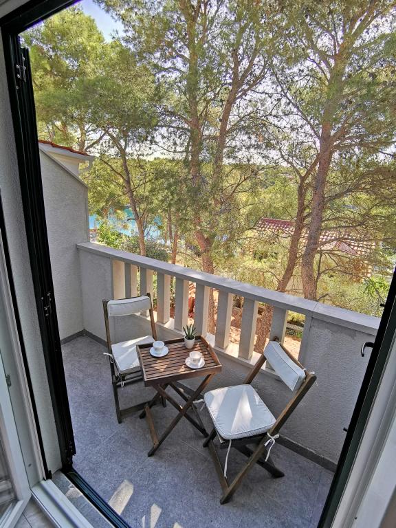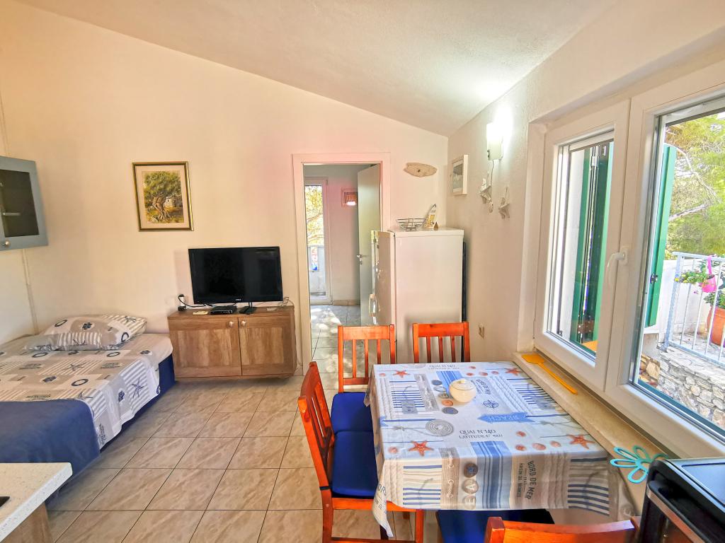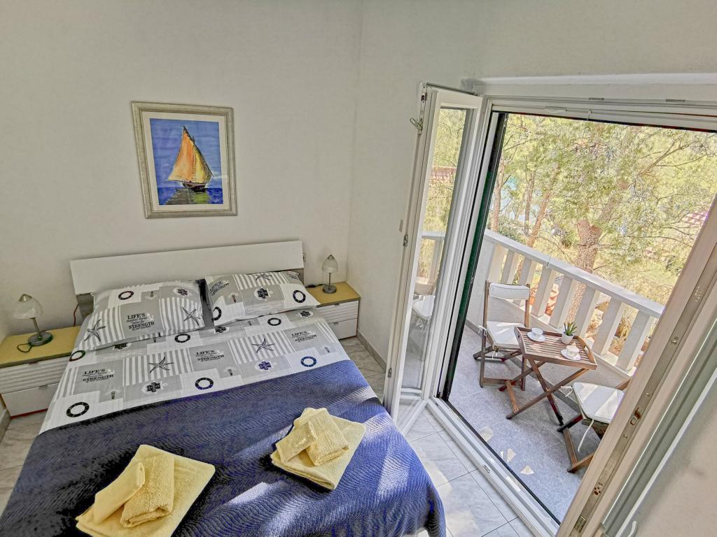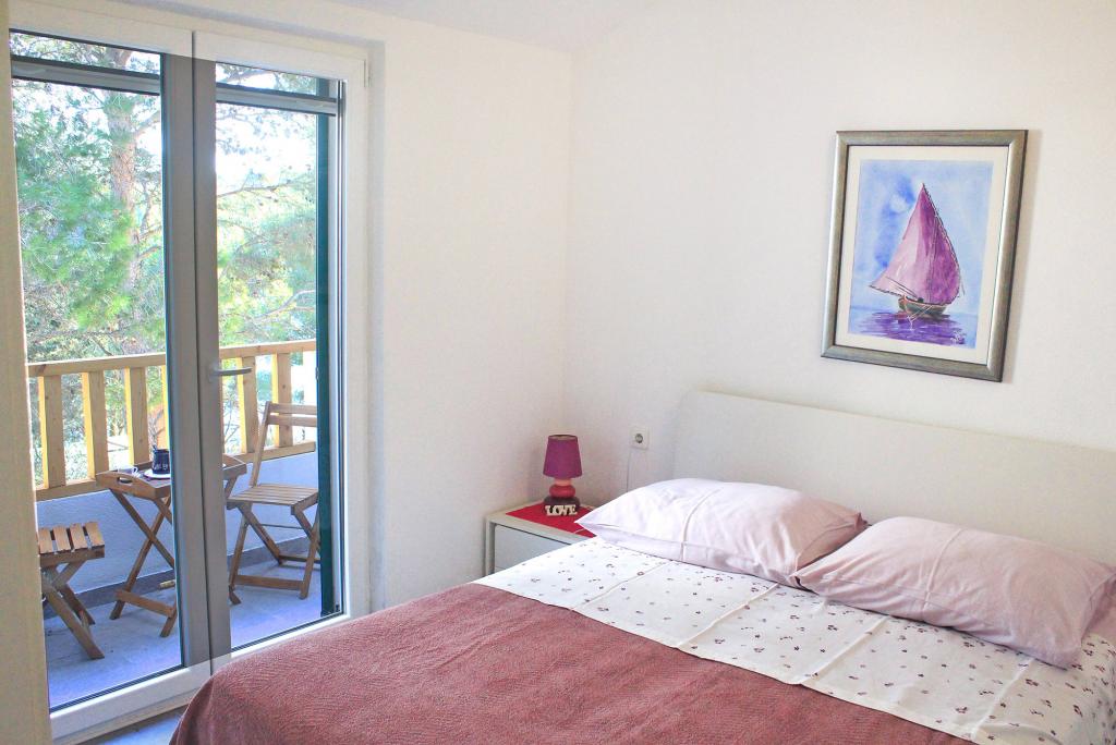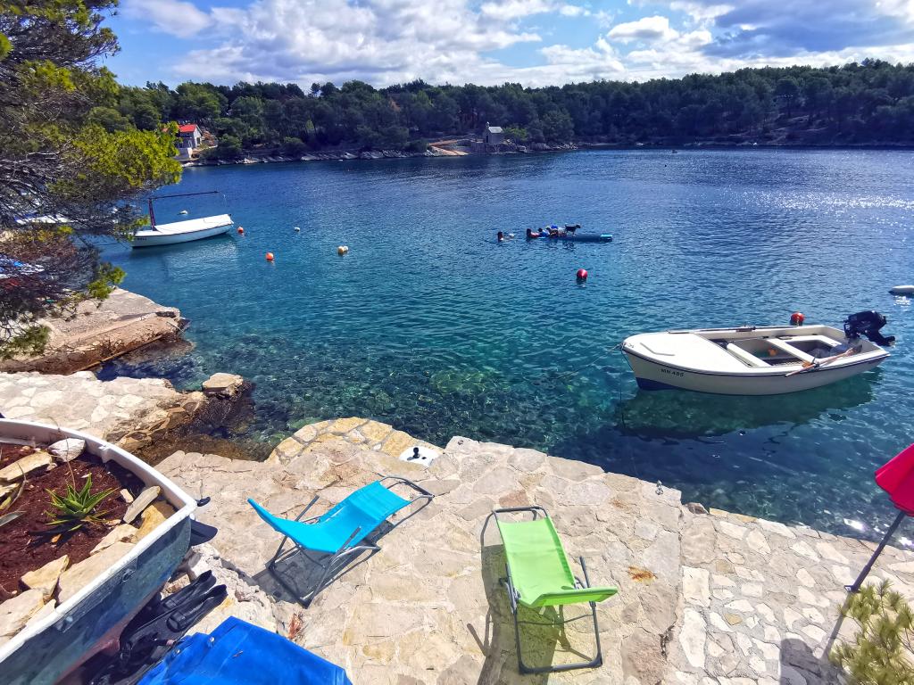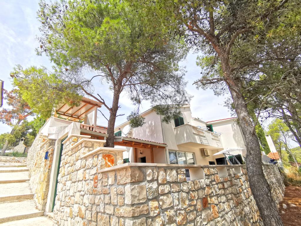 To lejligheder moderne udstyret og aircondition, beliggende i en smuk fyr skoven, bugter smiještenena i den sydvestlige del af øen, 30 m fra havet, som også er og strand. Lejlighederne består af køkken, stue, soveværelse og badeværelse. Hver lejlighed har sin egen terrasse og parkeringsplads. Den nærmeste by Milna, beliggende på 1500m afstand, dvs 15 min gåtur.