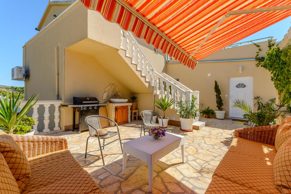 Kudos til vores vidunderlige værter. Smilende, behagelig, altid klar til at hjælpe. Gæstfrihed på højt niveau. Lejligheden er vidunderlig, et stort køkken med alle de nødvendige ting, udstyret til enhver detalje (komfur, brødrister, kaffemaskine). Kæmpe køleskab, fryser, vaskemaskine. Rent, ryddeligt, nyt. Håndklæder, strandudstyr til rådighed. Stranden er et par skridt væk, havudsigten fra terrassen er uvirkelig. Den store terrasse er perfekt til morgen- og aftennydelse. Vi følte os som hjemme. Vi har ikke en eneste klage. Enhver, der vælger dette sted, vil ikke gå galt. Tak igen, og vi vil helt sikkert se dig igen.