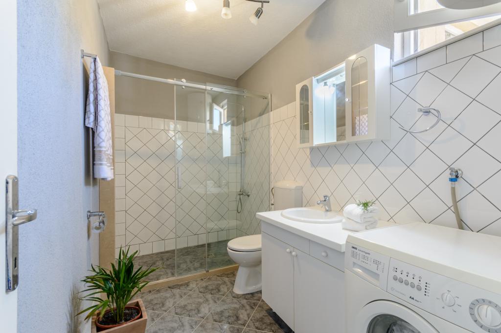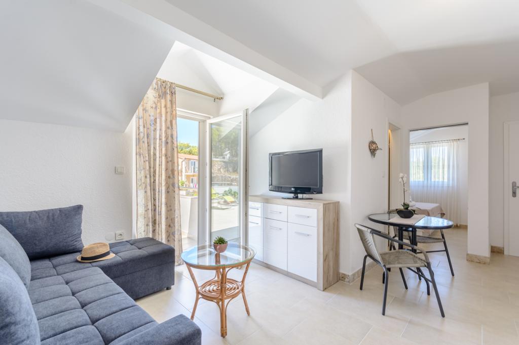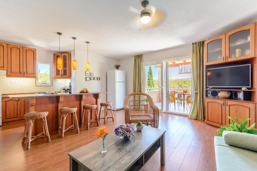 Alle i familien var imponerede over lejligheden, hvor vi boede i 12 dage. Værten er yderst venlig og altid klar til at hjælpe eller give råd. Lejligheden er yderst smagfuldt indrettet, badeværelserne er rummelige og rene, sengene er komfortable, og køkkenet har alle de nødvendige husholdningsapparater. Terrassen med udsigt over havet er vidunderlig. Værtinden sørger også for gratis liggestole, puder og håndklæder til stranden, som du kan nå ved at gå ned af skråningen og trapperne på to minutter. Milna, hvor de nærmeste butikker er, er en fem-minutters kørsel i bil eller en 2 km gåtur langs en lokal vej mellem olivenlunde. Lejligheden er præcis som du ser den på billederne. Der er også et stort smart-tv i stuen, hvilket nok er vigtigt for de unge. Wi-fi er også ok, ikke ligefrem fantastisk, men vi var tilfredse det meste af tiden. Jeg tror, vi kommer til Nirvana på Brač!