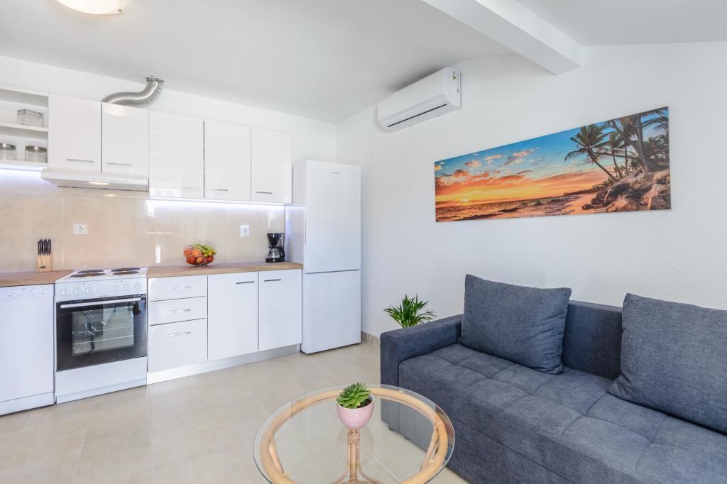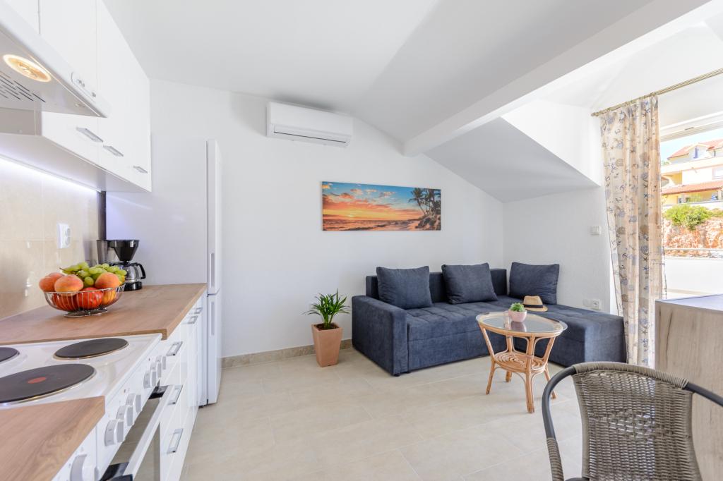 Top beliggenhed, tæt på havet. Stor terrasse med havudsigt. Lejligheden er meget pænt indrettet og ren. Sengen er meget komfortabel. Lejligheden har alt, hvad man behøver. De tilbyder liggestole, parasoller og håndklæder til stranden. Havet er smukt, og strandene er velholdte og børnevenlige. Fru Ivanka er en meget venlig og varm person. Vi kan anbefale!