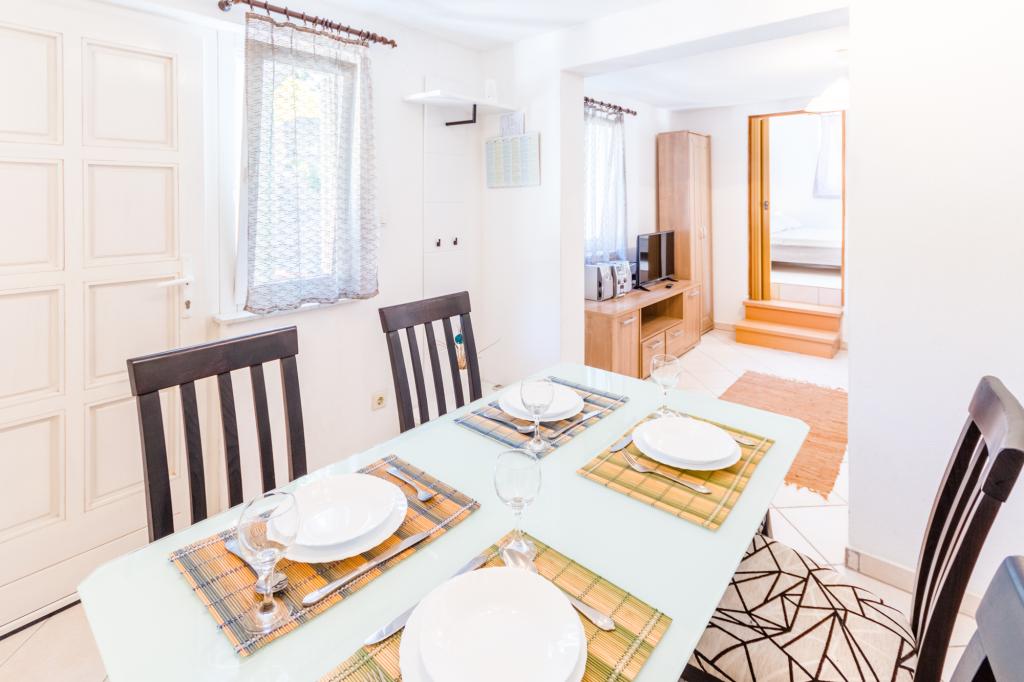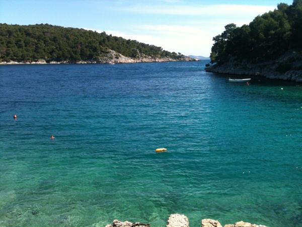 Villa Klara ligger i en stille bugt, kun et minuts gang fra stranden, som i højsæsonen var halvtom, og man kunne finde et sted i skyggen på klipperne. Bugten til børn er lille, men stor nok til svømning, fordi der ikke er mange mennesker, hvilket var godt for vores elleve måneder gamle pige. Lejligheden er fuldt udstyret og ekstremt ren og ryddig, hvilket var meget vigtigt med en lille slyngplante. Foran lejligheden er der en markeret parkeringsplads, så der er ingen bekymring for at lede efter parkering. Vi var mest imponeret over den hjertelige vært, der forklarede alt for os ved ankomsten og var til din tjeneste for alle spørgsmål og bekymringer. Vi vil helt klart anbefale denne lejlighed til alle, der ønsker fred, ro og krystalklart hav.