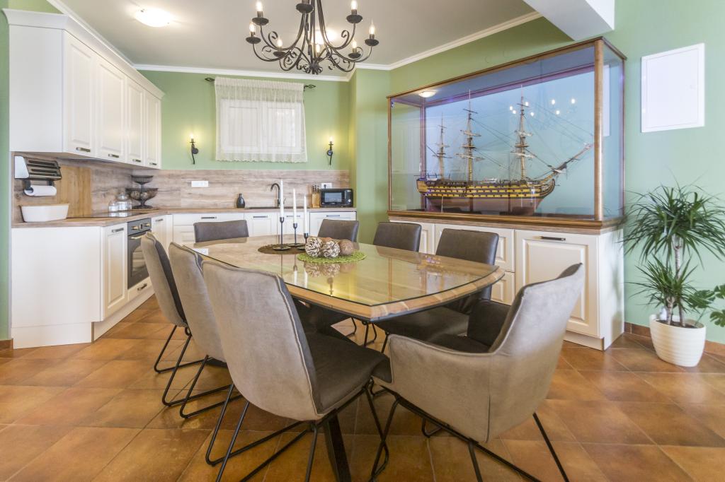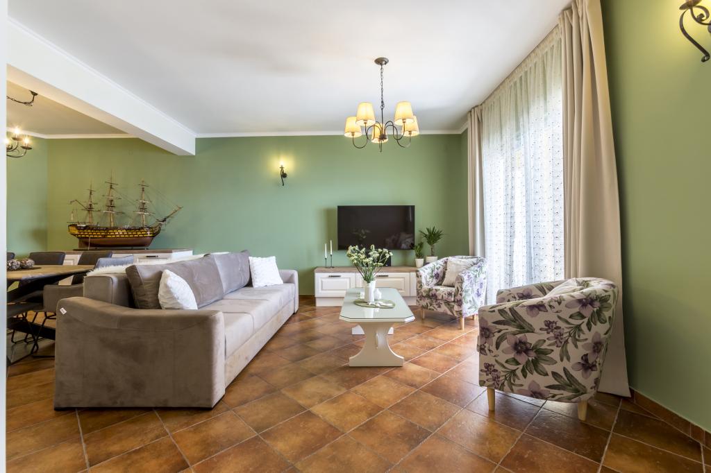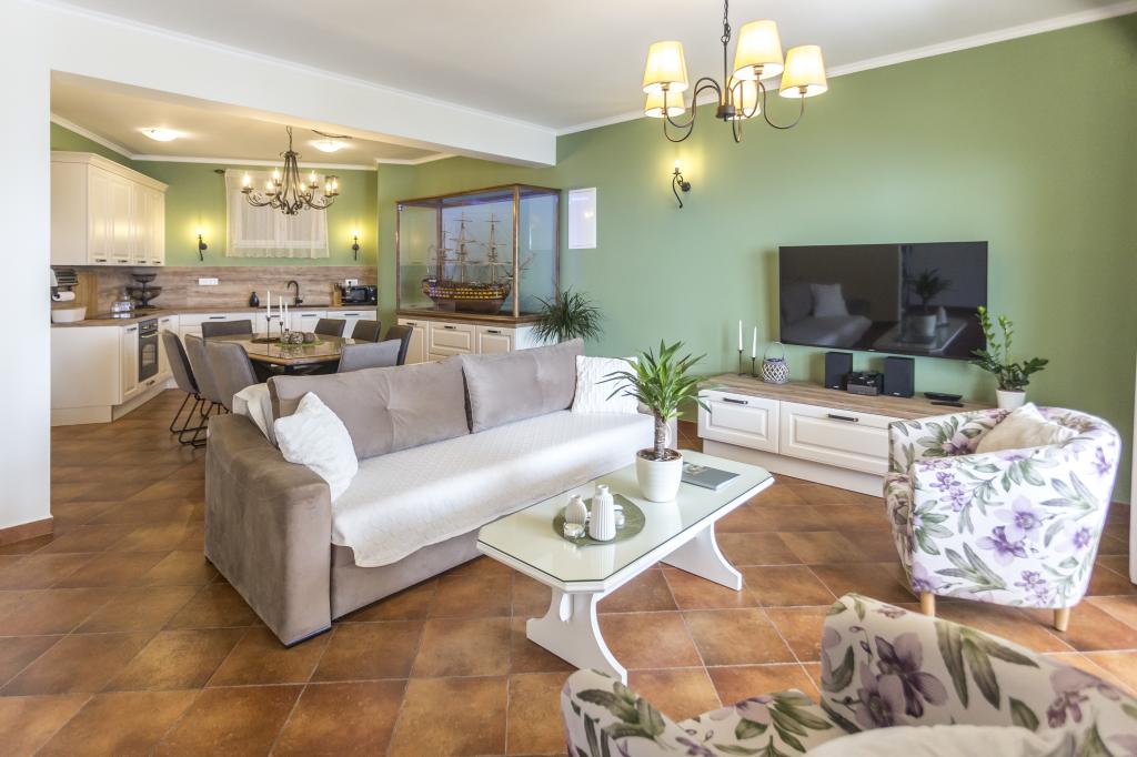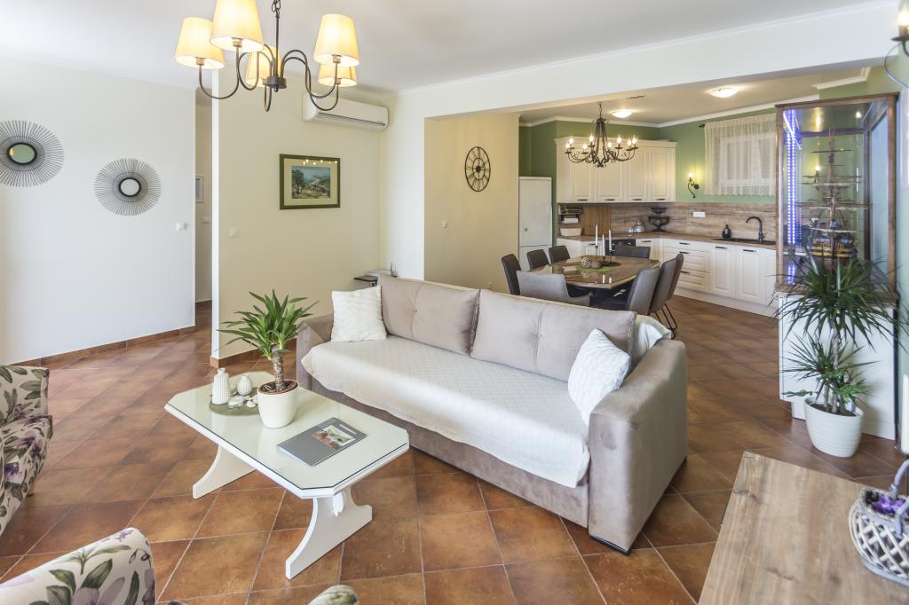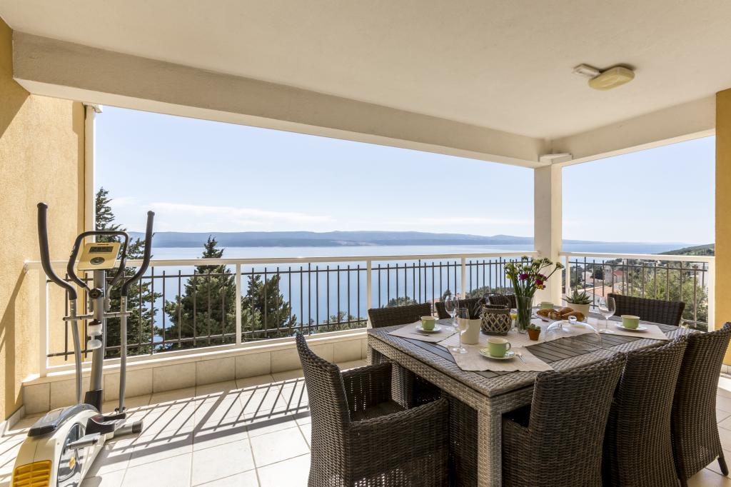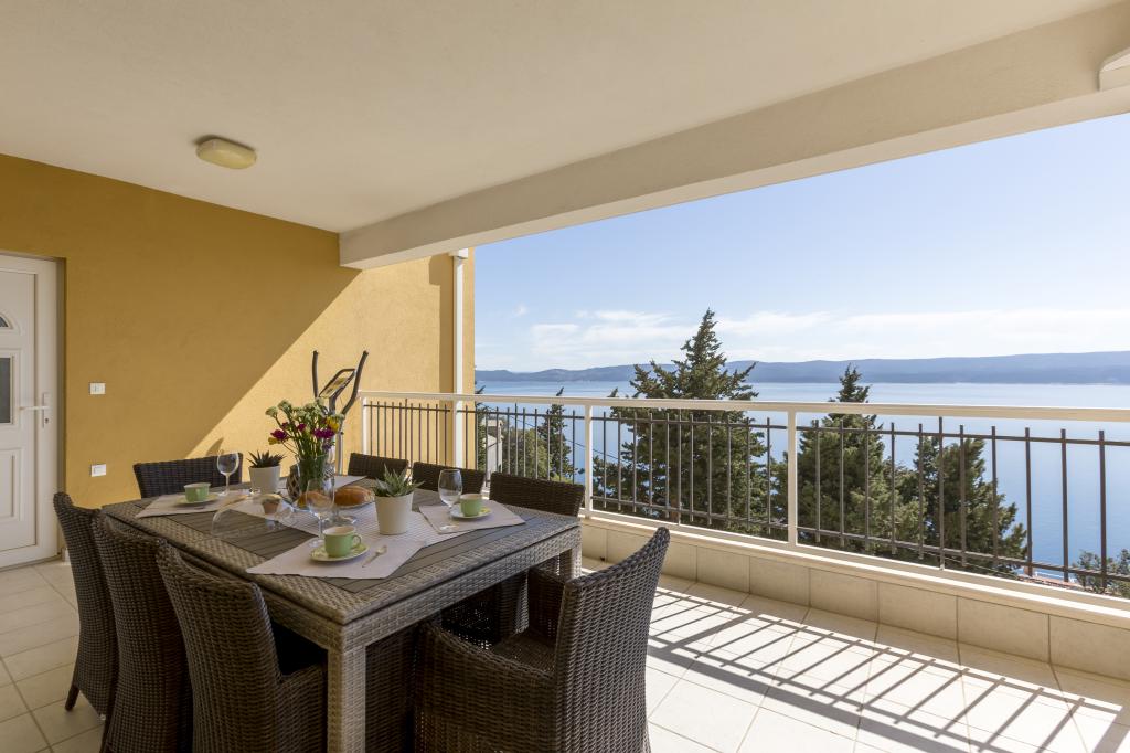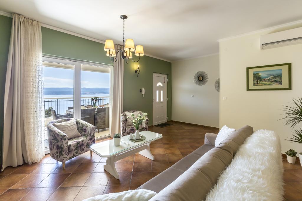 Lejlighed VICTORY ligger i en fritliggende villa nær den rolige landsby Mimice med en smuk havudsigt foran og smuk bjergnatur bag villaen. Et ideelt sted og beliggenhed for familier, der ønsker at undslippe de overfyldte og støjende turistområder. Lokale strande ligger kun 10 minutters gang væk, inklusive restauranter, strandbarer og et lokalt marked. Lejligheden er luksuriøst møbleret med helt nye møbler og alt nødvendigt udstyr. Lejligheden er 120 m² stor, har plads til maksimalt 8 gæster og består af: * Tre (3) soveværelser udstyret med aircondition og nye møbler. * To (2) badeværelser med toilet og vaskemaskine. * Stor spisestue (til 8 personer) med et helt nyt køkken udstyret med alt nødvendigt service. * Stor stue med en stor sofa og to lænestole. * Stor balkon (20 m²) med en smuk havudsigt med et spisebord til 8 personer. Lejligheden er udstyret med et stort 55” smart LED-tv med satellitkanaler og lydsystem med aircondition.