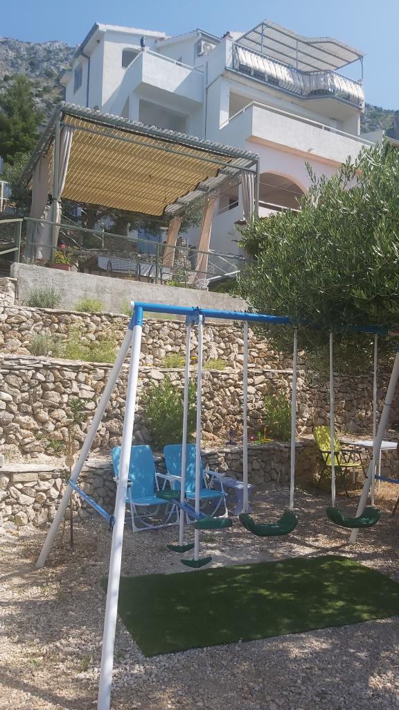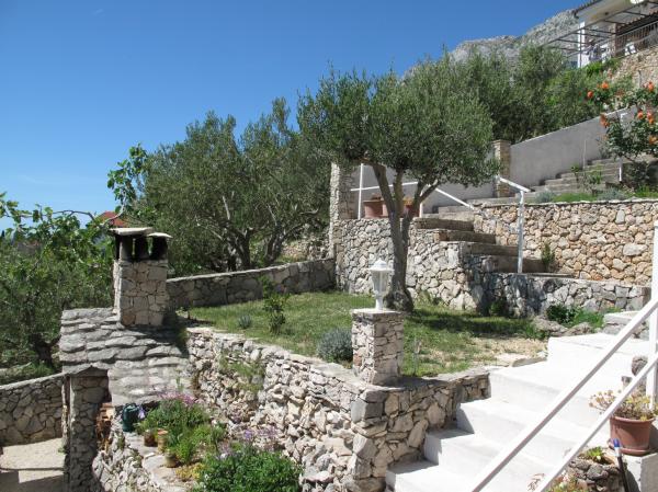 Lejlighederne er beliggende i et roligt område. Veludstyrede lejligheder. På ejendommen er der en dedikeret grillplads og et sted at hvile på liggestole. Der er også oliventræer og figentræer. Det tager cirka 10 minutter at komme til strandene med en afslappet gåtur, nedkørslen er ret stejl.Der er en købmand, posthus, grøntsagsbod i nærheden. Værterne var meget venlige, de behandlede os med figner og børnene med pandekager. Ved ankomst i et køleskab, En flaske afkølet vand og lokal øl ventede på os. På afrejsedagen gav hr. Ibrahim os gaver i form af en nøddeknækker, en pose med tørrede urter, og børnene modtog en bog af værten. Jeg anbefaler at bo hos Mr. Ibrahim og hans kone, som et sted for en rolig ferie og en base for ture til byerne Split, Omis eller Makarska Riviera.