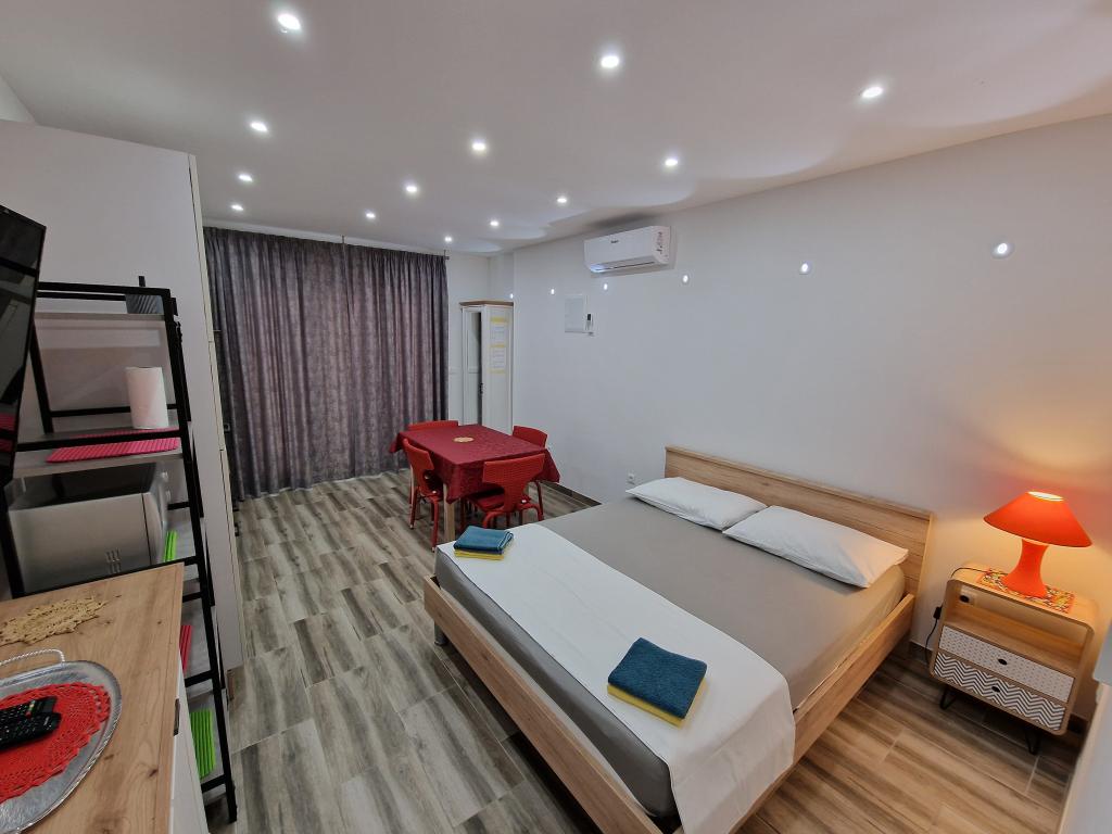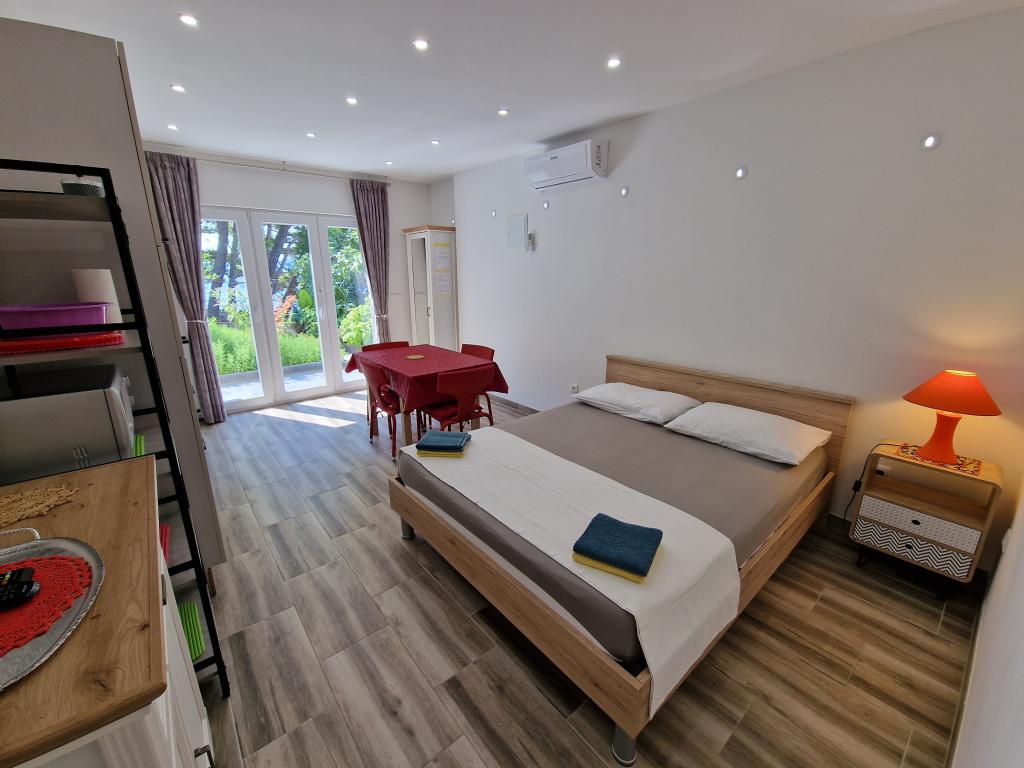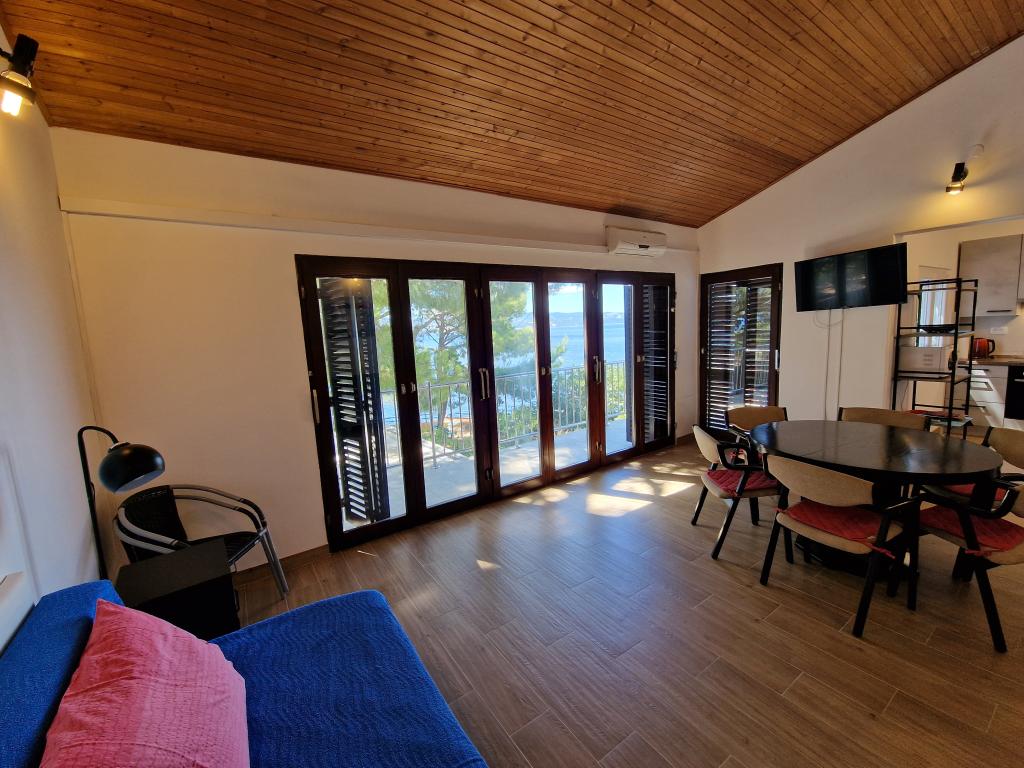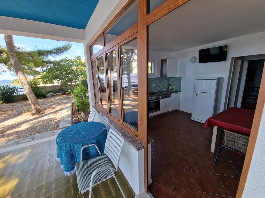 Kun 50 m fra den smukke stenstrand, første række til havet. A1- (51640) Lejligheden har plads til 6 gæster. Sengene er fordelt på 3 soveværelser, inden for 56 m2. Terrasse på 18 m2. Havudsigt fra den 350 m2 store skov. To badeværelser. Grill er fælles. Der er opvaskemaskine i køkkenet. A2- (51641) Lejligheden har plads til 5 gæster. Sengene er fordelt på 2 soveværelser og i spisestuen, inden for 73 m2. Balkon på 17 m2 med havudsigt. Grill er fælles. Der er vaskemaskine og opvaskemaskine i lejligheden. A3- (64424) Lejligheden har 2 senge i stuen med køkken og 2 i soveværelset. Stuen med køkken er 22 m2, soveværelset 7 m2, badeværelset 5 m2. Der er opvaskemaskine i køkkenet. Grill er fælles. Stor terrasse (35 m2) med havudsigt.