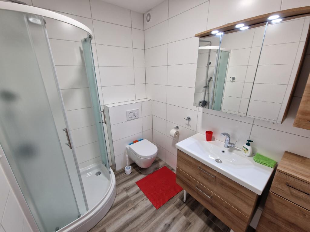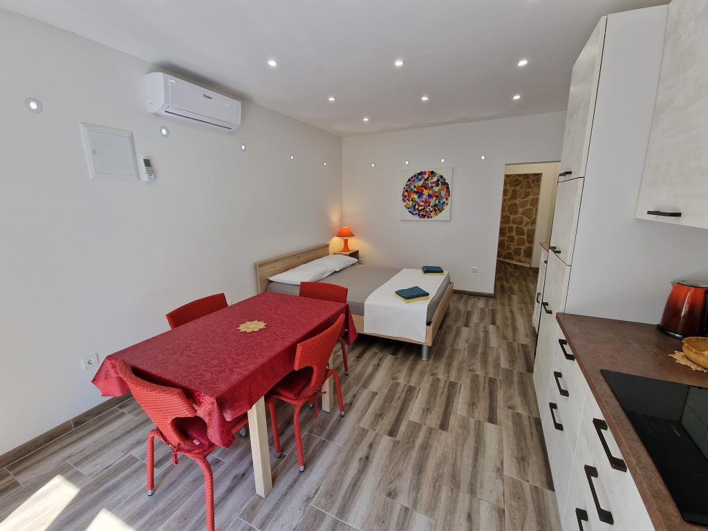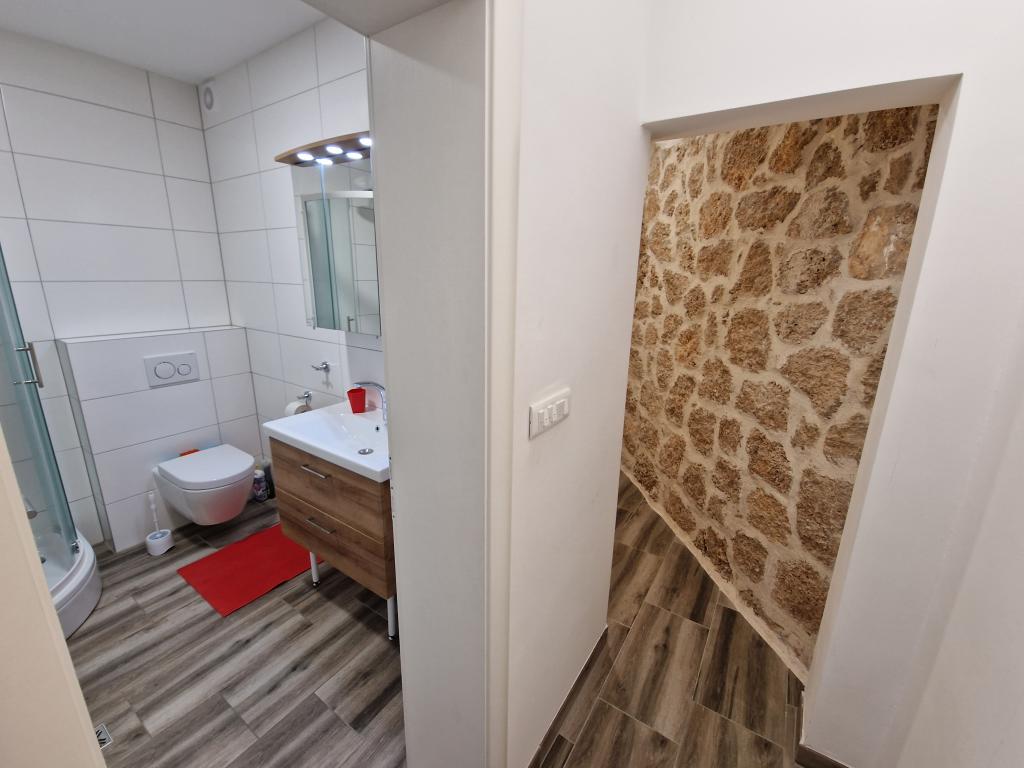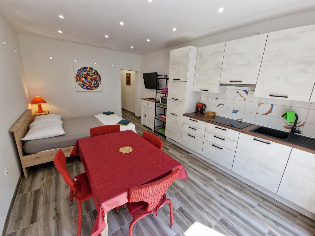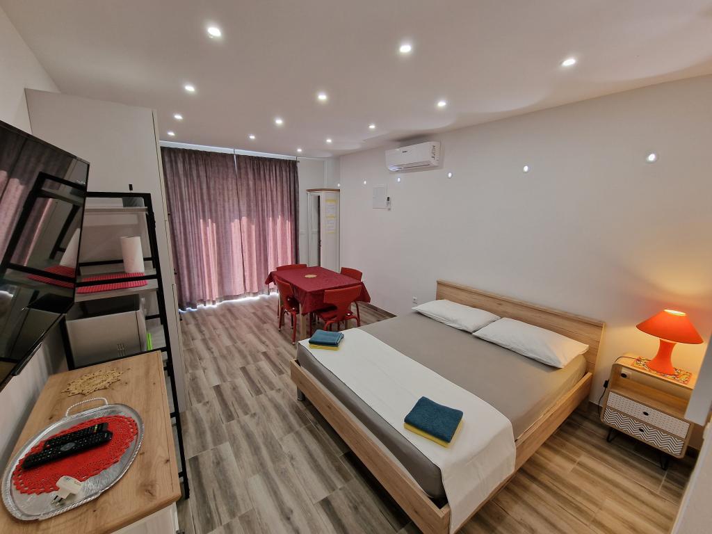 Kun 50 m fra den smukke stenstrand, første række til havet. A1- (51640) Lejligheden har plads til 6 gæster. Sengene er fordelt på 3 soveværelser, inden for 56 m2. Terrasse på 18 m2. Havudsigt fra den 350 m2 store skov. To badeværelser. Grill er fælles. Der er opvaskemaskine i køkkenet. A2- (51641) Lejligheden har plads til 5 gæster. Sengene er fordelt på 2 soveværelser og i spisestuen, inden for 73 m2. Balkon på 17 m2 med havudsigt. Grill er fælles. Der er vaskemaskine og opvaskemaskine i lejligheden. A3- (64424) Lejligheden har 2 senge i stuen med køkken og 2 i soveværelset. Stuen med køkken er 22 m2, soveværelset 7 m2, badeværelset 5 m2. Der er opvaskemaskine i køkkenet. Grill er fælles. Stor terrasse (35 m2) med havudsigt.