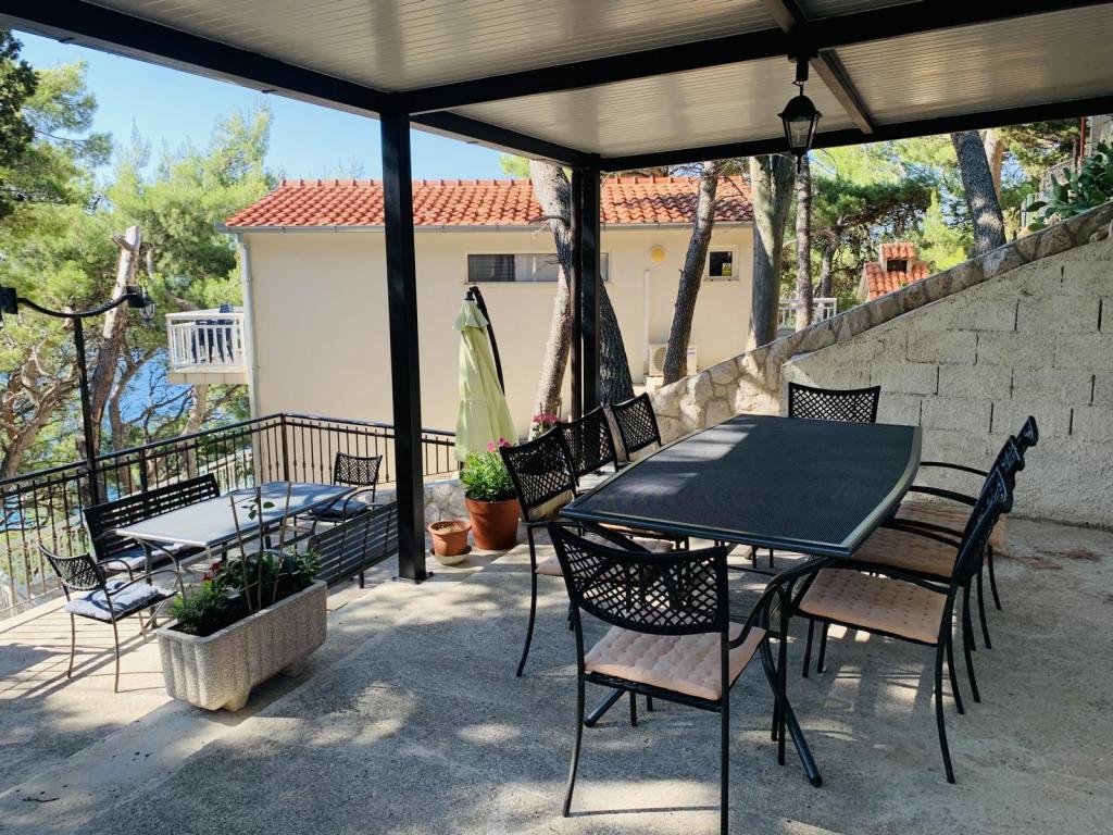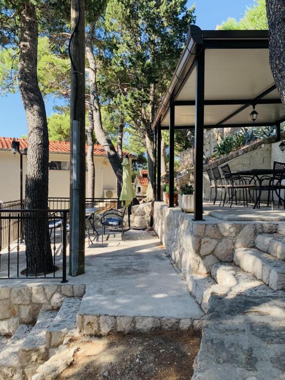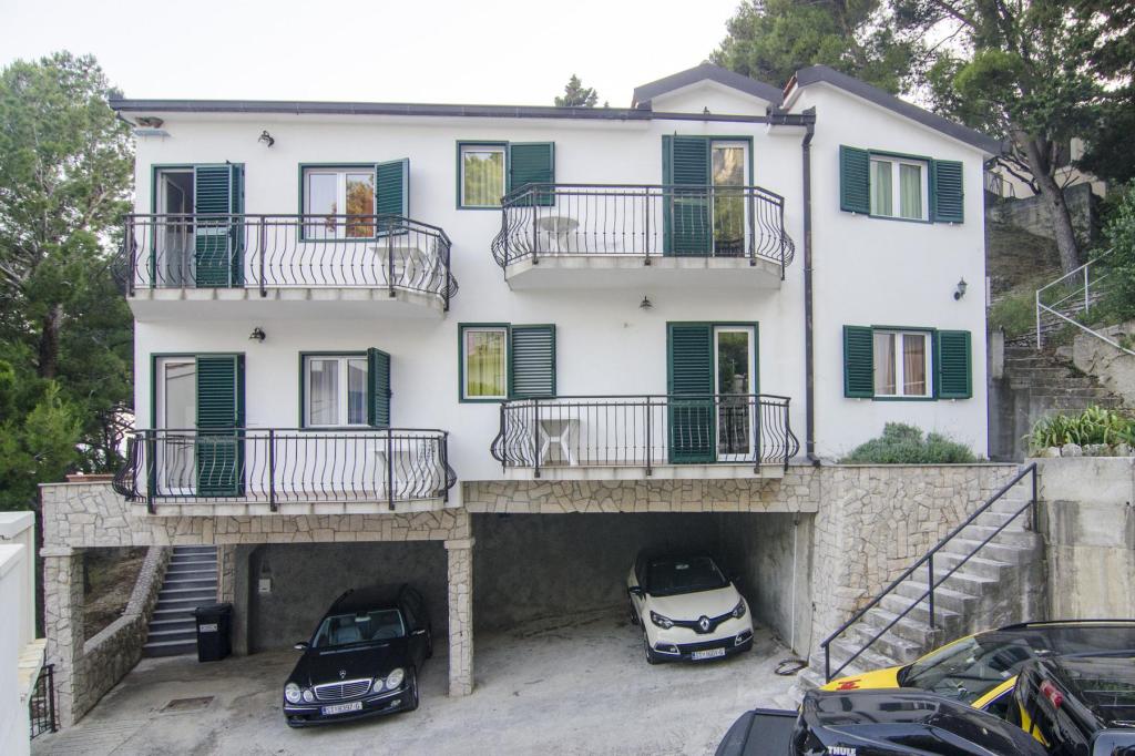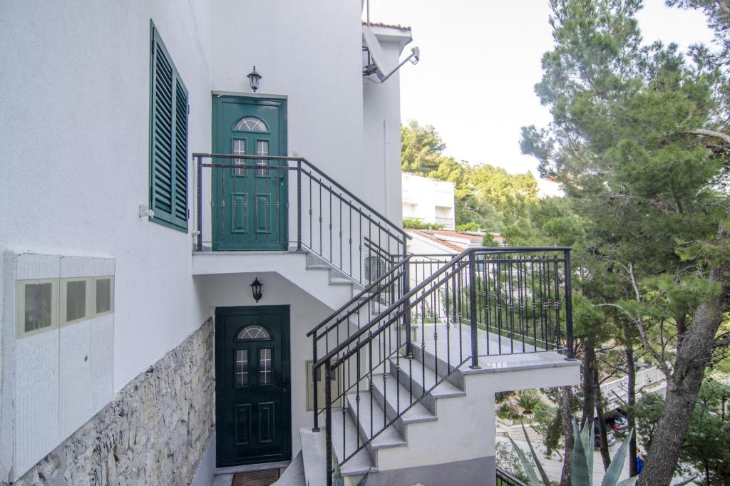 Smuk beliggenhed 30 m fra havet. Lejlighederne er omgivet af en fyrreskov og i bygningen er der fælles terrasser med grill, som kan benyttes af gæsterne. Hver lejlighed har sin egen balkon med udsigt over havet. Fuldt udstyret, aircondition, internet, parkering i din egen garage.