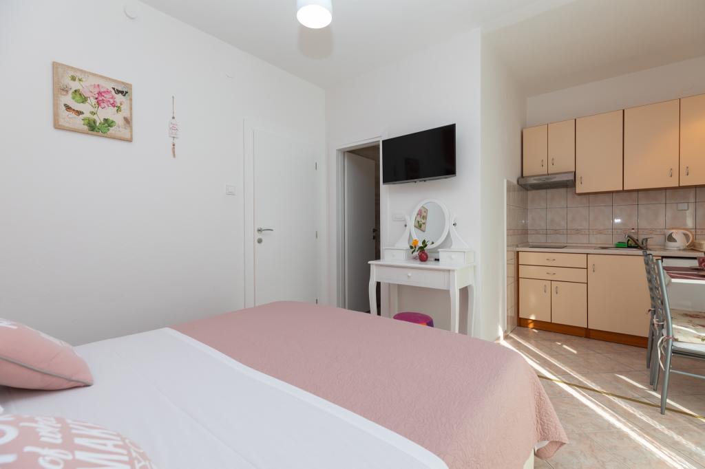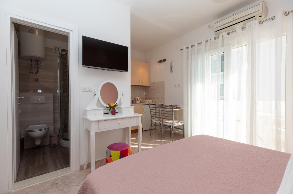 Vi anbefaler lejlighed Perak. Ejerne var meget venlige. Vi ankom 9 om morgenen og straks blev vi tilbudt kaffe og kolde drikke. Den lille Værelset var rent og duftende med en arbejdsklima og internet og en balkon med udsigt over Adriaterhavet. Tæt på den smukke og rolige strand med flot udsigt og fantastiske vand. Jeg anbefaler dette sted.