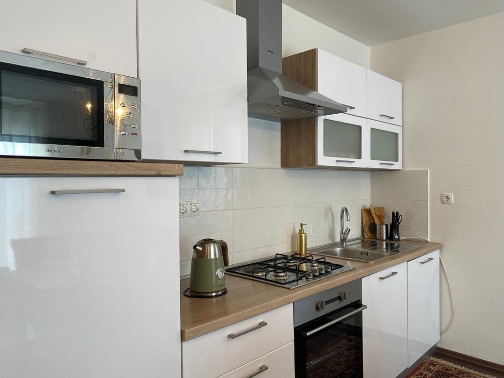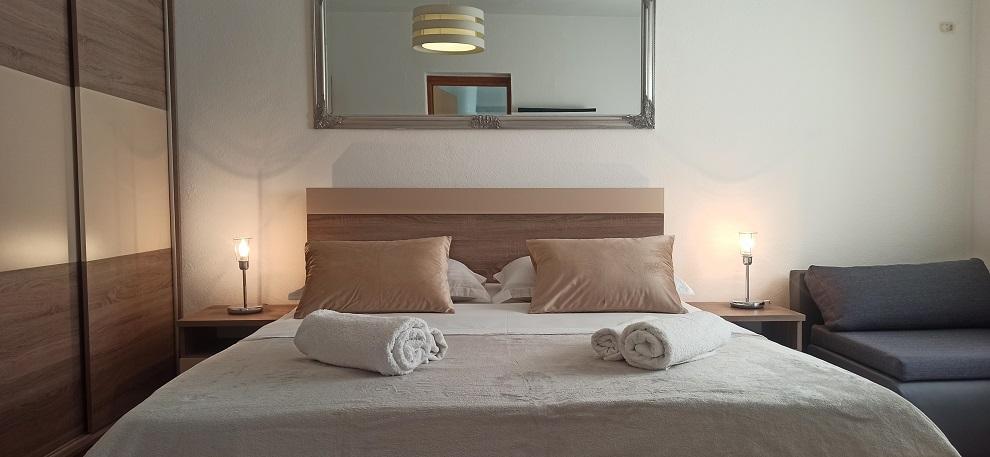 Lejligheden var ren, velduftende og pæn. Vi manglede intet. Beliggenhed tæt på en rolig strand. Smuk udsigt fra balkonen. Køkkenet er udstyret med alle nødvendige køkkenapparater. Vi følte os hjemme. Værtinden er en smilende kvinde, kontakten med hendes datter er fantastisk. Tak for muligheden for at tilbringe vores ferie med dig. Vi vil helt sikkert besøge jer igen. Jeg anbefaler det ærligt.