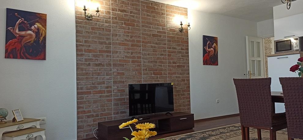 Min mand og jeg besluttede os for at tage på en 3-dages miniferie, og jeg valgte den smukkeste lejlighed, jeg kunne forestille mig! Et roligt sted, især for familier og dem, der ikke kan lide folkemængder. Terrassen med havudsigt er betagende, renligheden er helt i top! Alt hvad du behøver til en ferie, uanset hvor mange dage det tager. Stranden ligger omkring 40 meter væk - du skal bare krydse hovedvejen. Køkkenet er meget praktisk, har alt hvad du behøver, seng, aircondition... - alt er rent og pænt. Mirela er en fantastisk vært, en meget venlig kvinde, behagelig og tilgængelig på alle tidspunkter. Varme anbefalinger, jeg kan ikke vente med at komme igen!