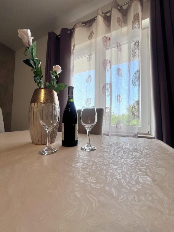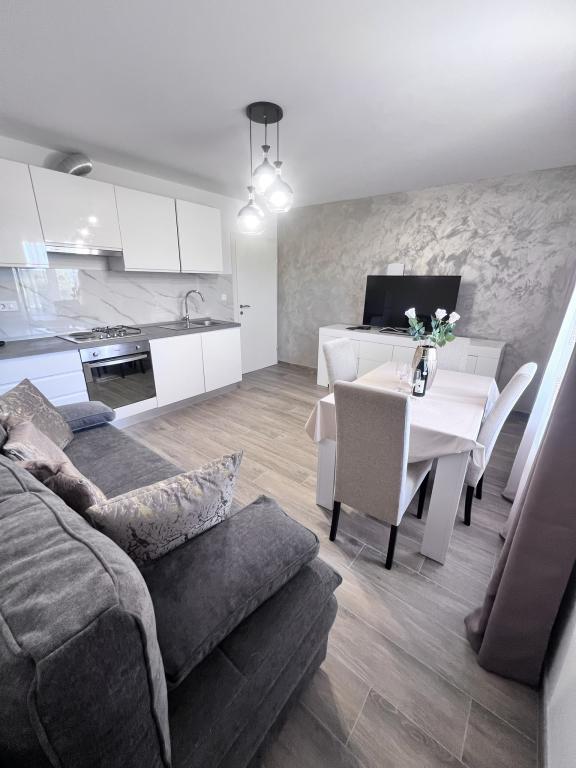 Moderne indrettede lejligheder, ideelle for børnefamilier og par. De ligger i en rolig beliggenhed på en skrånende bakke og tilbyder udsigt over havet og det omkringliggende område. Afstanden til den nærmeste strand er 900 m, og fra indkøbscentret er der 600 m, og busstationen ligger 3 minutters gang væk.