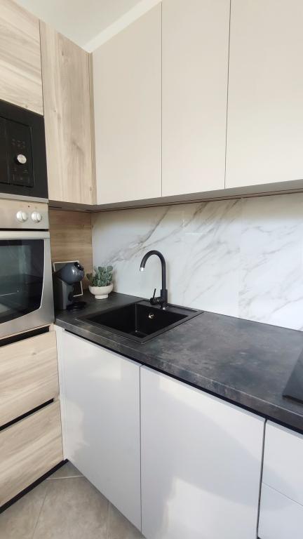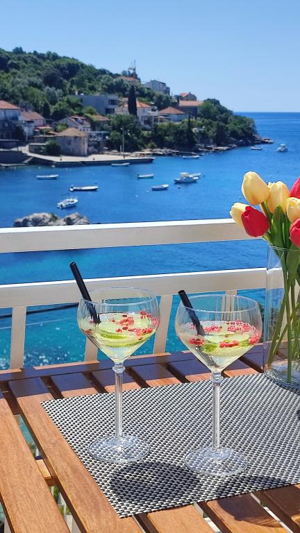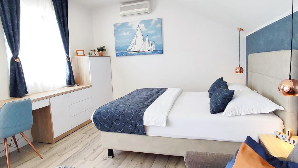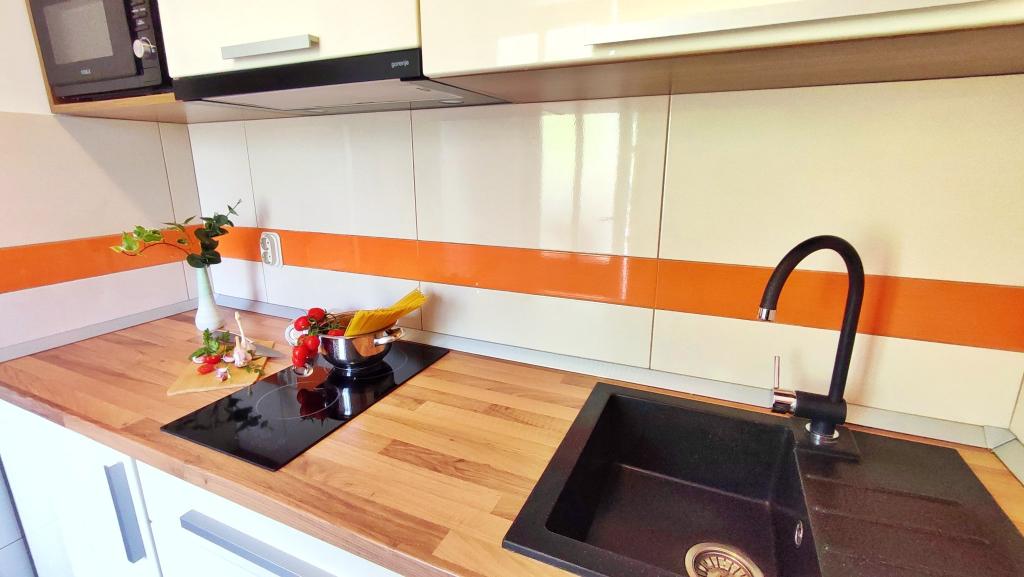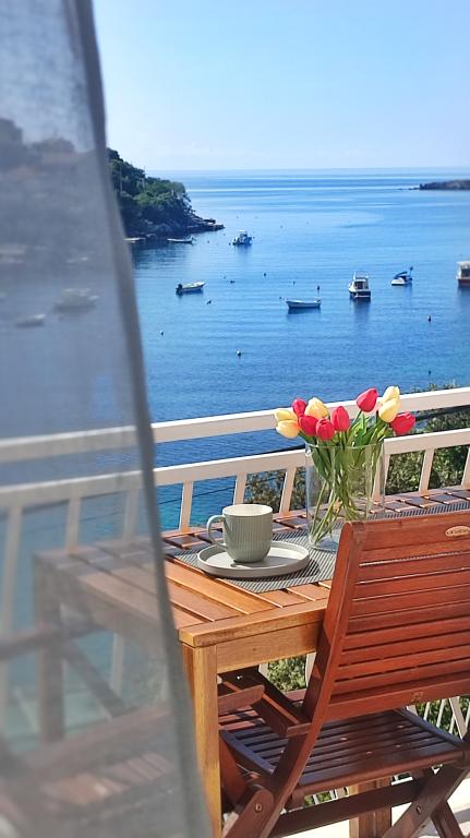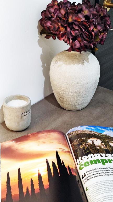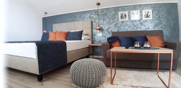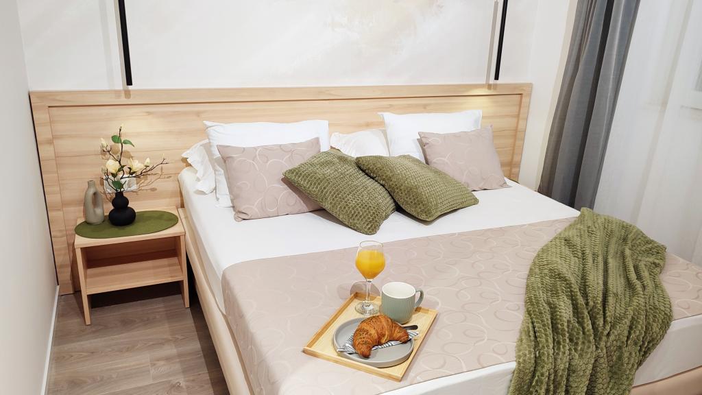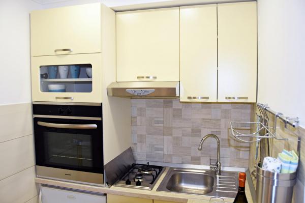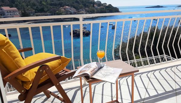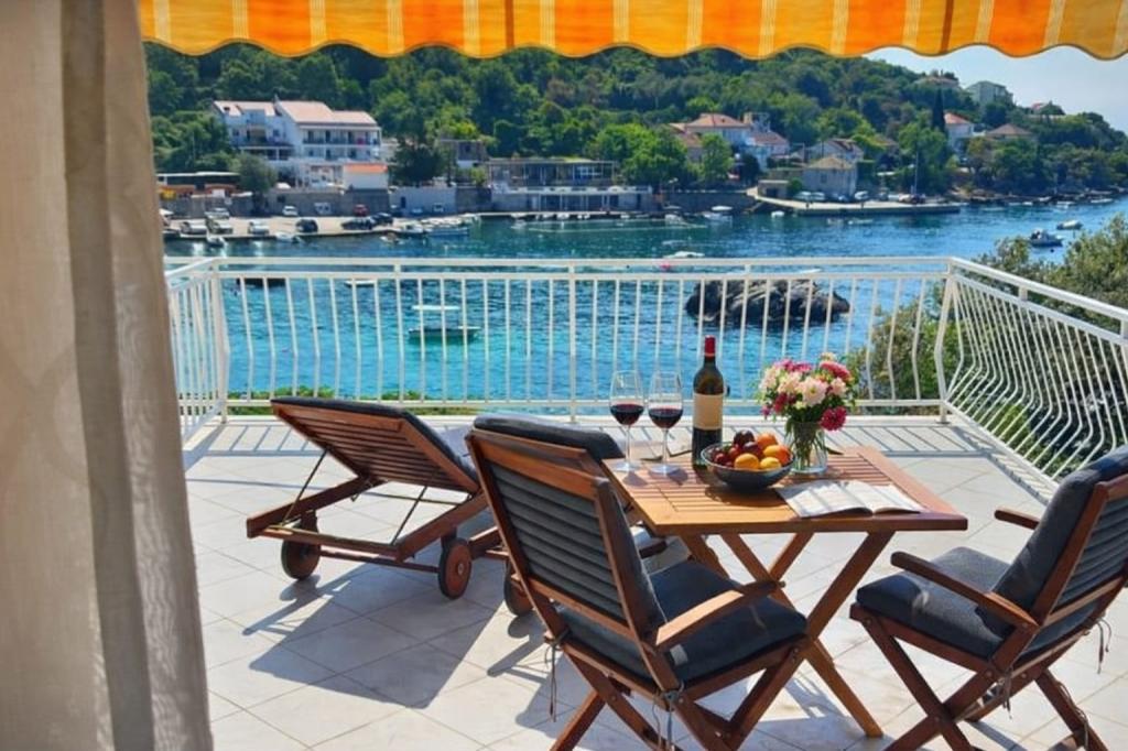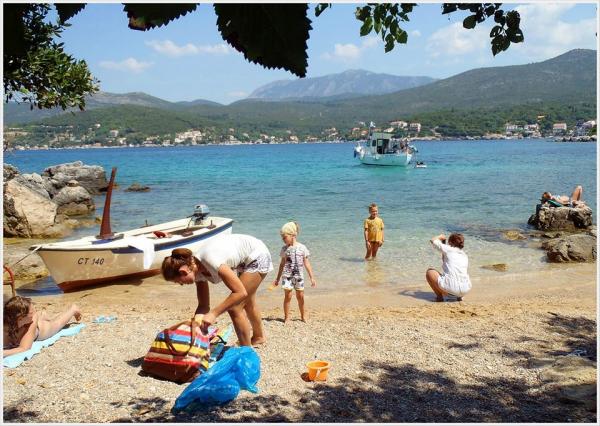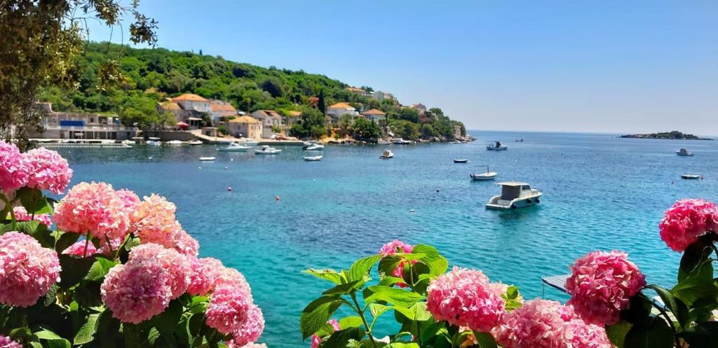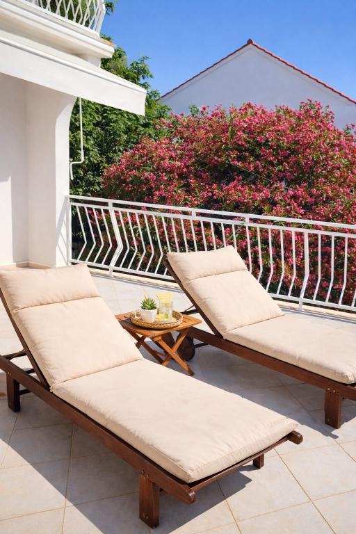 Jeg vil starte med værterne, for de er vidunderlige. Karmen og hele familien vil gøre din ferie yderst behagelig. De er der for ethvert spørgsmål og enhver form for hjælp. Vi blev mødt af en ren og pæn, smukt designet lejlighed, fuldt udstyret med alt nødvendigt i køkken og badeværelse. Håndklæder og klude skiftes regelmæssigt hver anden dag. De laver også fin olivenolie, som du kan købe i bygningen. Lejligheden er perfekt placeret, med sin egen lille stenstrand, hvor der er skygge om eftermiddagen. Du kan holde dig kold hele dagen, hvis du placerer dig under et træ. Vi kunne bruge grillen på stranden til enhver tid, den er tilgængelig for gæster. Den nærmeste restaurant ligger 3 skridt fra ejendommen og har et godt køkken med standardpriser for den kroatiske kyst. En mindre butik ligger 3 minutters gang væk, men den er veludstyret. Der er også en mindre sandstrand i nærheden af butikken, og en større er omkring 10 minutters gang væk. Hele byen er smuk og rolig, ideel til en fredelig ferie.