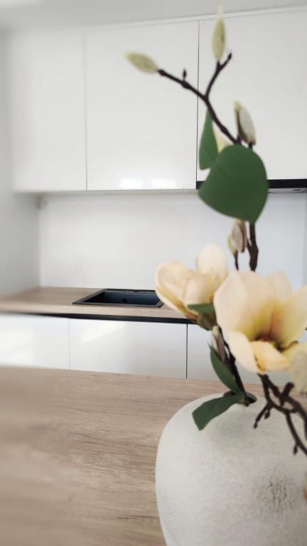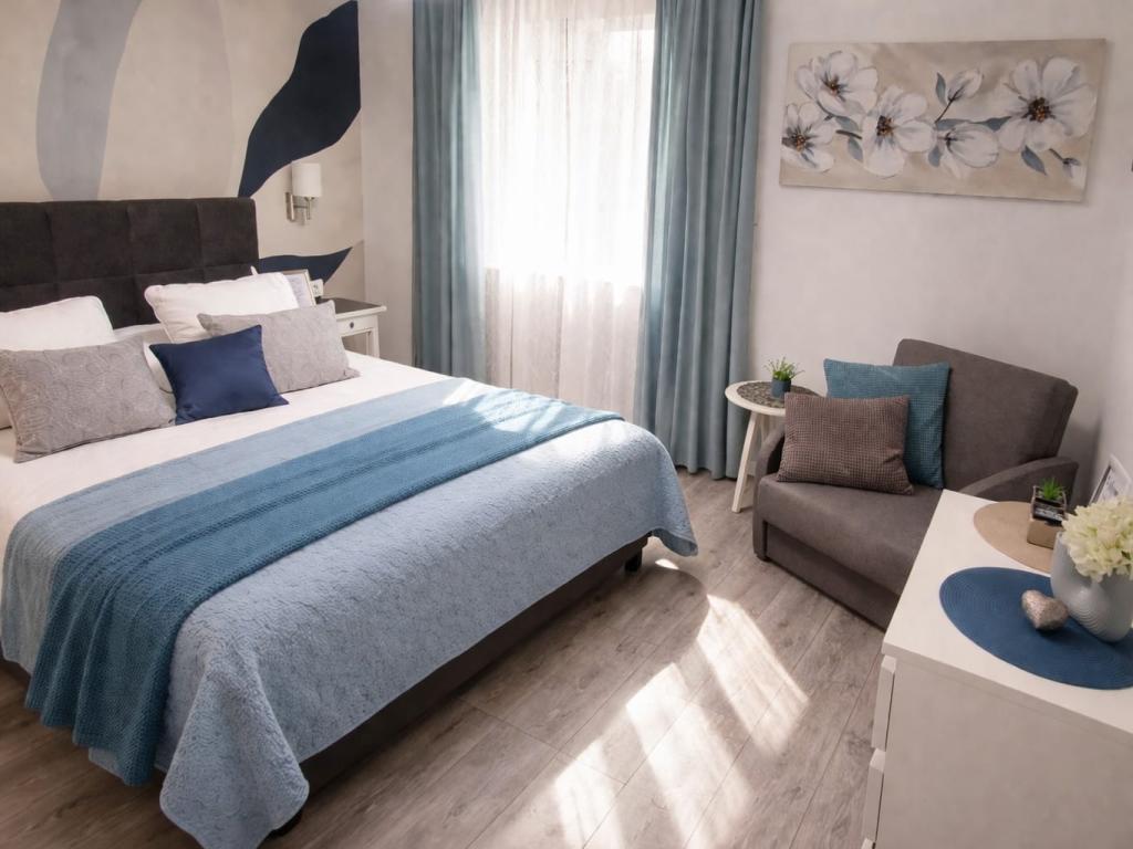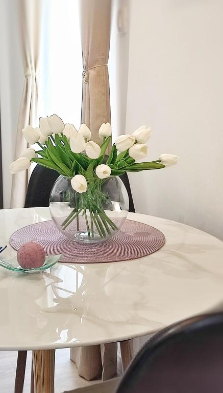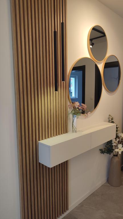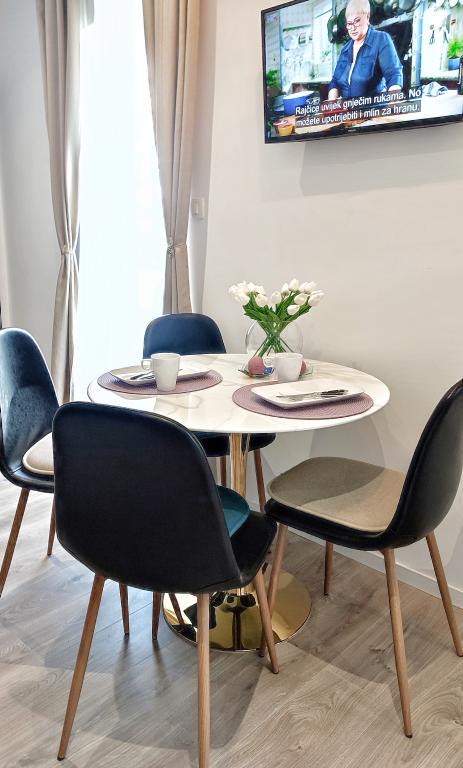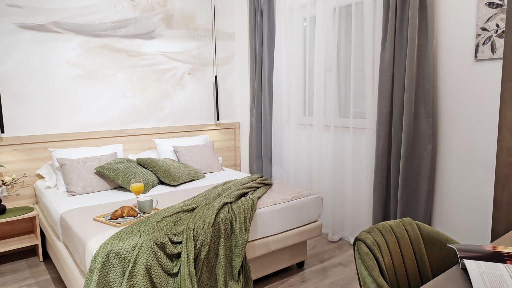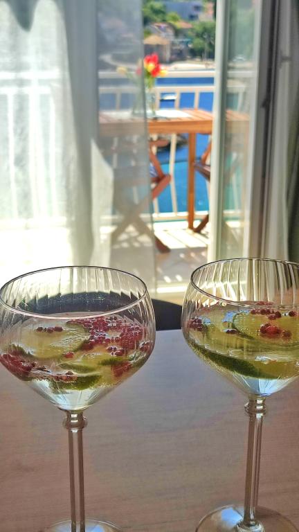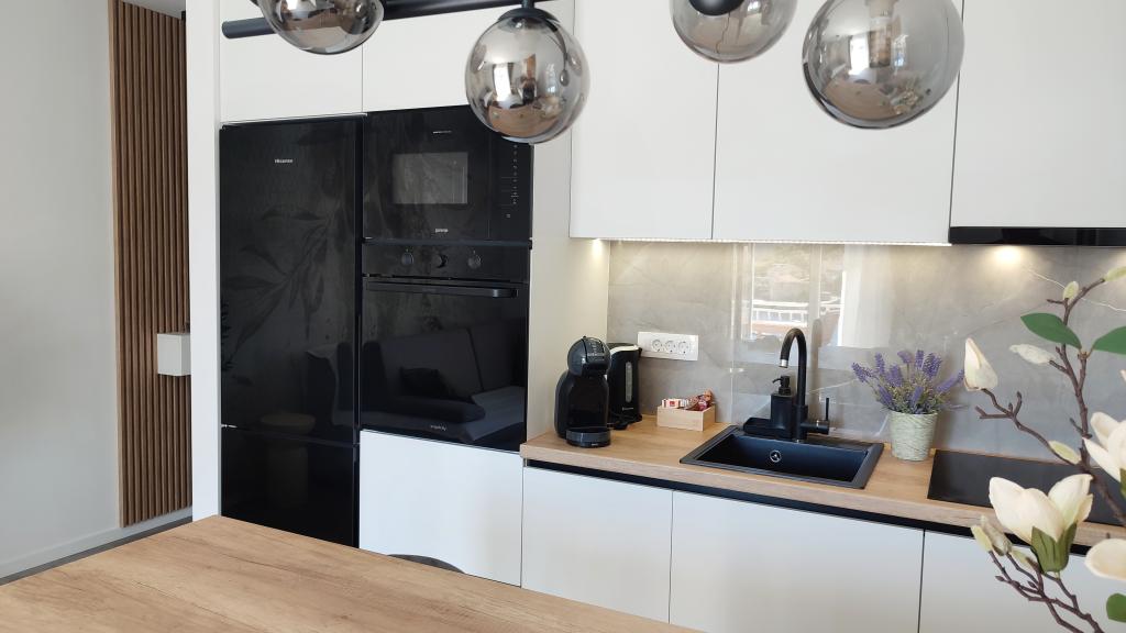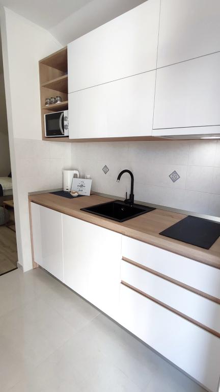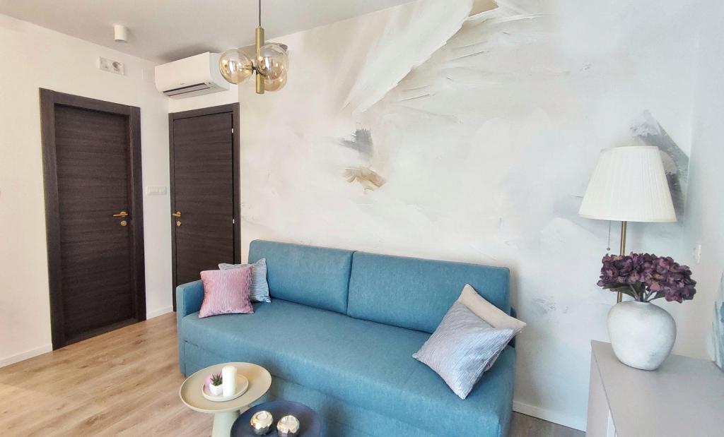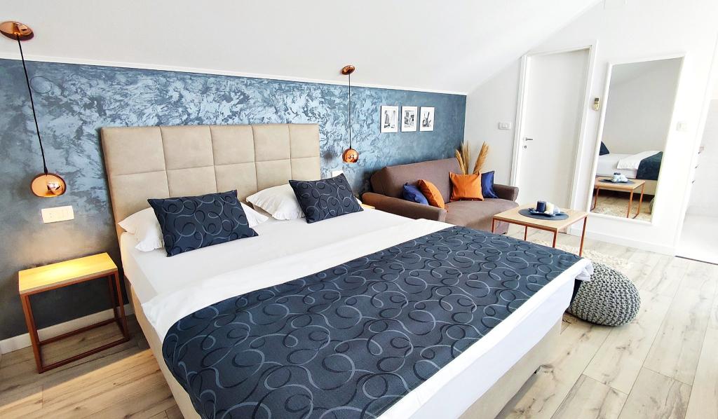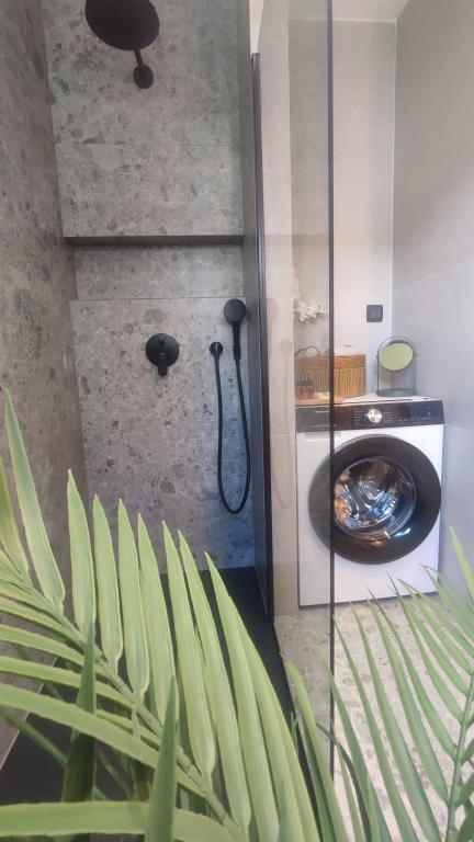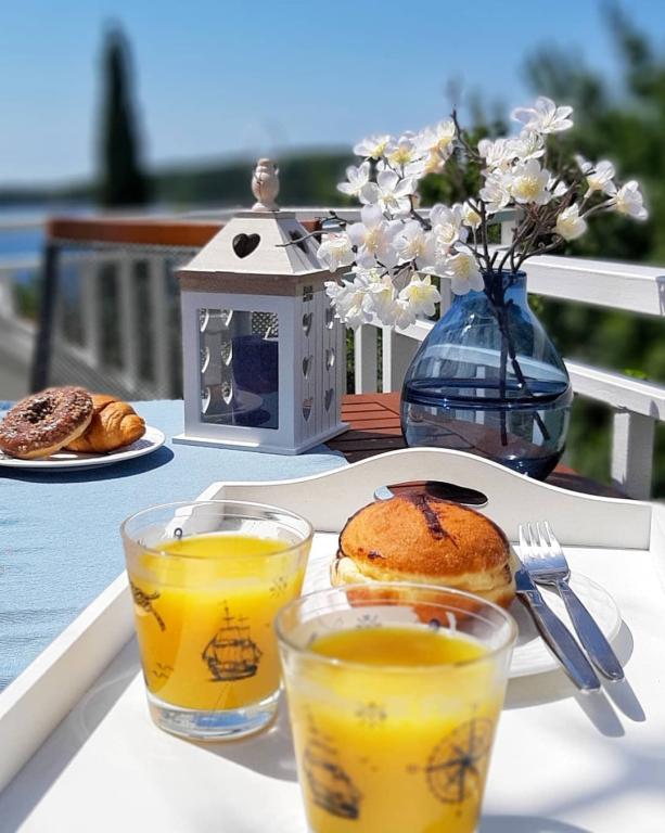 Jeg vil starte med værterne, for de er vidunderlige. Karmen og hele familien vil gøre din ferie yderst behagelig. De er der for ethvert spørgsmål og enhver form for hjælp. Vi blev mødt af en ren og pæn, smukt designet lejlighed, fuldt udstyret med alt nødvendigt i køkken og badeværelse. Håndklæder og klude skiftes regelmæssigt hver anden dag. De laver også fin olivenolie, som du kan købe i bygningen. Lejligheden er perfekt placeret, med sin egen lille stenstrand, hvor der er skygge om eftermiddagen. Du kan holde dig kold hele dagen, hvis du placerer dig under et træ. Vi kunne bruge grillen på stranden til enhver tid, den er tilgængelig for gæster. Den nærmeste restaurant ligger 3 skridt fra ejendommen og har et godt køkken med standardpriser for den kroatiske kyst. En mindre butik ligger 3 minutters gang væk, men den er veludstyret. Der er også en mindre sandstrand i nærheden af butikken, og en større er omkring 10 minutters gang væk. Hele byen er smuk og rolig, ideel til en fredelig ferie.