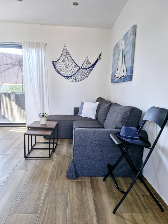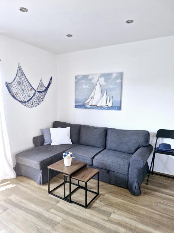 Lejligheden ligger på øen Murter i byen Murter. Den er forbundet med fastlandet med en bro, som fuldt ud sikrer trafikkommunikation. Lejligheden ligger i et nyistandsat hus, og dens areal er på 50 m2. Lejligheden kan rumme op til 3 personer (2+1). Det er første sal i et hus beliggende i en stille gade og som sådan tilbyder fred og diskretion til en behagelig ferie. Den består af køkken/spisestue/stue, soveværelse, badeværelse og balkon med havudsigt. I soveværelset er der en dobbeltseng (mål 160x200cm), og i stuen er der en komfortabel sovesofa. Den er udstyret med alle husholdningsapparater, 4k Android og satellit-tv, internet (Wi-Fi), aircondition og en parkeringsplads under videoovervågning. En vaskemaskine er tilgængelig til at holde dit vasketøj rent under dit ophold i vores lejlighed. Bygningen er ikke beregnet til rygere, men den har en altan, hvor rygning er tilladt. Vi går meget op i vedligeholdelsen af lejlighederne.