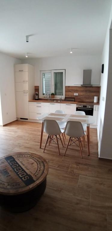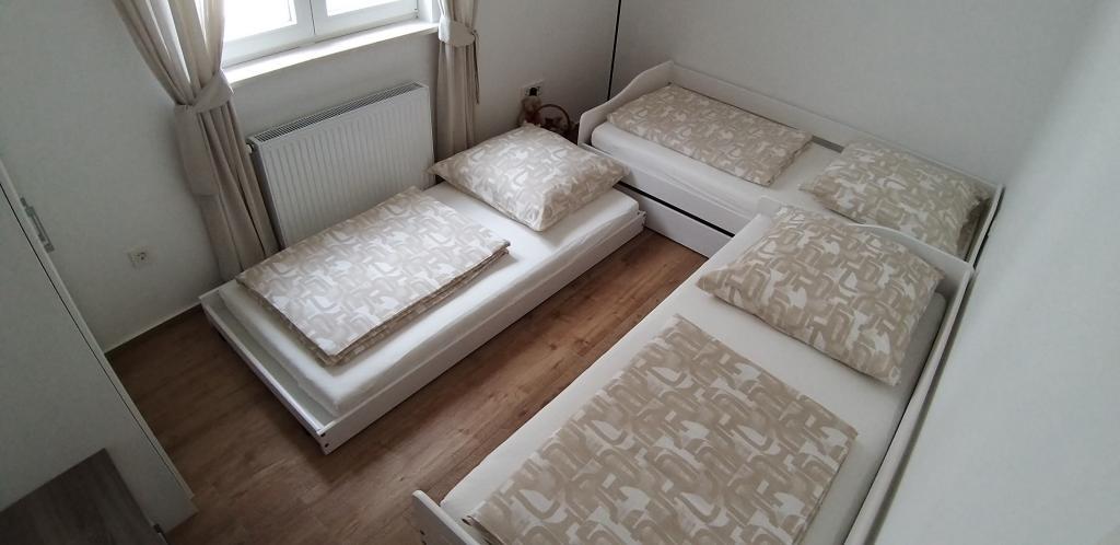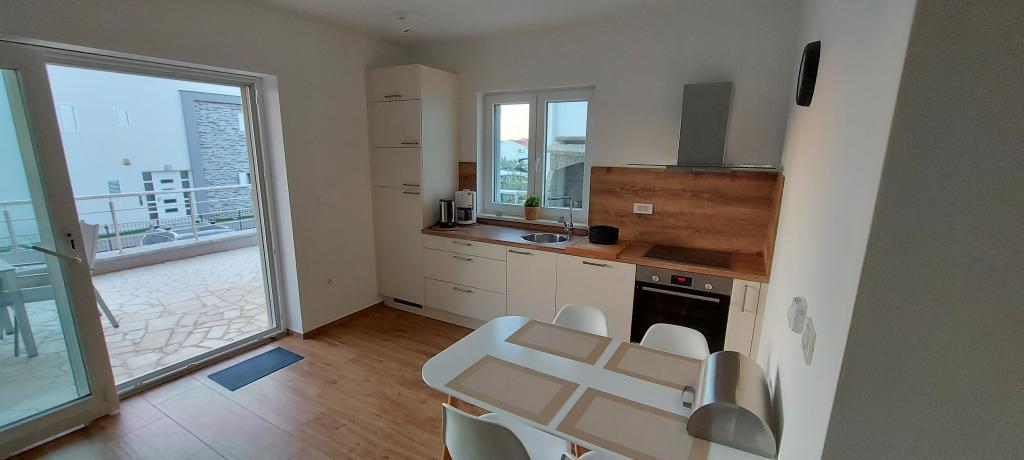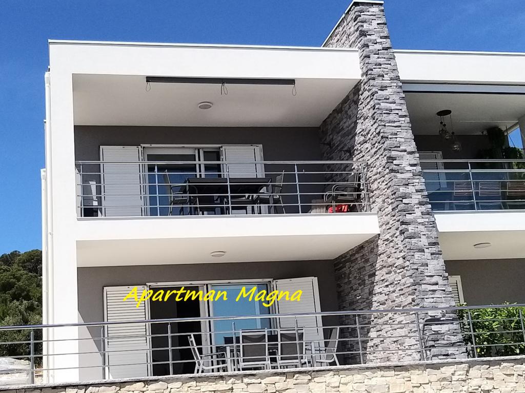 Lejlighed "MAGNA" er beliggende i umiddelbar nærhed af byens strand, 1000 m fra centrum af byen og tilbyder en smuk udsigt over havet. Lejligheden har et areal på 60 m2, har to soveværelser, der kan sove op til 5 voksne. Lejligheden ligger i stueetagen (angivet på billedet), og gæsterne har adgang til en terrasse med grill. Parkering er foran huset og er inkluderet i prisen. Kæledyr er ikke tilladt.