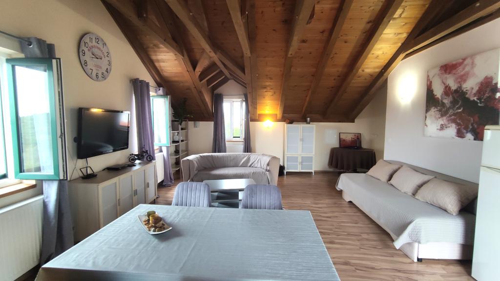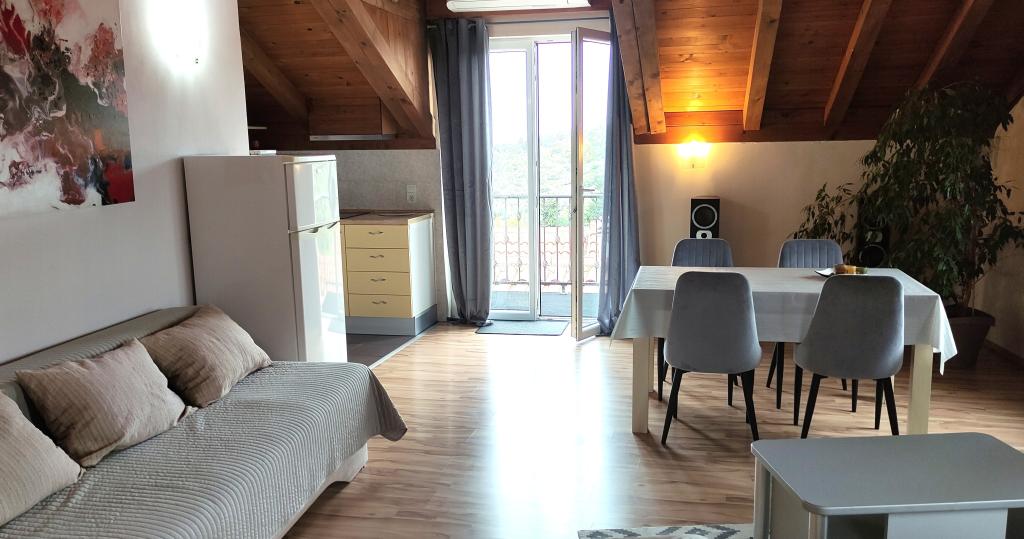 Lejlighed Panorama Natal er beliggende i den rolige gamle del af Murter. Lejligheden er på 65 m2. Stor stue/køkken, soveværelse, toilet/bruser, balkon, aircondition. Balkonen har en smuk panoramaudsigt over Kornati og mod centrum af Murter. Parkeringsplads til din bil omkring 50 m. Overdækket/Nastrsnica. Vi ligger 500 m fra Cigrada-stranden og 1800 m fra centrum.