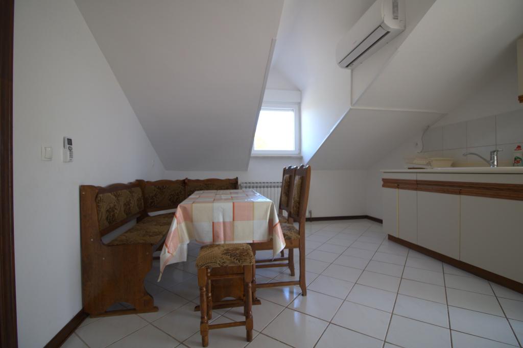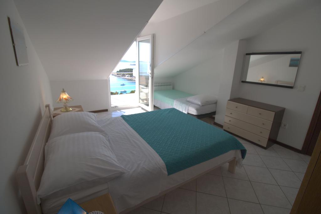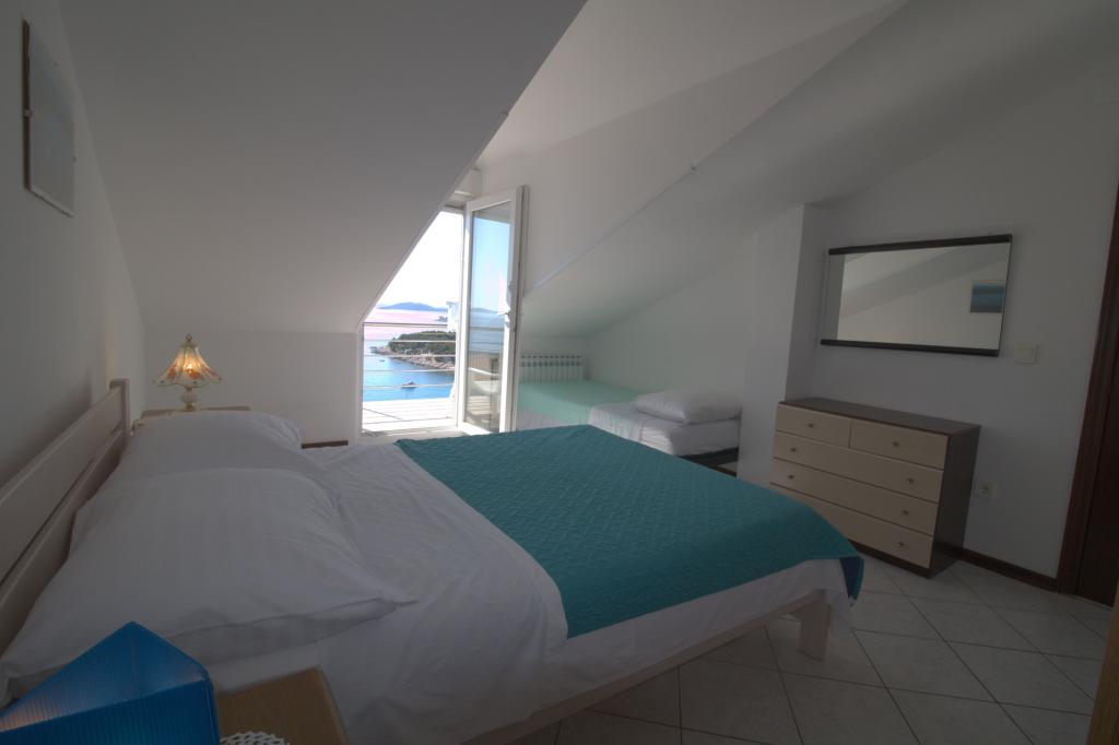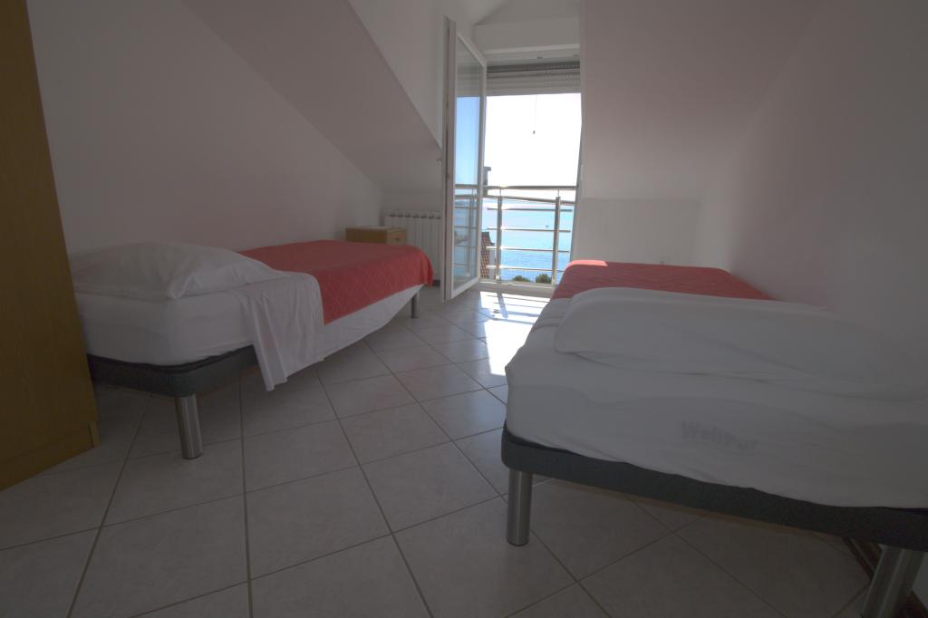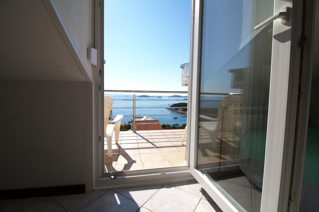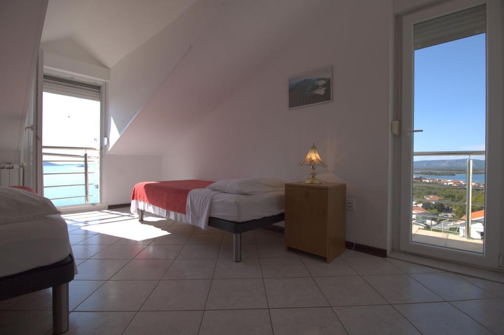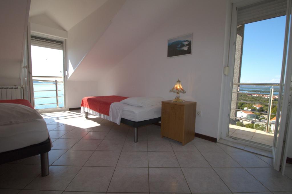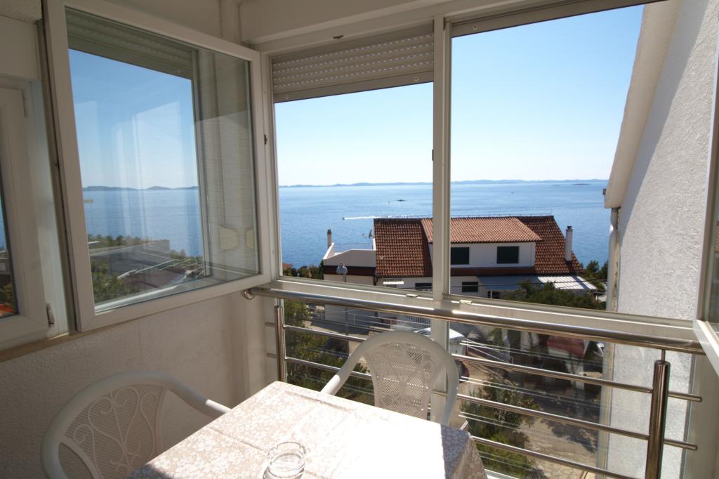 Lejligheden med en smuk udsigt over havet ligger i en fremragende beliggenhed kun 300 meter fra havet. Lejligheden har et areal på 75 m2. Det har to soveværelser, der kan sove 5 voksne. Det har en stue. Det har en ekstra seng til en person. Det har et badeværelse med bruser. Altanens/terrassens areal er 12 m2. Lejligheden ligger på anden sal i huset. Lejligheden er udstyret med TV, satellitmodtager, ovn. Parkering er inkluderet i prisen. Der er en udendørs grill, som kan bruges. Lejligheden ligger omkring 1000 m fra byens centrum og 300 m fra havet eller den første strand i Murter. Lejligheden har en smuk udsigt over havet, den sandede bugt Slanica og Kornati-øerne.