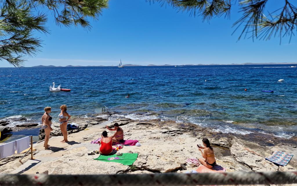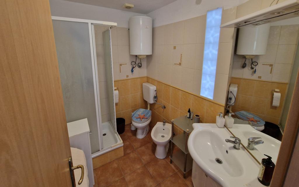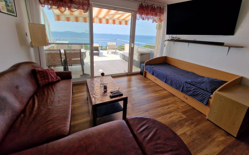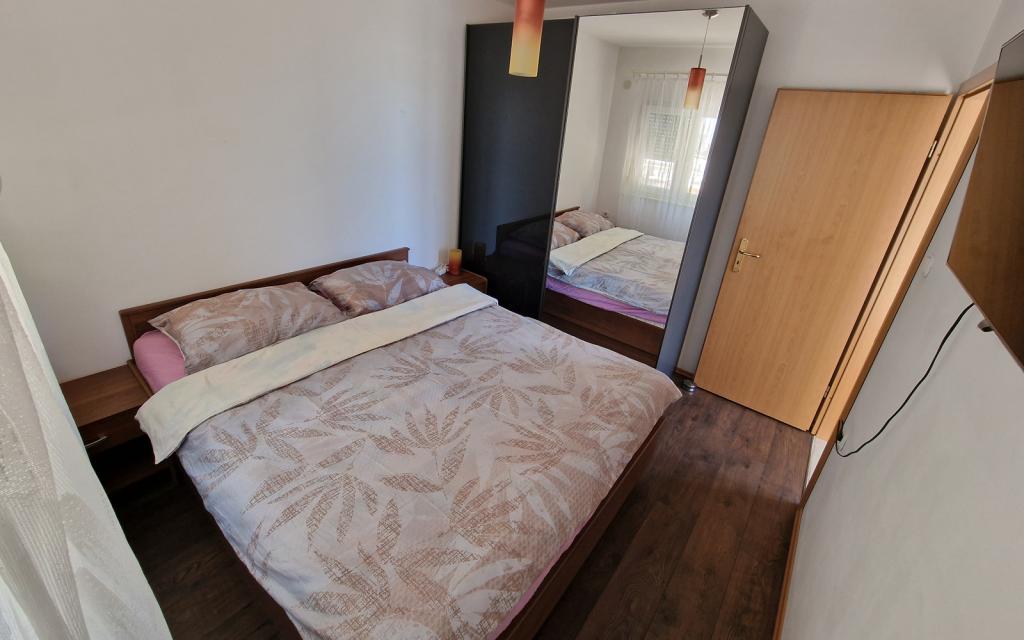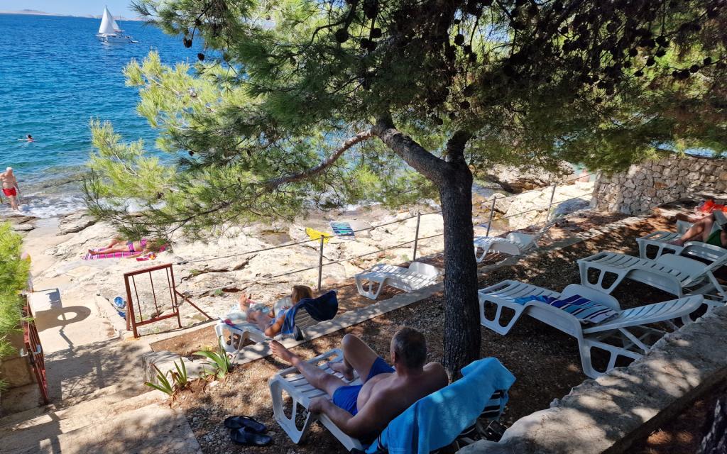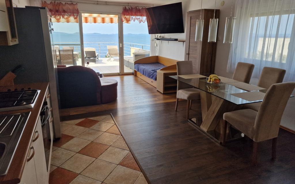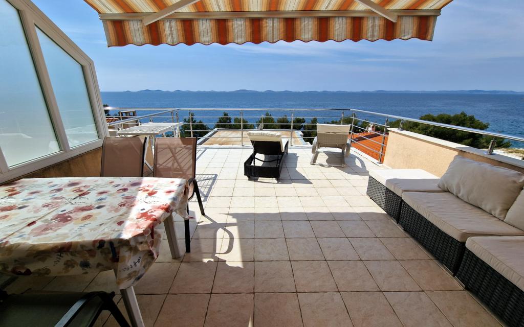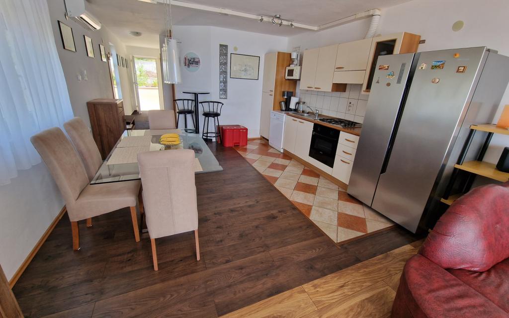G1 lejligheden ligger oven på overhuset på vestsiden. Det har et areal på 50 m2 med yderligere 20 m2 terrasse. Det er beregnet til et behageligt ophold på 2 til 3 personer med en stor terrasse og panoramaudsigt over Kornati og det åbne hav mellem Kornati og Murter. Lejligheden har et soveværelse og et badeværelse med toilet, og et stort fællesareal visuelt helt åbent til terrassen og panoramaudsigten over havet. I dette fællesrum er der køkken med spisestue og stue. Lejligheden er udstyret med kraftig aircondition, WiFi internet, satellitprogrammer og streamingtjeneste (netflix). Ved siden af lejligheden er der en parkeringsplads og et skyggefuldt område ved siden af stranden med liggestole.