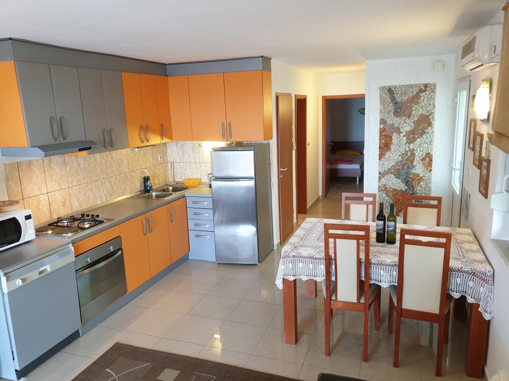 Til din perfekte ferie tilbyder vi dig to smukt dekorerede og fuldt udstyrede lejligheder (aircondition, wi-fi, satellit-tv gratis) med et / to soveværelser, køkken, badeværelse, stue og naturligvis den uundgåelige store terrasse, der tilbyder en smuk udsigt over havet og Kornati øhav. Faciliteten ligger i en rolig del af byen, en blindgyde og er derfor ideel til gæster, der leder efter fred og ro, og for familier med børn. En stor udendørs grill er tilgængelig for grillelskere. 20 m fra huset på tværs af gaden er der en sten og klippestrand. Du kan finde frelse fra sommervarmen i den naturlige skygge af en fyrreskov og forfriskning undtagen i det smukke klare hav og under et solbad udendørs bruser. Inden for 10 minutters gang er der en sandstrand Slanica og stranden Čigrađa, der tilbyder yderligere faciliteter såsom restauranter, vandland, barer og lignende. Velkommen!