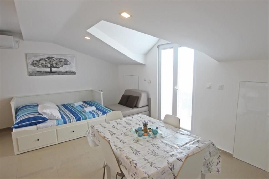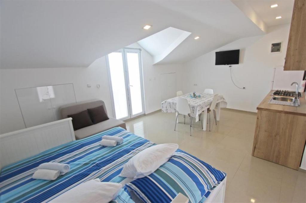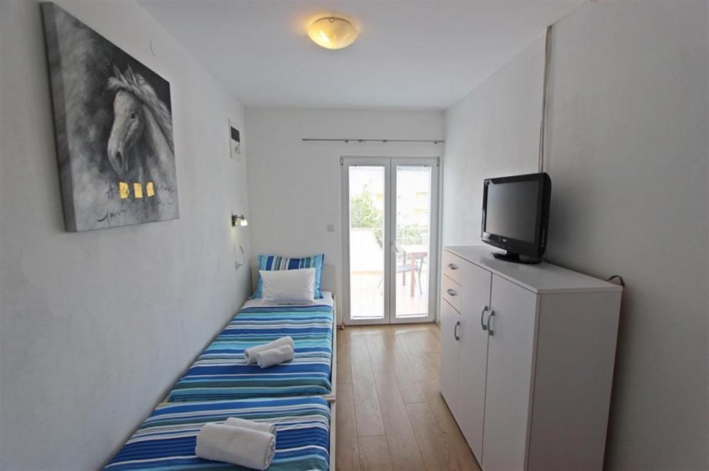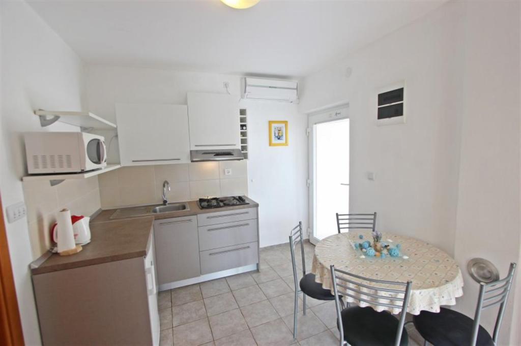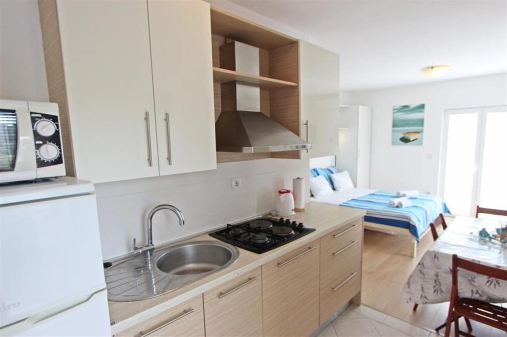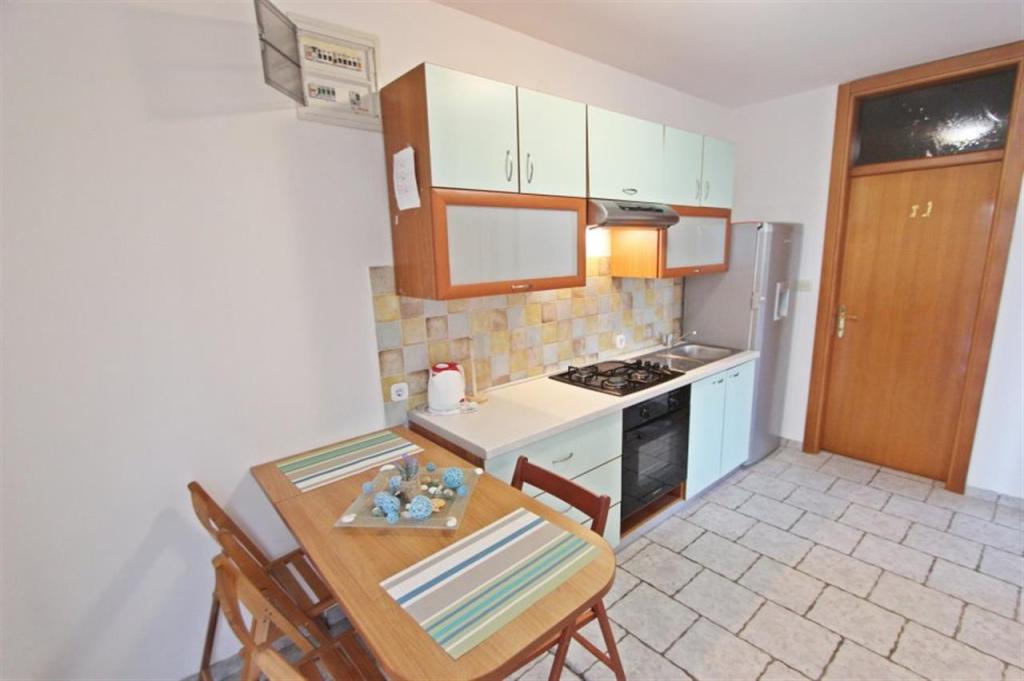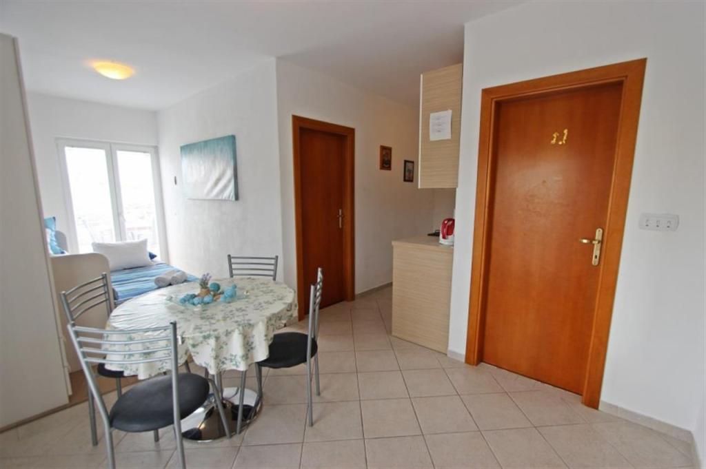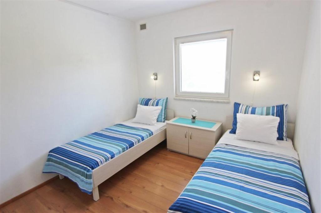 Lejligheder til fire personer 2 + 2 eller studielejligheder 2 + 1. De består af et soveværelse (en dobbeltseng) og et værelse med to enkeltsenge (mål 200x90) eller et soveværelse og en seng i stuen, mens studielejlighederne består af en dobbeltseng med ekstra seng, køkken, badeværelse og stor terrasse (15m2 / 18m2). I stueetagen er der også et værelse med en vaskemaskine, som gæsterne kan bruge. Lejlighederne er udstyret med TV og aircondition, wi-fi, mikroovn og køleskab med fryser. Foran lejligheden har vi en udendørs grill, som gæsterne kan bruge til enhver tid. Parkering er tilvejebragt og placeret i gården. Afstanden til den første strand og butikker er 250 m, mens centrum er 1 km væk