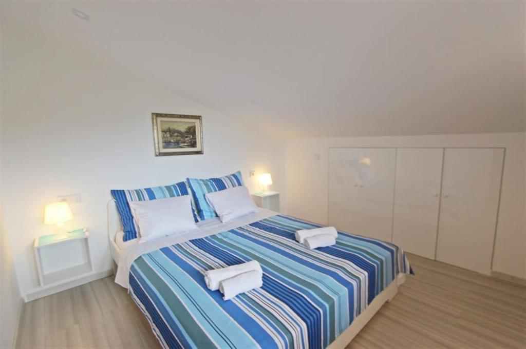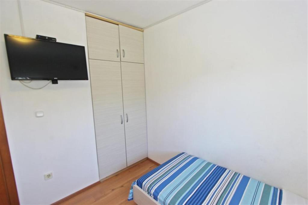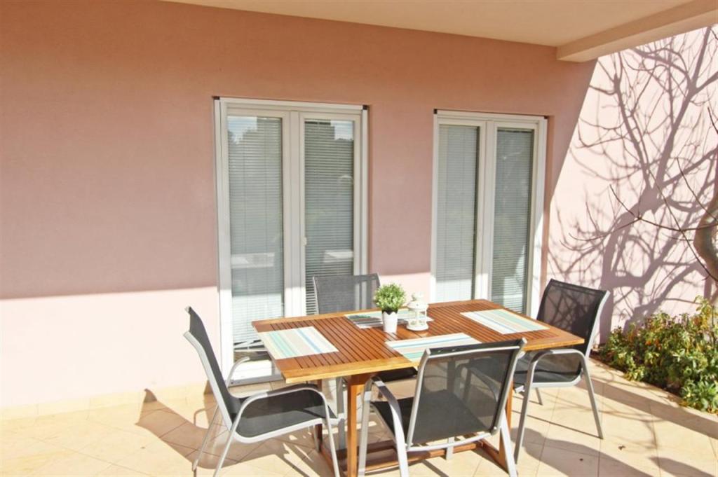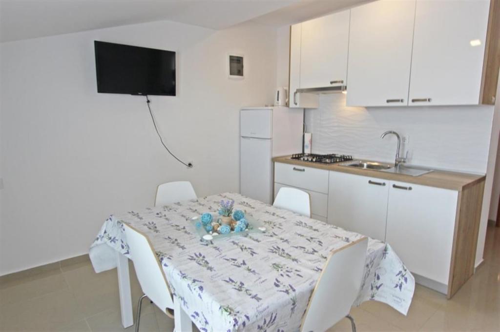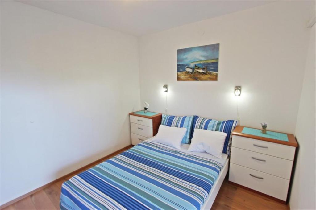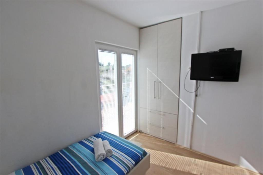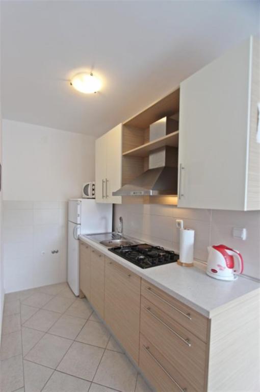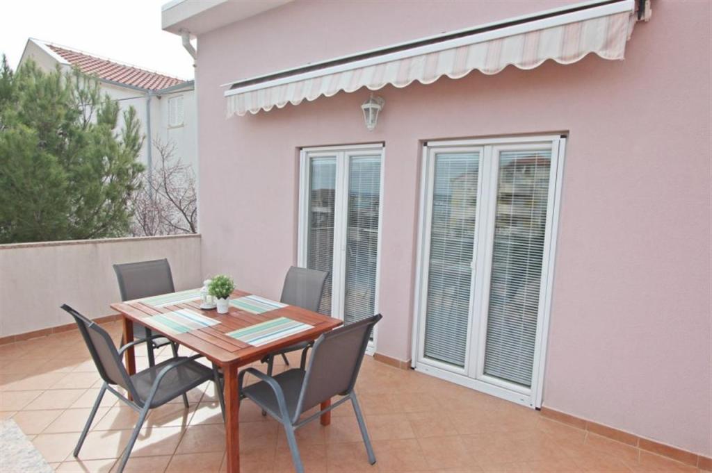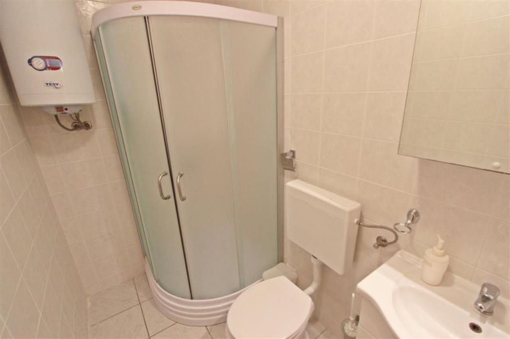 Lejligheder til fire personer 2 + 2 eller studielejligheder 2 + 1. De består af et soveværelse (en dobbeltseng) og et værelse med to enkeltsenge (mål 200x90) eller et soveværelse og en seng i stuen, mens studielejlighederne består af en dobbeltseng med ekstra seng, køkken, badeværelse og stor terrasse (15m2 / 18m2). I stueetagen er der også et værelse med en vaskemaskine, som gæsterne kan bruge. Lejlighederne er udstyret med TV og aircondition, wi-fi, mikroovn og køleskab med fryser. Foran lejligheden har vi en udendørs grill, som gæsterne kan bruge til enhver tid. Parkering er tilvejebragt og placeret i gården. Afstanden til den første strand og butikker er 250 m, mens centrum er 1 km væk