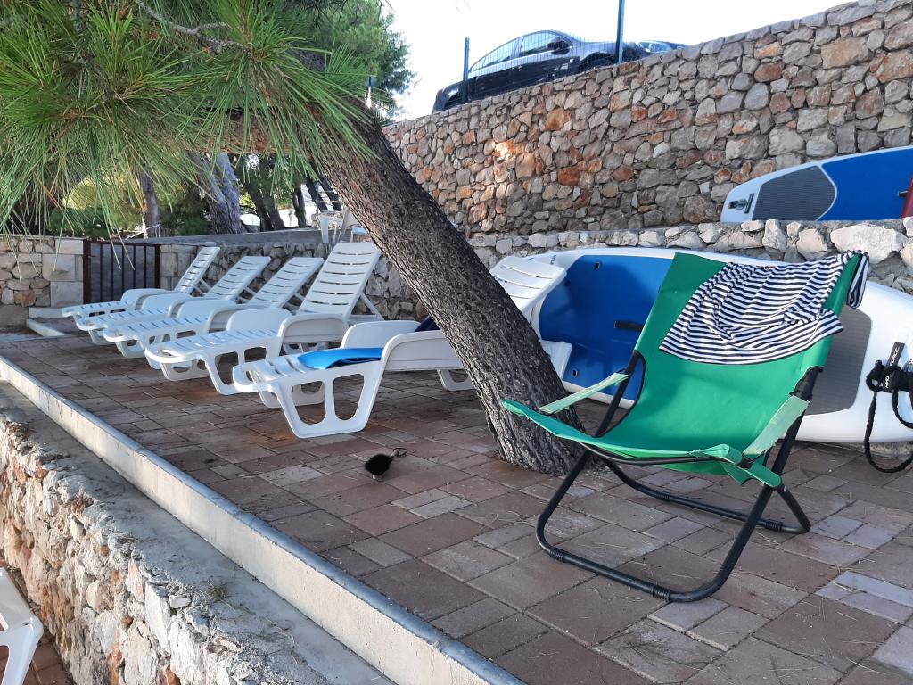 Vi tilbyder også liggestole på den anlagte strand i skyggen af fyrreskoven.