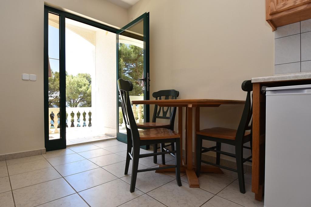 Golden Shell Apartments ligger lige ved havet på gaden Pod Raduč. Denne placering er den smukkeste og mest populære på hele øen Murter. Den klippestrand ligger foran huset, og i nærheden ligger sandstrandene i Slanica og Čigrađa. Området er roligt med lidt trafik. Foran huset kan gæsterne nyde svømning, solbadning og afslapning i skyggen af fyrretræer. Murters centrum ligger omkring 2 km væk, men det kan nemt nås med en behagelig gåtur gennem det grønne område omkring Slanica-stranden. Der er en stor parkeringsplads foran huset.