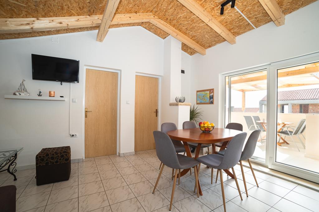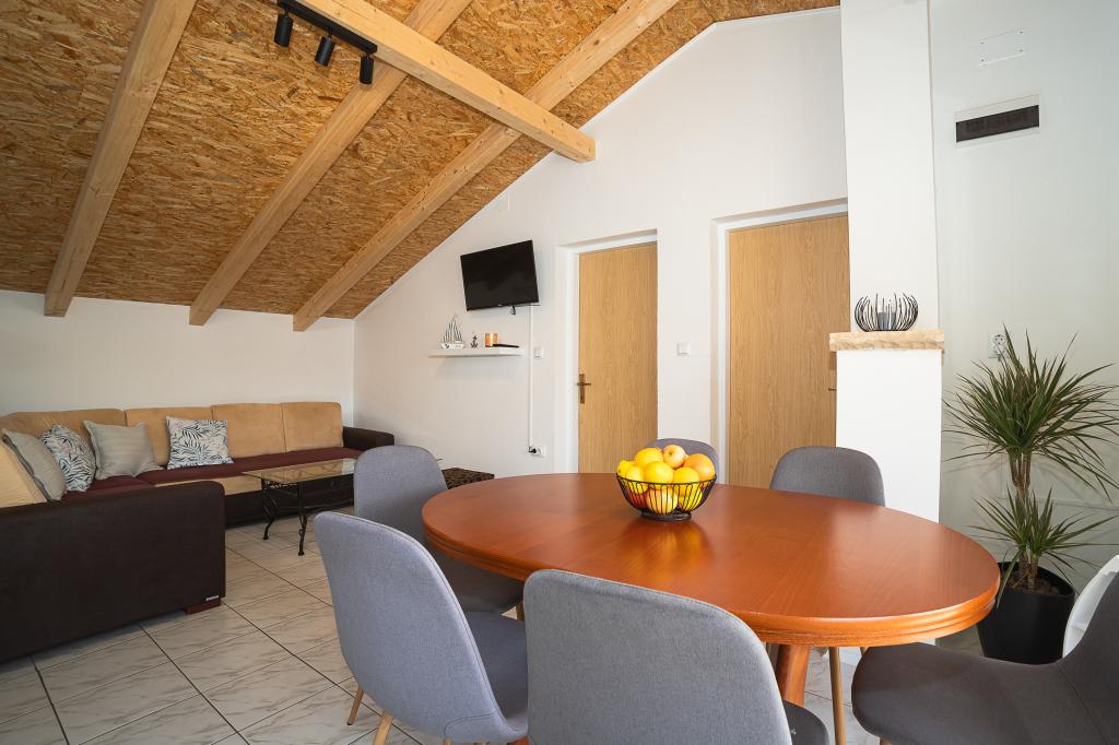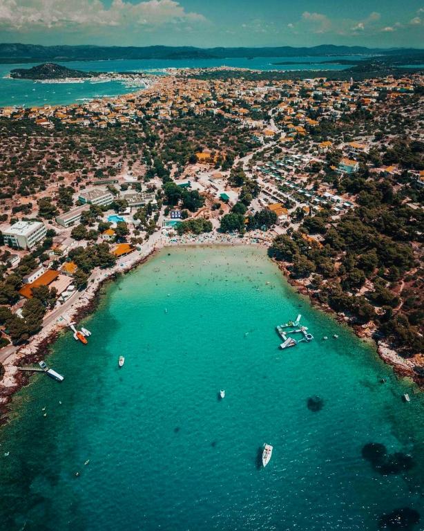 Vi tilbyder komfortable lejligheder til 4 til 6 personer. Hver lejlighed har et fuldt udstyret køkken, badeværelse, stue, 2 soveværelser og en privat balkon. Til din rådighed er en stor have med have, grill, bord og stole og opbevaring af cykler eller klapvogne. Lejlighederne ligger kun 150 meter fra en af de smukkeste strande ved Adriaterhavet, og i Murter kan du finde alt hvad du behøver for en behagelig ferie. Der er mange restauranter og caféer, et par supermarkeder, bagerier, slagtere, markeder, klinikker, apoteker, posthus, bank, pengeautomater, tankstation, kirke, biograf, marina, dykkerklubber, sportsbaner og legepladser for børn. Du kan leje en båd, scooter, knallert eller cykel. Der tilbydes også bådture til Kornati National Park, og Krka National Park ligger i nærheden. Vi anbefaler også flere udsigtspunkter med en smuk udsigt over stedet, de omkringliggende øer og Kornati. Lejlighederne "Hojsak" ligger ved indgangen til Murter. De er beliggende mellem stranden "Čigrađa", bakken "Raduč" og den gamle del af Murter, "Selo".