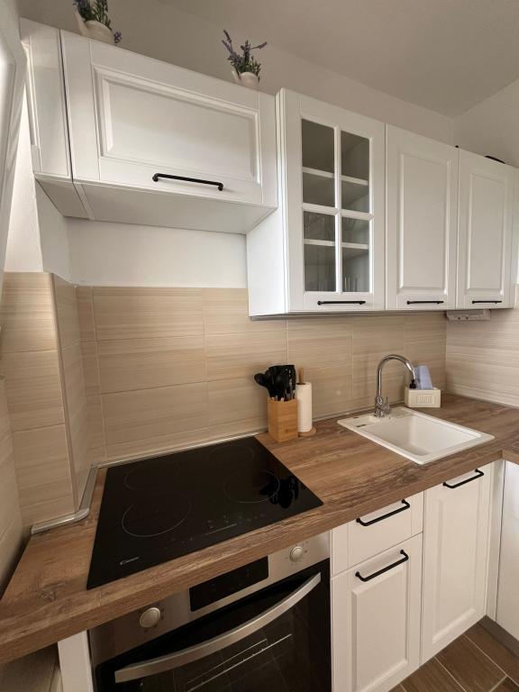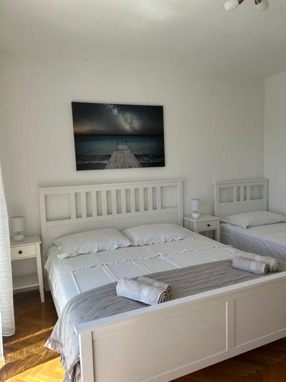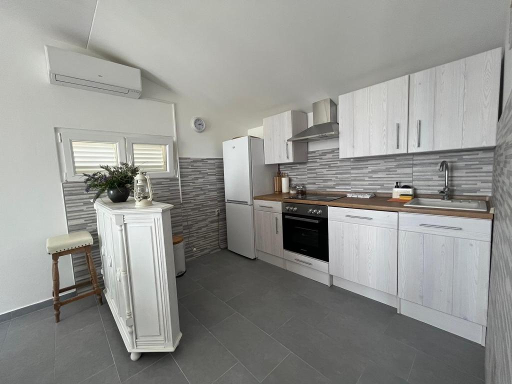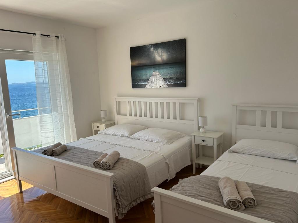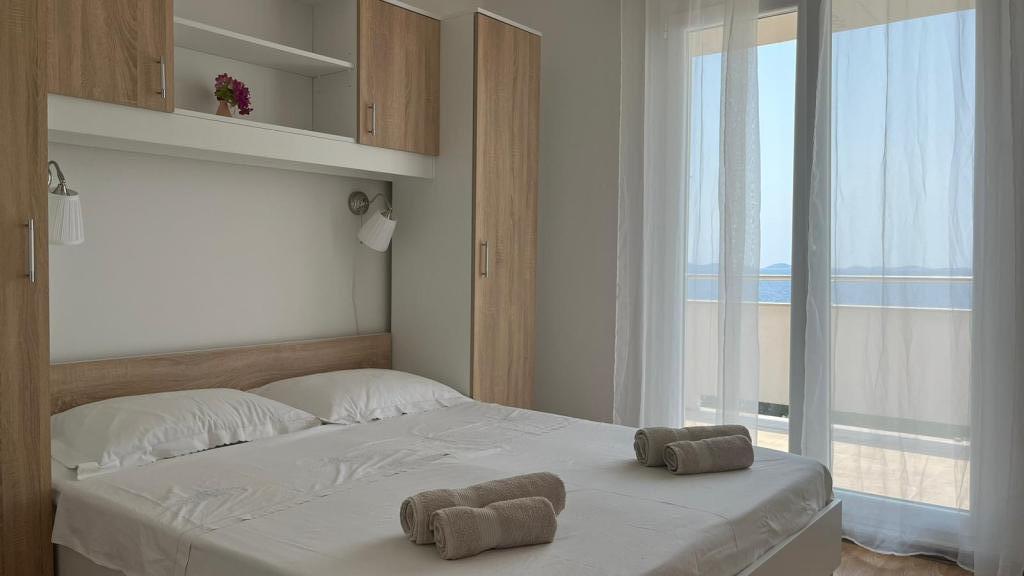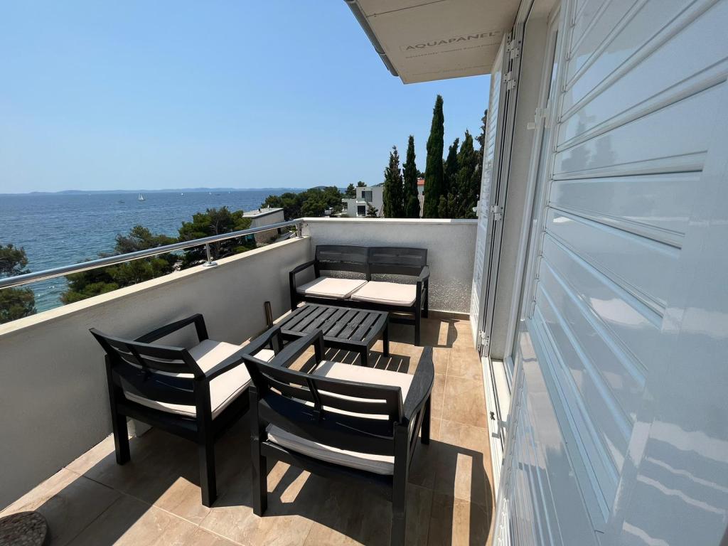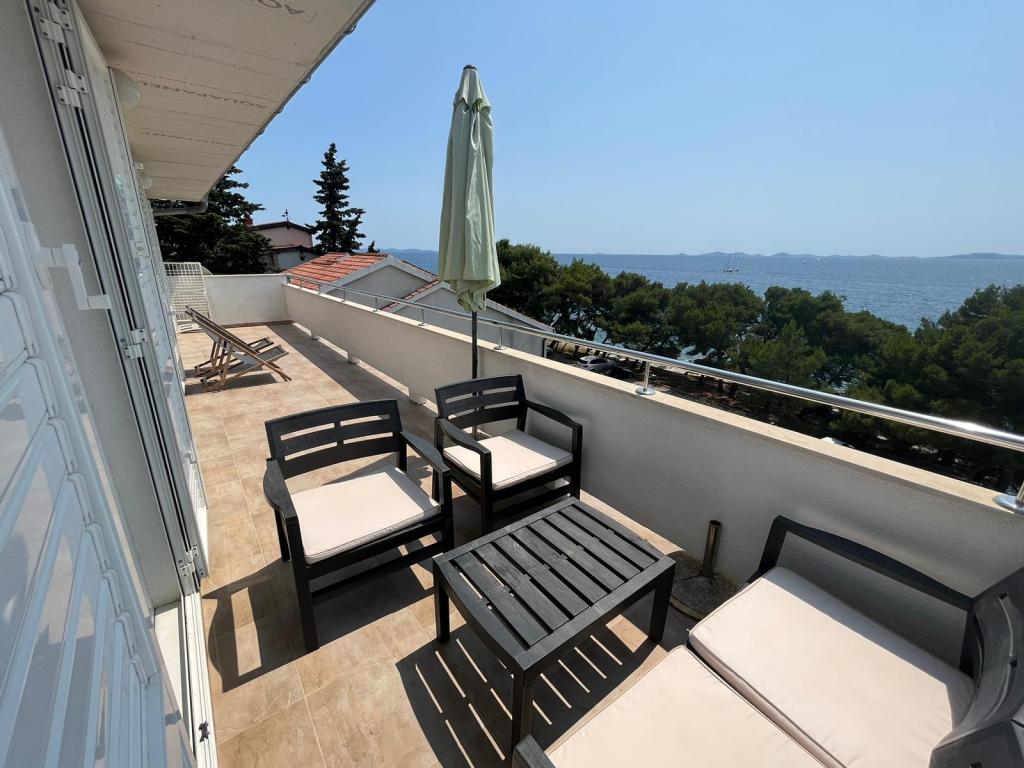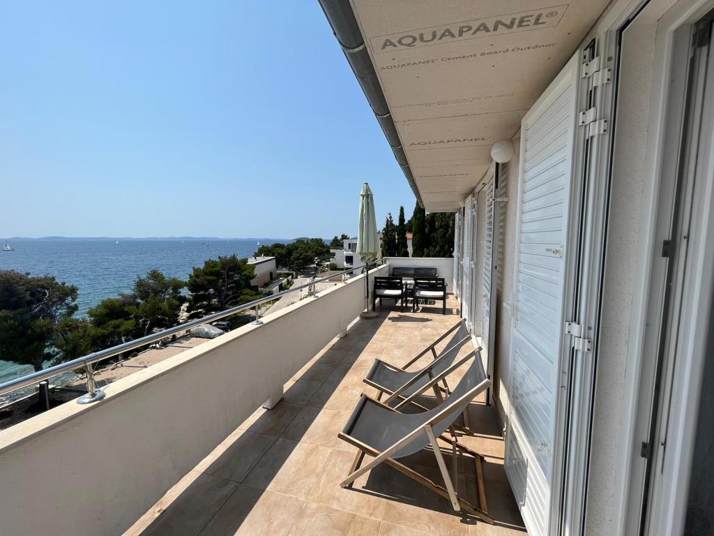 Fuldt udstyrede lejligheder i et privat hus, 1. række til havet med udsigt over Kornati Nationalpark. Vi er beliggende i et roligt område nær den berømte sandstrand Slanica, 10 minutters gang fra centrum.