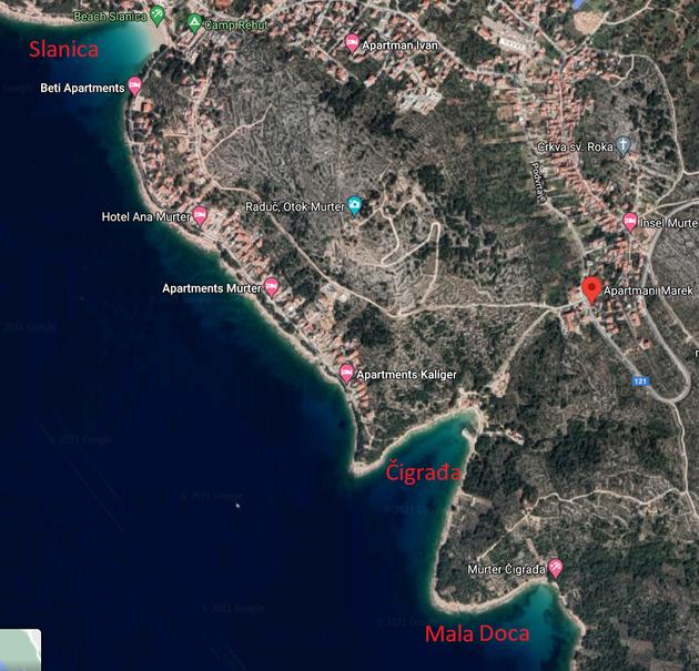 Lejligheder Marek - lejligheder til din ferie. Lejlighederne er fuldt udstyrede og har aircondition. Foran lejligheden er der store terrasser med udsigt over havet og den smukke Kornati Nationalpark. I gården er der mulighed for at parkere en bil og bruge grillen. Stranden og alle faciliteter til en komplet ferie er i umiddelbar nærhed. Kontakt os med tillid! Lejligheder Marek.