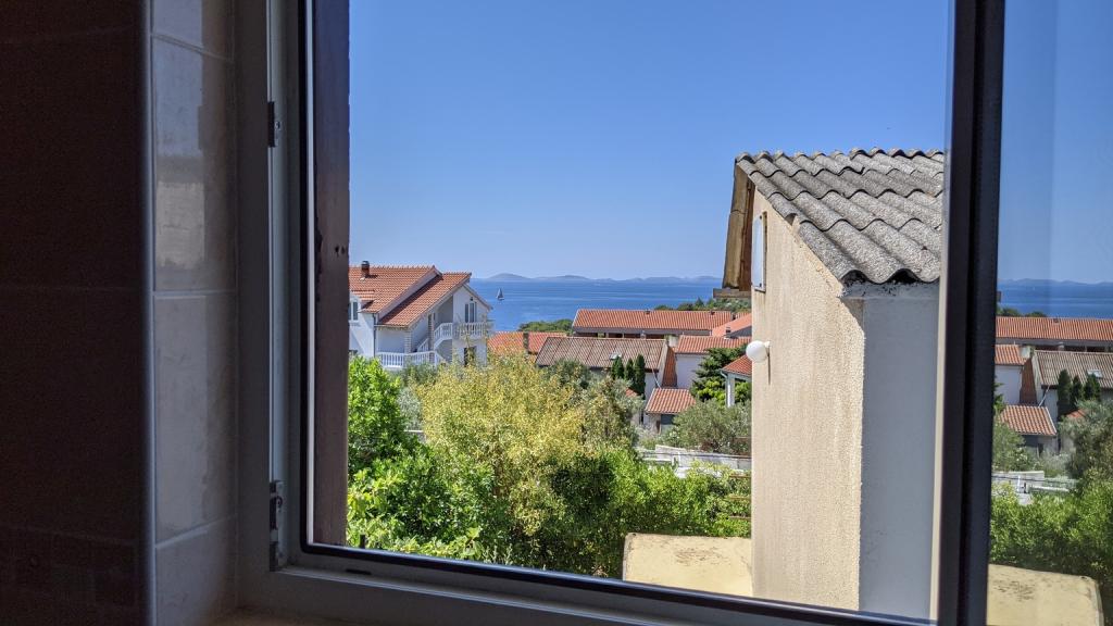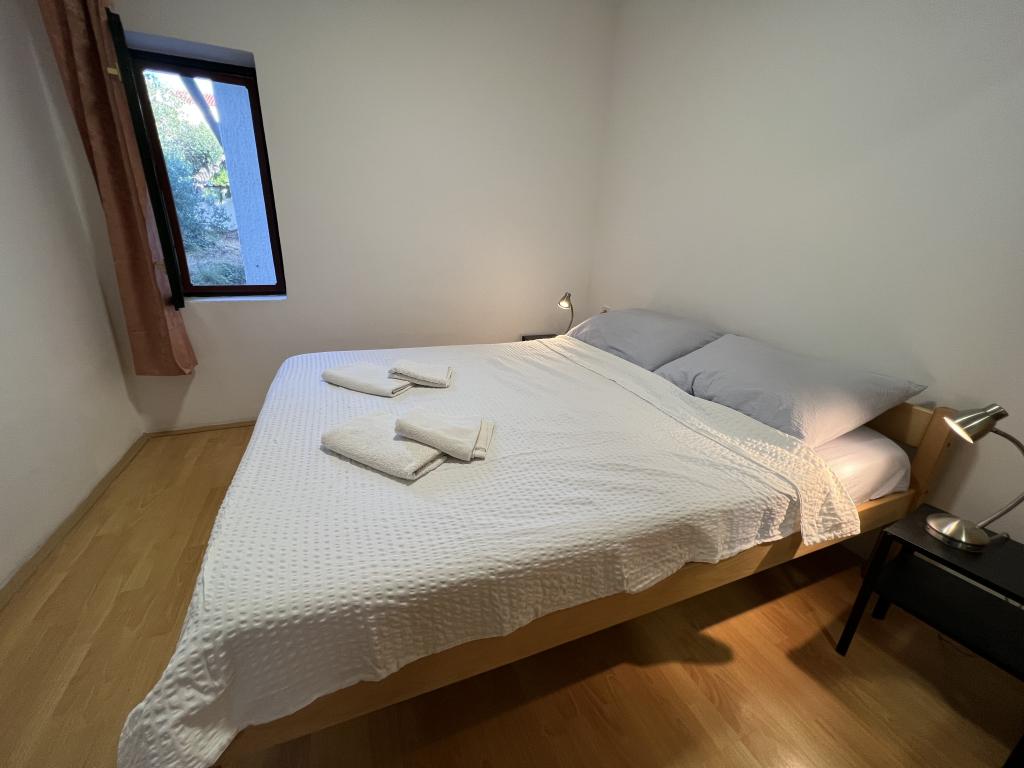 En dejlig, men beskeden og ren lejlighed med fremragende beliggenhed tæt på Sigrada strand (10 min) og flere fremragende restauranter, som kan nås til fods gennem den storslåede gamle by Murter. Hvis du foretrækker en bolig væk fra det travle natteliv, men i gåafstand til dagligvarer, restauranter og flere strande og små byer, er dette et fremragende valg. Vi boede i en uge med vores to teenagedrenge, og de nød især stranden og vores sen eftermiddag/tidlige aften socialisering på den store veranda med havudsigt. En aften inviterede indehaveren Ivan os til en meget dejlig middag, hvortil han lavede en speciel risotto baseret på blækfisk. Vi anbefaler virkelig Marek Apartments, og vi ser frem til at komme tilbage!