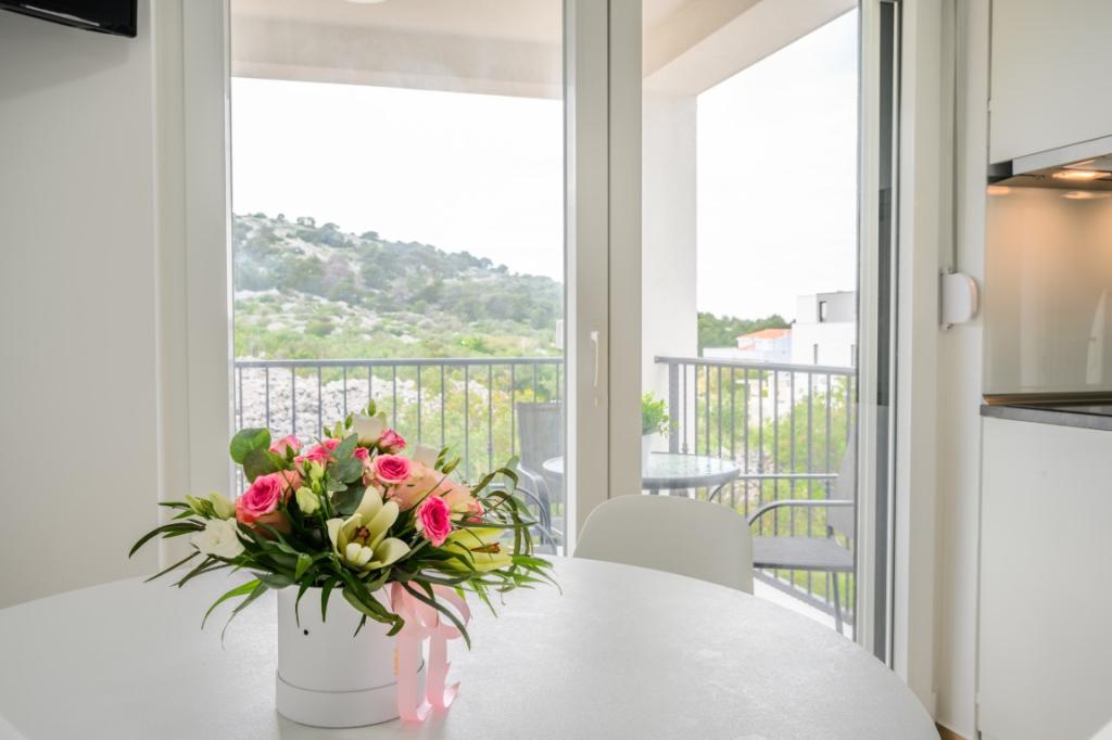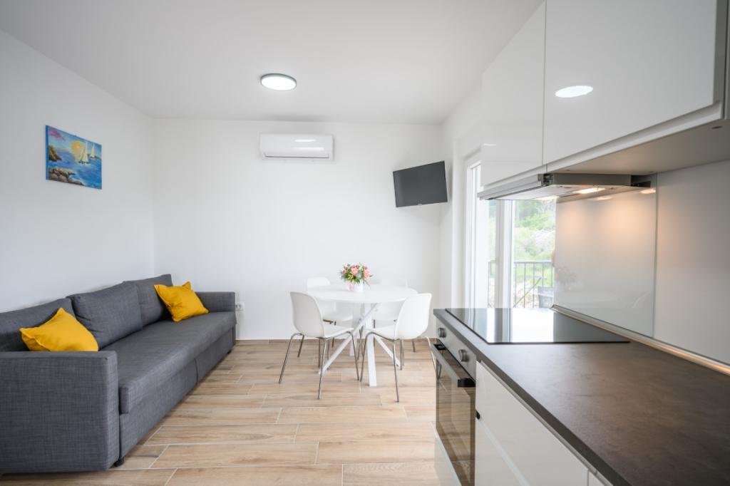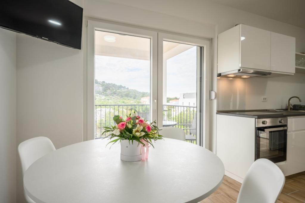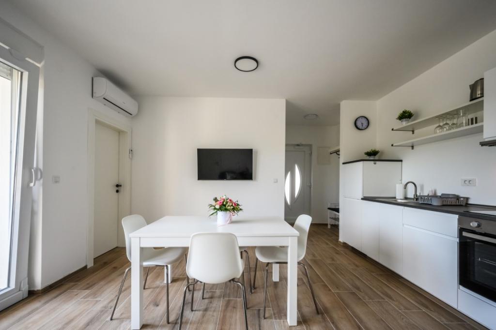 Apartments Mate er moderne udstyret med moderne møbler og er beliggende i et roligt område i Murter nær Podvrške-stranden (5 minutters gang) og Luke-stranden (5 minutters gang). Hver lejlighed har sin egen terrasse, og på husets tag er der fælles terrasse med liggestole og gasgrill.