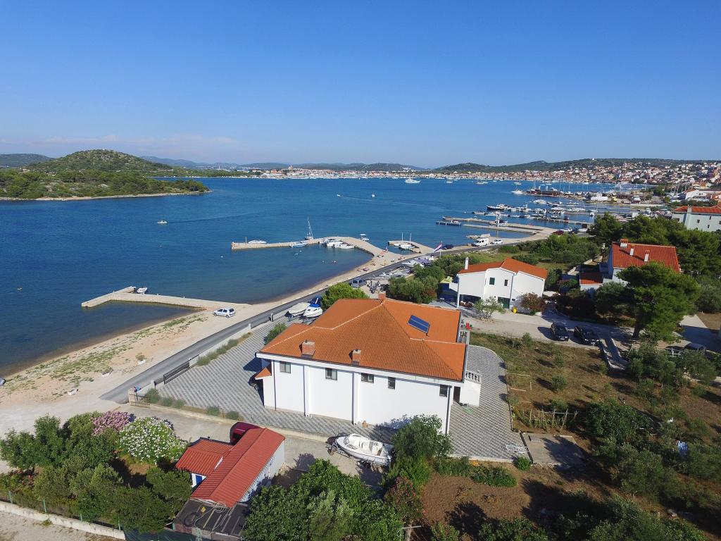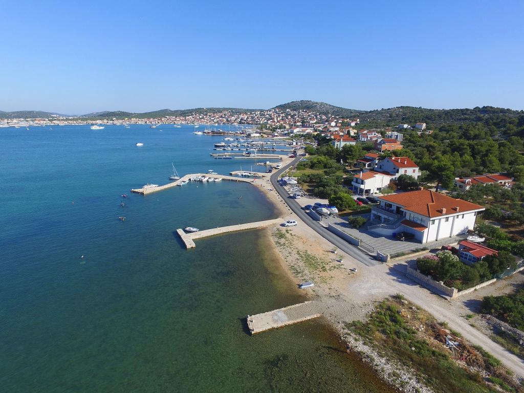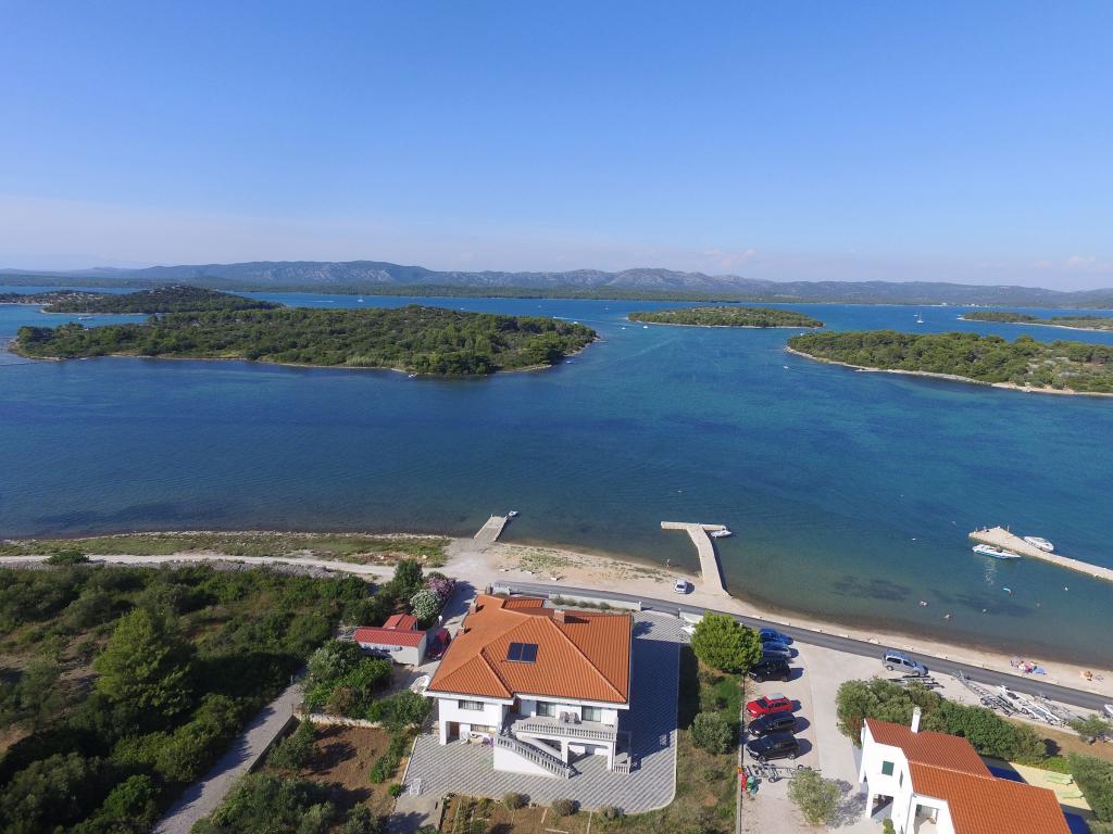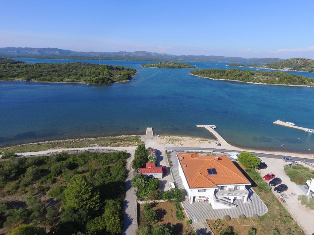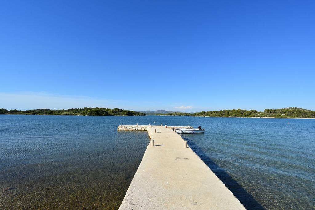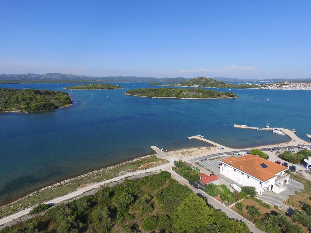 Lejlighederne i Milano ligger direkte ved havet. Huset ligger i en stor olivenlund for enden af gaden, så beliggenheden er rolig og med lidt trafik. Vejen fortsætter langs strandpromenaden rundt om øen, perfekt til afslappende gåture og at finde et afsides sted at svømme. Foran huset er der en mole, hvor man kan fortøje en båd. Ved kysten kan gæsterne nyde svømning og solbadning. Lejlighederne har udsigt over øerne foran Murter. Murter centrum starter omkring 1 km fra huset, hvor du finder butikker og restauranter.