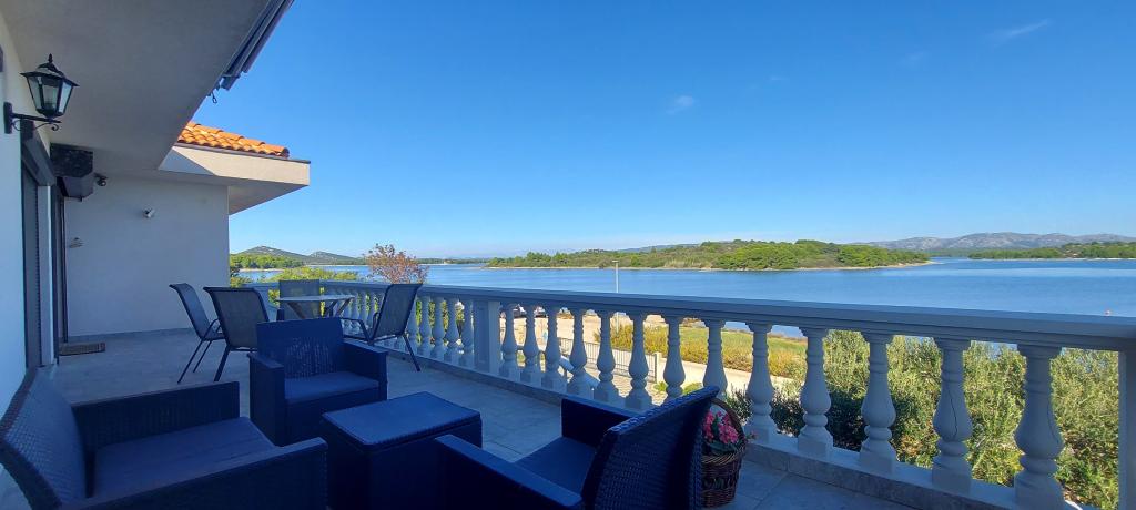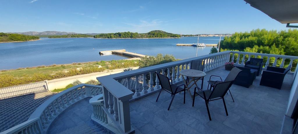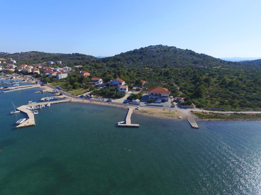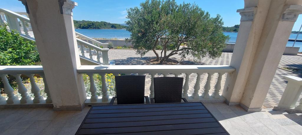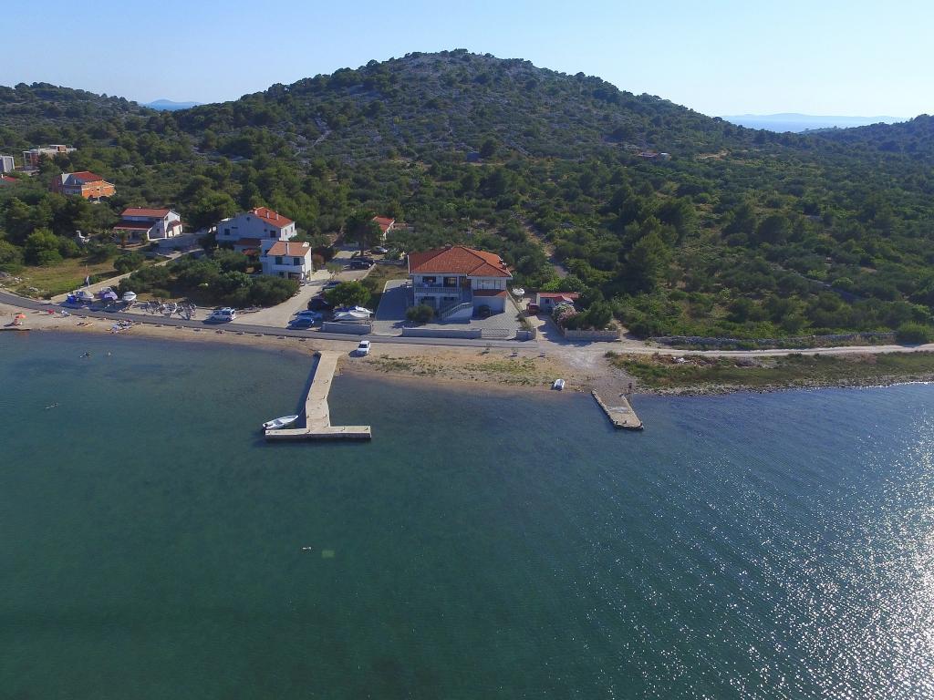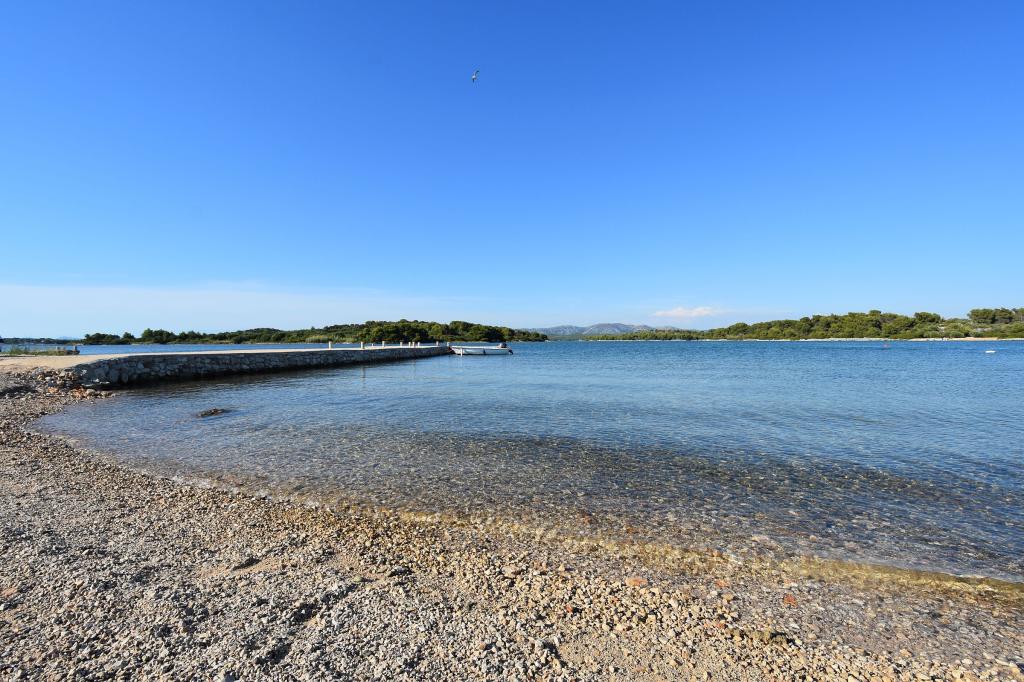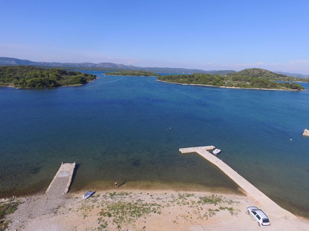 Lejlighederne i Milano ligger direkte ved havet. Huset ligger i en stor olivenlund for enden af gaden, så beliggenheden er rolig og med lidt trafik. Vejen fortsætter langs strandpromenaden rundt om øen, perfekt til afslappende gåture og at finde et afsides sted at svømme. Foran huset er der en mole, hvor man kan fortøje en båd. Ved kysten kan gæsterne nyde svømning og solbadning. Lejlighederne har udsigt over øerne foran Murter. Murter centrum starter omkring 1 km fra huset, hvor du finder butikker og restauranter.