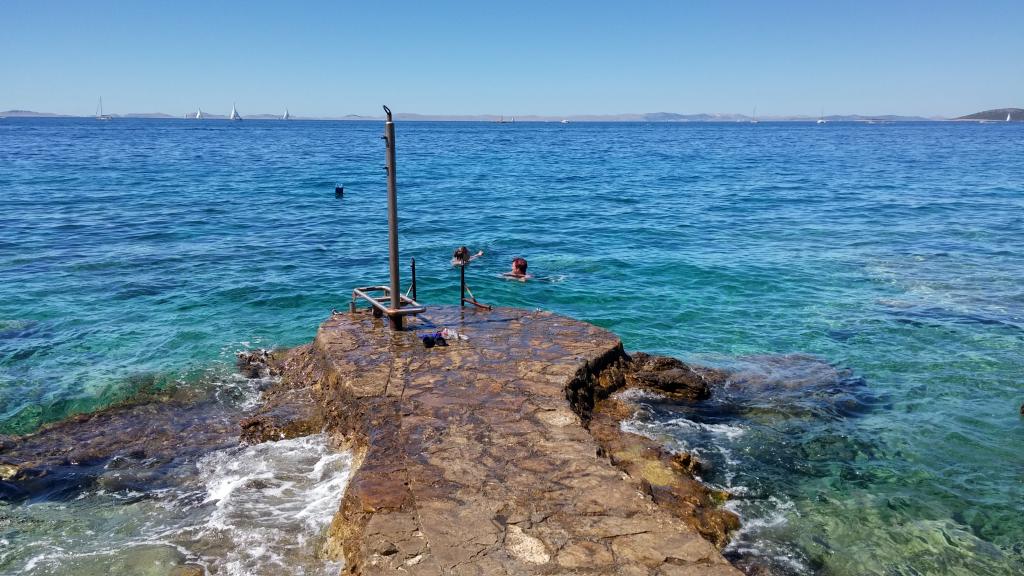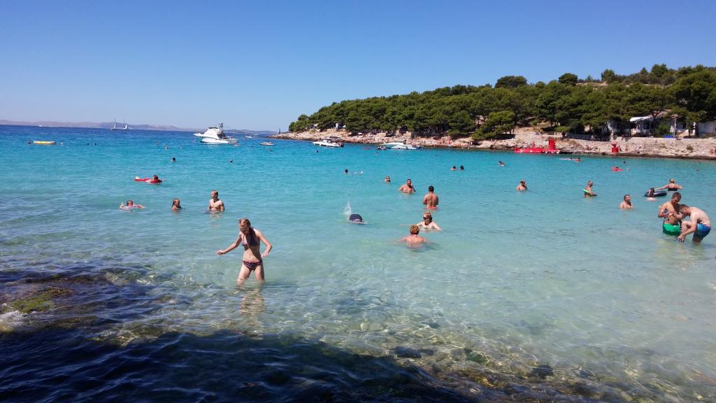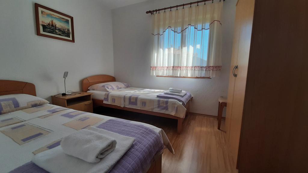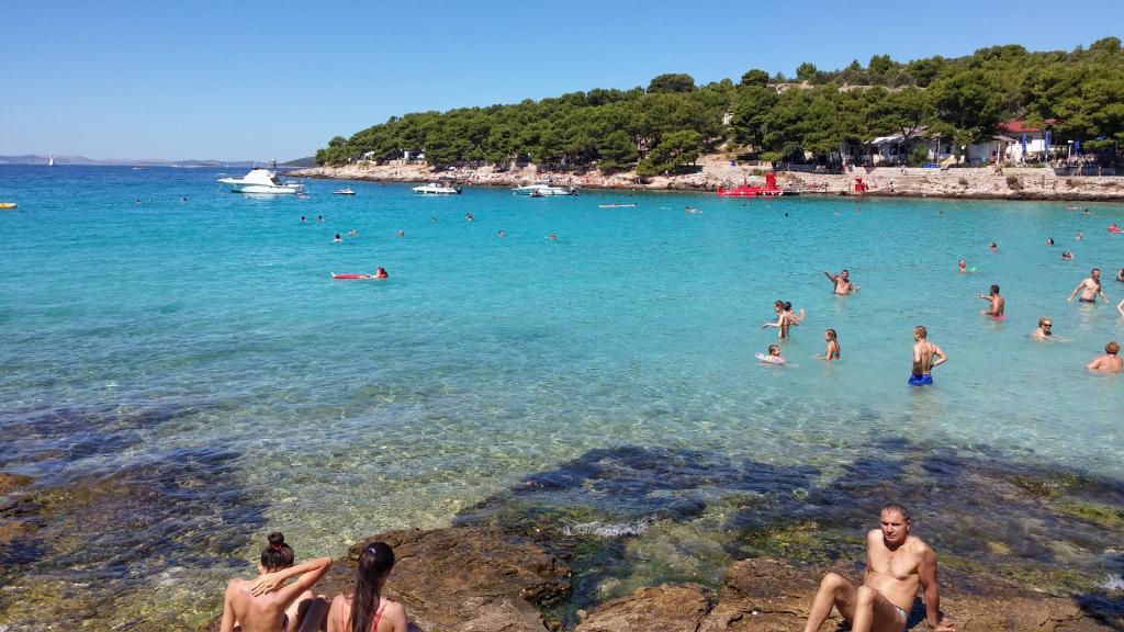 Lejlighed med flot havudsigt beliggende i en førsteklasses beliggenhed kun 40 meter fra havet med to private sikrede parkeringspladser inkluderet. Lejligheden har tre soveværelser, der kan sove 6 voksne 2 ekstra senge til to personer. Lejligheden er udstyret med tv, aircondition, gratis WiFi, ovn og grill. Altan / terrasse er 20m2 med en smuk udsigt over havet, solnedgange, Kornati øerne og fyrtårn. Det er kun 4 minutters gang til stranden Brine, 12 minutters gang til stranden Podvršci, 15 minutters gang til stranden Čigrađa og 5 minutters gang til butikkerne. Fra byens centrum er 20 minutters gang.