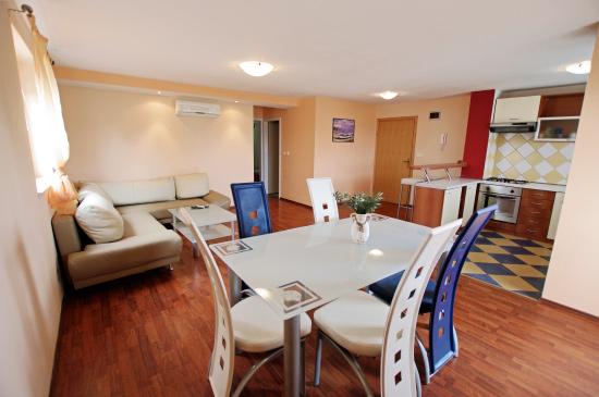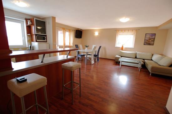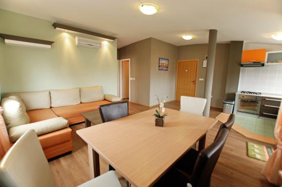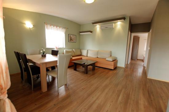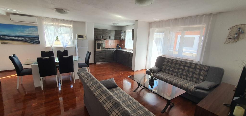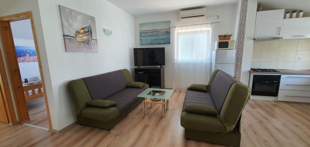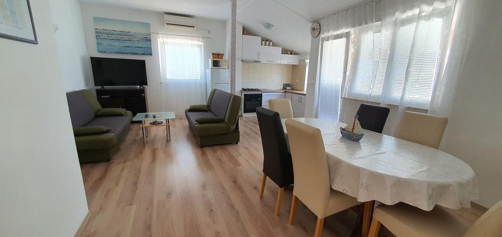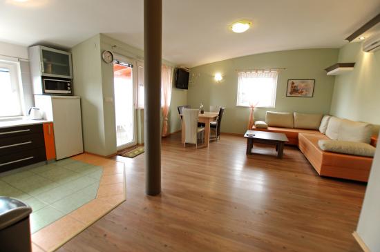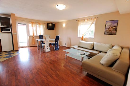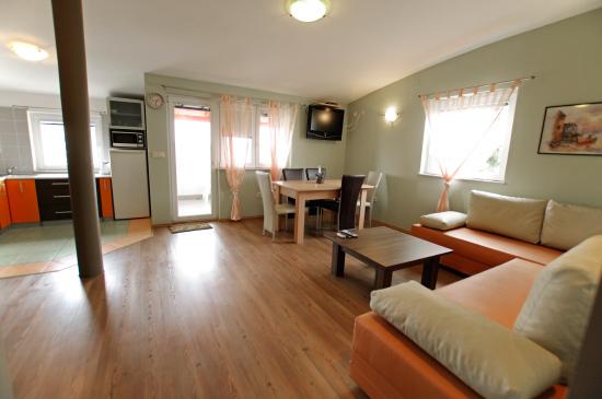 Lejligheden er veludstyret, ren, rummelig og komfortabel til 4 personer. Donačini er meget venlige med konkrete og nyttige oplysninger. Skøn terrasse med udsigt, som kan nydes hele dagen. God beliggenhed, tæt på byen.