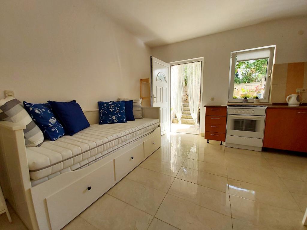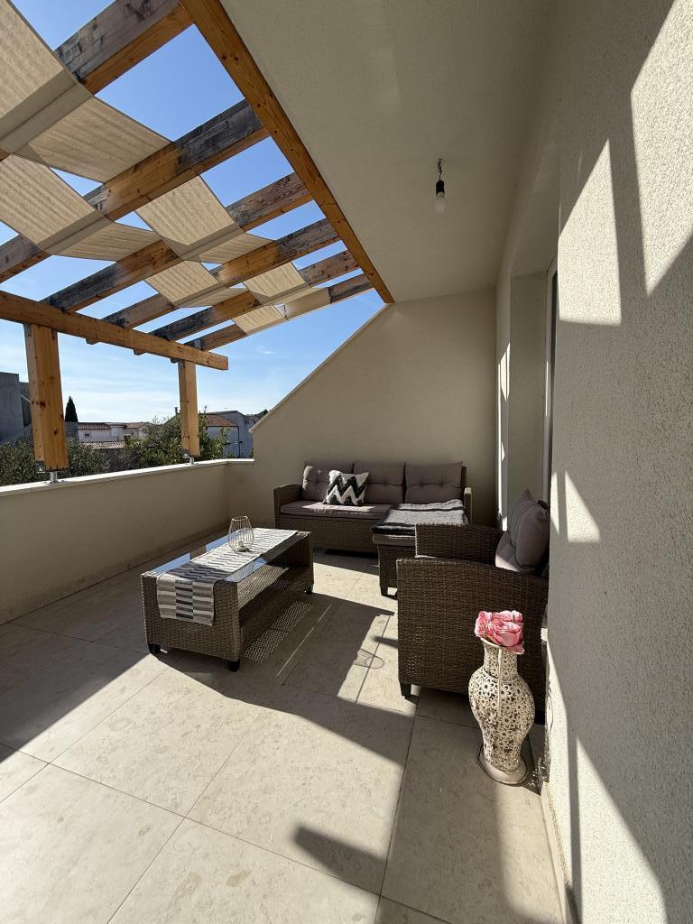 Studiolejlighed med en terrasse på 12m2. Lejligheden er designet til 2 personer. Stor dobbeltseng, fuldt udstyret køkken, spisebord, badeværelse. Terrasse og spisebord. Sikker parkeringsplads foran lejligheden til et køretøj. Tæt på stranden. Lejligheden ligger 5 minutters gang fra stranden Slanica og 7 minutters gang fra Murter centrum.