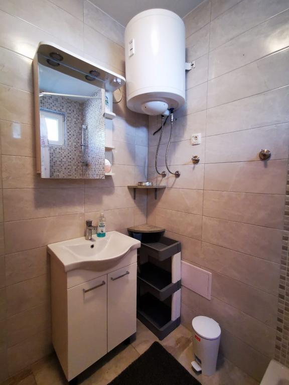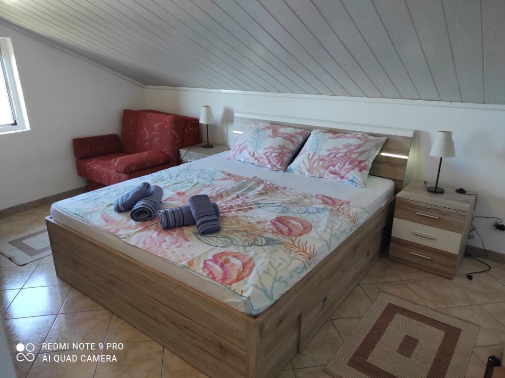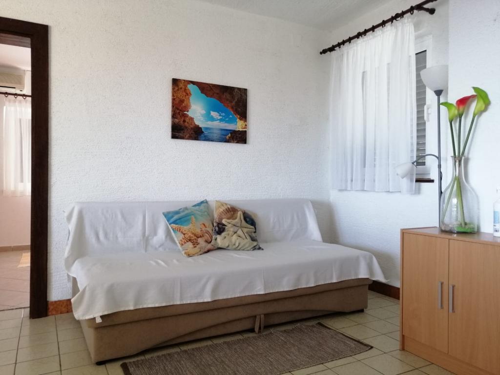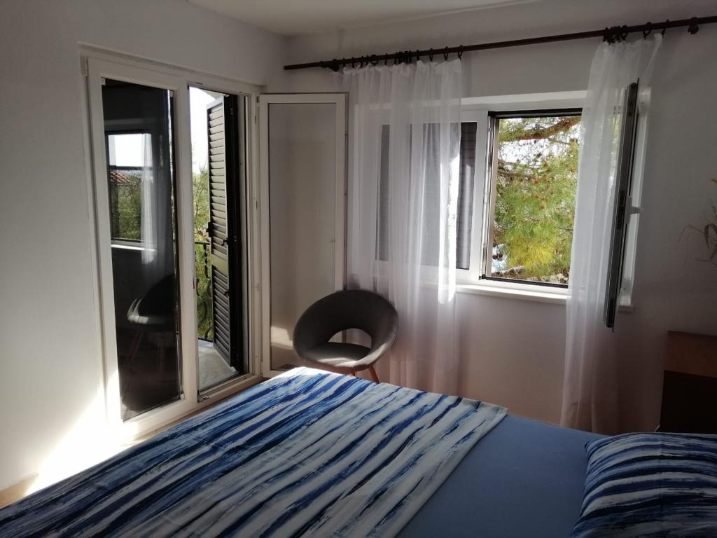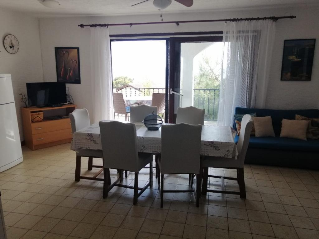 Fuldt og moderne møblerede lejligheder i et roligt område på øen Murter, beliggende 2 række til havet. Ejendommen ligger 5 minutters gang fra den største strand i Slanica og 20 minutters gang til centrum. Under huset er der en klippestrand, men også en bugt med små småsten til børn. Fra ejendommens terrasse kan du se Kornati National Park.