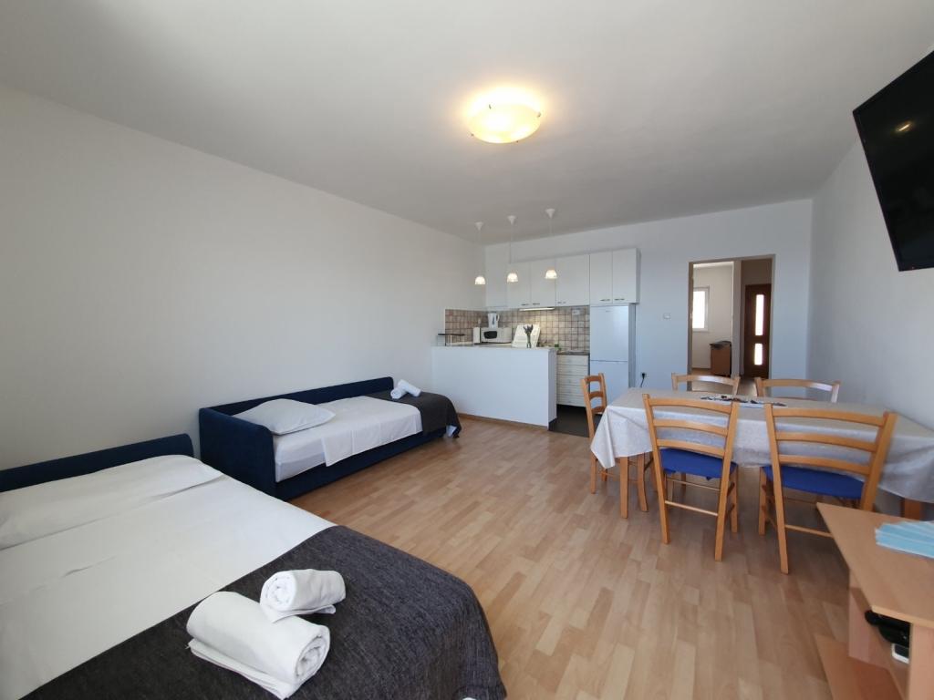 Apartments Silvano er beliggende i en rolig del af øen Murter, på gaden Pod Raduč, med en smuk udsigt over Kornati. Anlægget har tre boligenheder, to studielejligheder 2+2 med balkon og en lejlighed til to personer med terrasse. Hver lejlighed har sin egen parkeringsplads, WiFi, aircondition, TVSat og grill. Lejlighederne er fuldt udstyrede. Muligheden for at bruge et opbevaringsrum til cykler eller sup boards.
