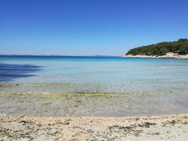 Den smukkeste familieferie er en med en stille opvågnen til havets brusen og en stille søvn med udsigt til solnedgangen over det åbne hav og Kornatiøerne (en nationalpark med 150 småøer)! Juraga-familiens hus giver jer mulighed for netop det. Den umiddelbare nærhed af det turkisblå hav (20 m), sandstranden Slanica (100 m), stenstrandene i Čigrađe og Podvrška og de romantiske stenstrande, hvor I kan nyde al kraften fra sten, sol og hav, vil være endnu en grund til, at I vil vende tilbage til vores lejligheder, der tilbyder afslappet komfort. Hver lejlighed har et soveværelse, et køkken med stue, et badeværelse med bruser og to balkoner. De er udstyret med tv og WiFi. Huset kan også lejes som helhed. I har en rummelig have med duftende fyrretræer, hvor I kan plukke middelhavsfrugter (figner, druer) og forfriske jer. I kan nemt nå os ad vejen, og der er parkeringspladser til jeres biler og cykler. Vi ser frem til jeres ankomst!