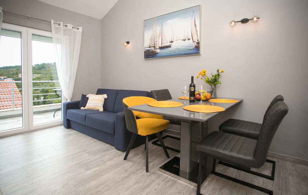Lejligheden er beliggende i Necujam -bugten på øen Solta. Lejligheden er ny, består af et værelse med en dobbeltseng, et værelse med to enkeltsenge, stue med sovesofa, badeværelse og er fuldt udstyret med alt det sædvanlige og nødvendige (sengelinned, håndklæder, tallerkener, strygejern, vaskemaskine , mikroovn, pengeskab, TV, DVD, WI-FI, aircondition, grill). Bygningen ligger i anden række til havet, udsigten fra balkonen er til havet, parkeringsplads er til rådighed. Butikken ligger tæt på cirka 100 meter og en stenstrand, velegnet til børn og voksne. Ved siden af stranden er en volleyballbane, bordtennis. Prisen inkluderer brug af aircondition. Ved at vælge vores lejlighed får du virkelig den bolig, der også vises på dette websted.