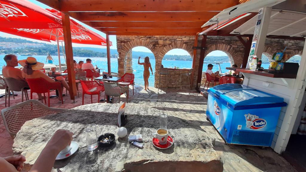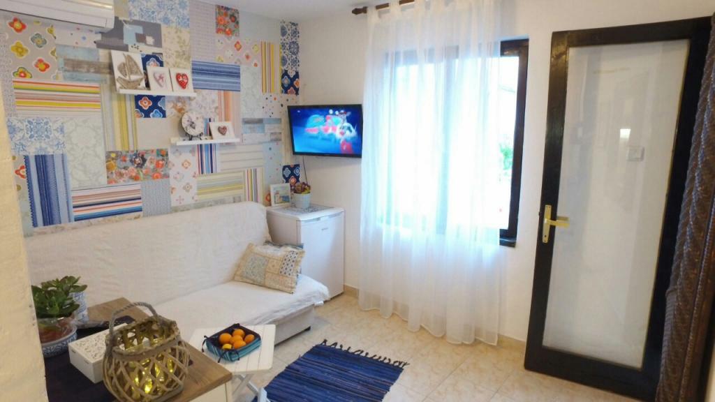 Meget fin lejlighed med aircondition, ren og stilfuldt møbleret. Stille terrasse med grillplads. God beliggenhed, ca. 100 m fra rullestenstranden. Der er et par barer og en pool på stranden. Dejlig og hyggelig udlejer, meget venlig. Ud over at slappe af på stranden er øen velegnet til vandre- og cykelture.