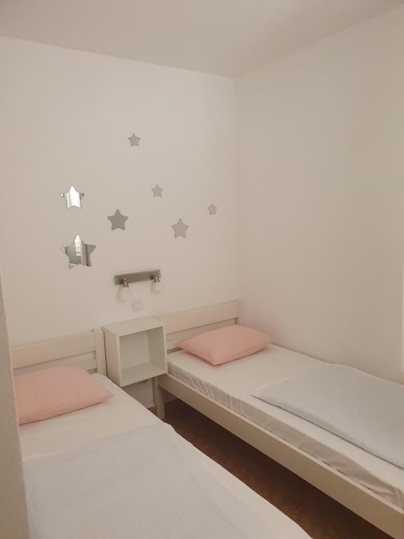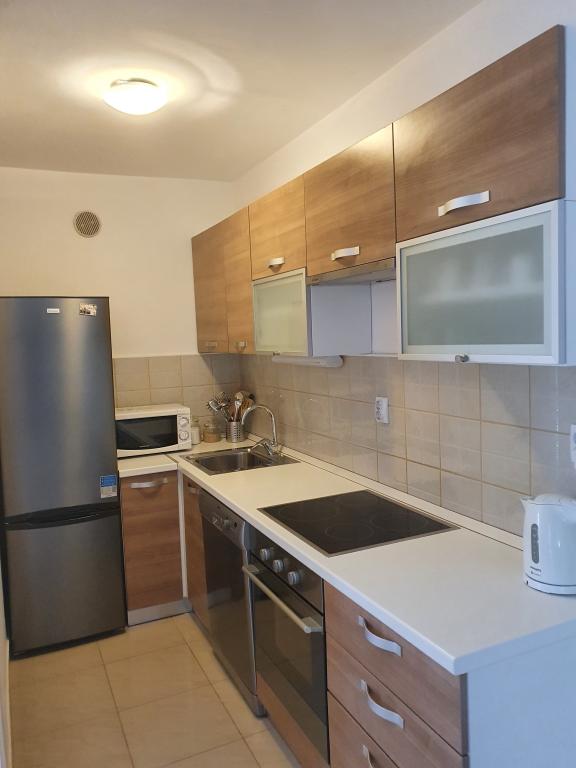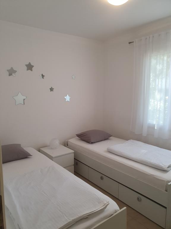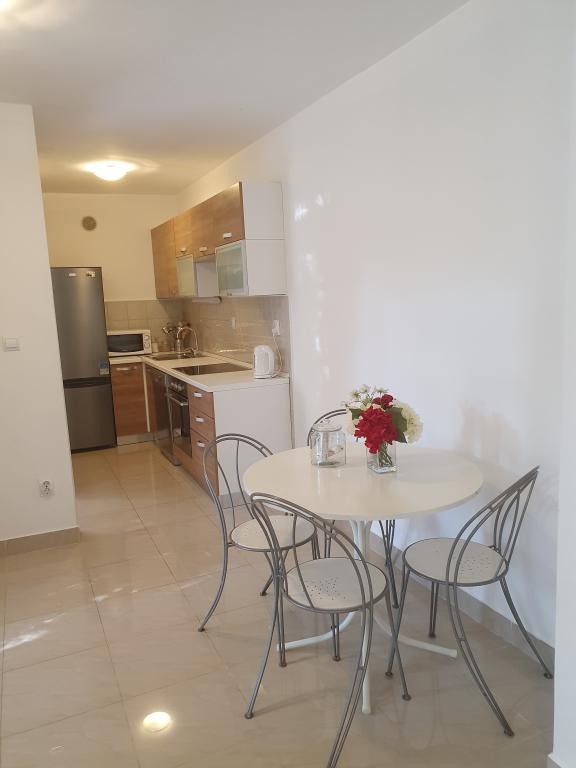 Fuldt udstyrede og indrettede lejligheder til et behageligt ophold for op til 6 personer, beliggende i en fyrreskov. Lejlighederne ligger 3 minutters gang fra havet og en smuk strand, der kan nås gennem en fyrreskov. Lejlighederne består af to værelser - et med en dobbeltseng og et med to enkeltsenge, en stue med en sovesofa og et LCD-tv, en spisestue (større lejlighed - skabt ved at tilpasse to mindre lejligheder til en stor lejlighed på 60m2), et badeværelse, et komplet køkken med hårde hvidevarer såsom en kedel, en kaffemaskine (vaskemaskine og opvask i en større lejlighed med mulighed for grill) og en terrasse. Hver af vores lejligheder er udstyret med sengelinned, håndklæder, køkkenredskaber og apparater, der er nødvendige for dit glatte ophold. Det overordnede miljø (fyreskov, nærhed og arrangement af stranden og havet, beskyttelse af promenaden fra vejen) repræsenterer et ideelt miljø for afslapning og en familieferie med små børn eller et kæledyr.