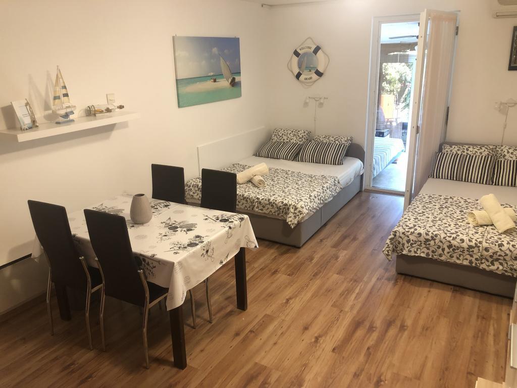 Lejligheden er beliggende i et roligt lejlighedskompleks Lopari med en butik, restaurant og alle faciliteter og en smuk strand. Udendørs terrasse med havemøbler og et svingnet er beliggende i en privat duftende middelhavshave kun 50 meter fra stranden.