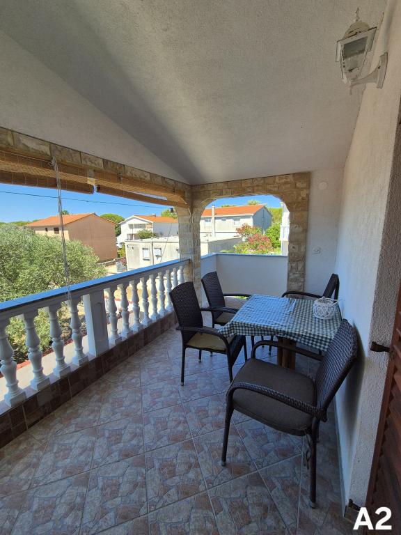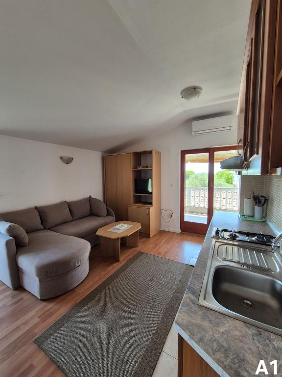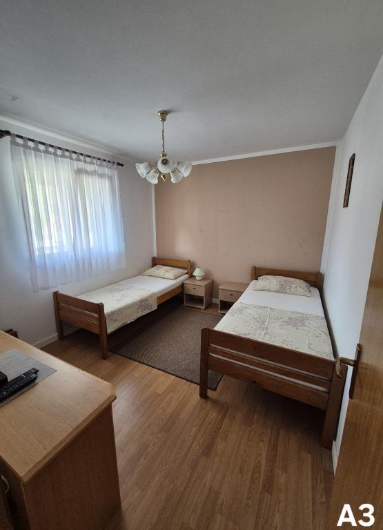 Lejlighederne ligger i en stille del (Bilotinjak 1), nær byen Nin. Lejlighederne er nyrenoverede. Hver lejlighed består af et badeværelse, et soveværelse med en dobbeltseng, en køkkenlinie og en ekstra seng til to personer. Lejligheden har en terrasse med udsigt over sydvest mod havet. Begge lejligheder har en sikret parkeringsplads i gården. Grill og udendørs bruser er til rådighed. Rummelig, naturlig sandstrand, hjemmefra, tre hundrede meter, er velegnet til børn.