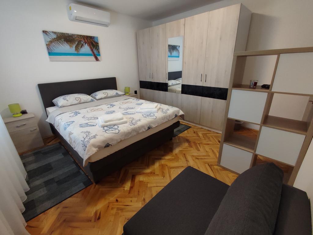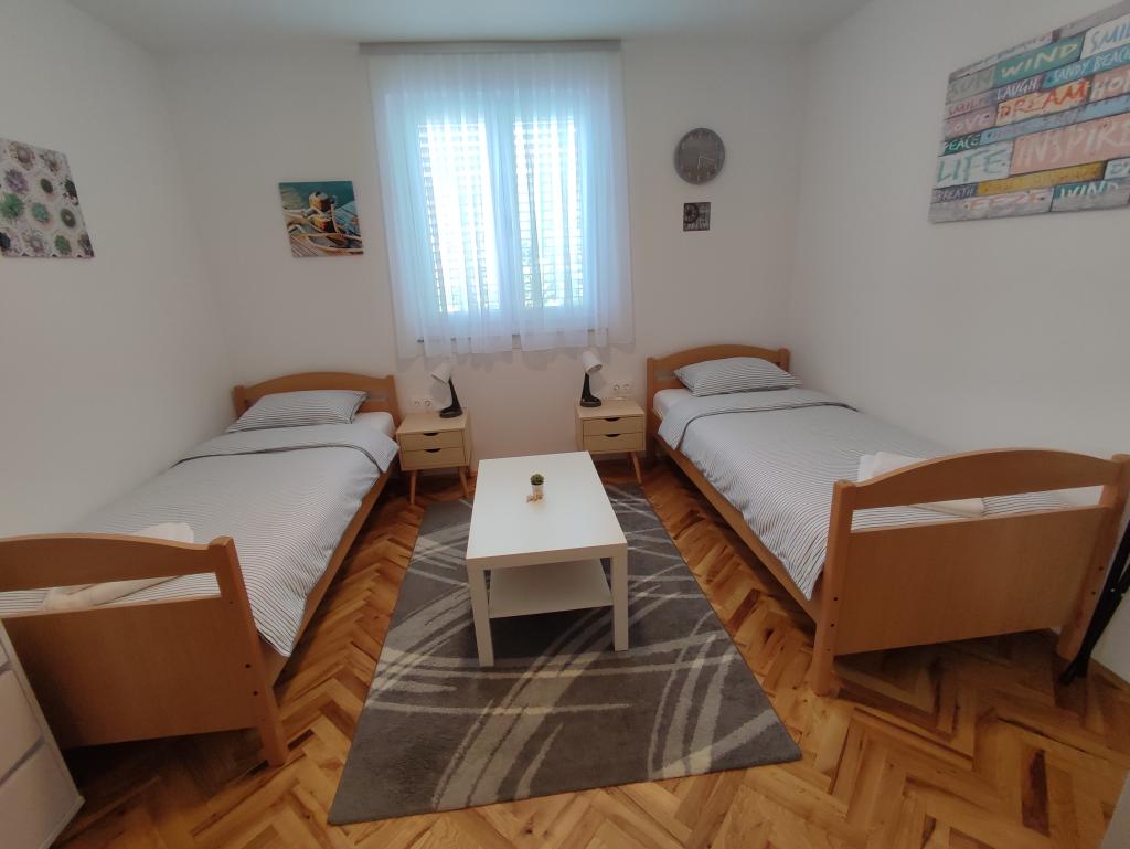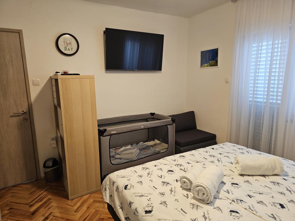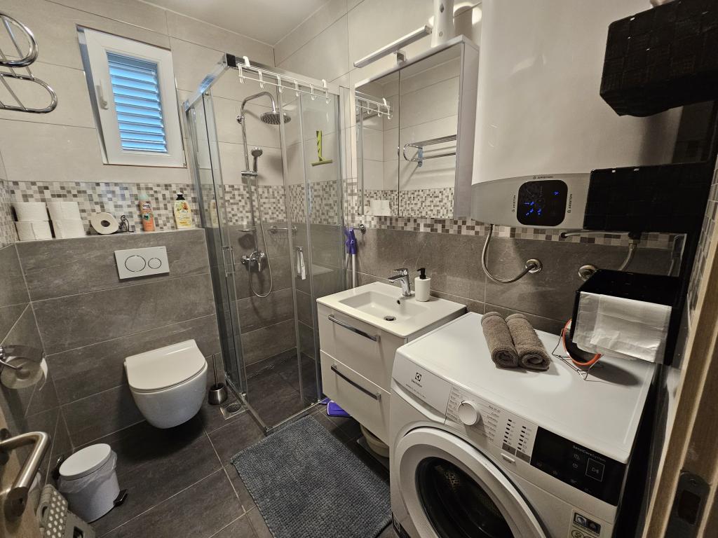 Nyrenoveret moderne lejlighed med to soveværelser. Komplet badeværelse med bruser og vaskemaskine. Fuldt udstyret køkken (induktion, ovn, opvaskemaskine, mikrobølgeovn, kaffemaskine, brødrister). Gratis wi-fi, smart android tv. Stor terrasse med solafskærmning. Gratis brug af den indhegnede og anlagte have med solbruser. Brug af grill. Parkering i gården med mulighed for opladning af elbiler efter forudgående varsel. Tæt på stranden. Smuk promenade langs stranden, flere kilometer lang, der forbinder byerne Vrsi-Mulo og Zukve. Der er restauranter og barer langs promenaden.