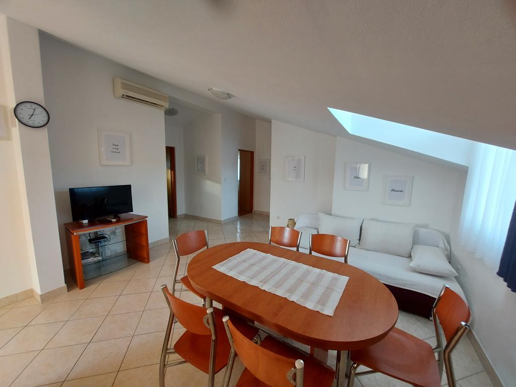 Fuldt udstyret og aircondition lejlighed i den rolige udkant af landsbyen Vrsi Zukve, nær byen Nin og Nin medicinsk mudder. Zukve er placeret på 15 kilometer fra byen Zadar. Til den konkrete stranden 60 meter til sand og grus 300 meter. Gæsterne har adgang til internettet, grill og udendørs bruser. Parkering er til rådighed. Lejligheden har tre soveværelser, badeværelse og toilet, køkken, spisestue og stue og en terrasse på 20 kvadratmeter. Terrasse, hvor det er relevant, kan fuldføre en overdækket fortelt.