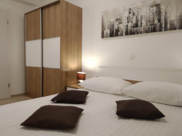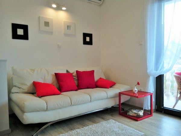 Komfortable og moderne udstyrede lejligheder i en stille gade, omgivet af en stor gårdhave med masser af plads til parkering og leg. I gården er der fællesgrill og opholdsområde. Anlægget er beliggende nær den berømte Kraljičina strand og alle vigtige faciliteter. Vi indrettede lejlighederne med en masse opmærksomhed og kærlighed, så vores gæster har al den nødvendige komfort under deres ophold hos os.